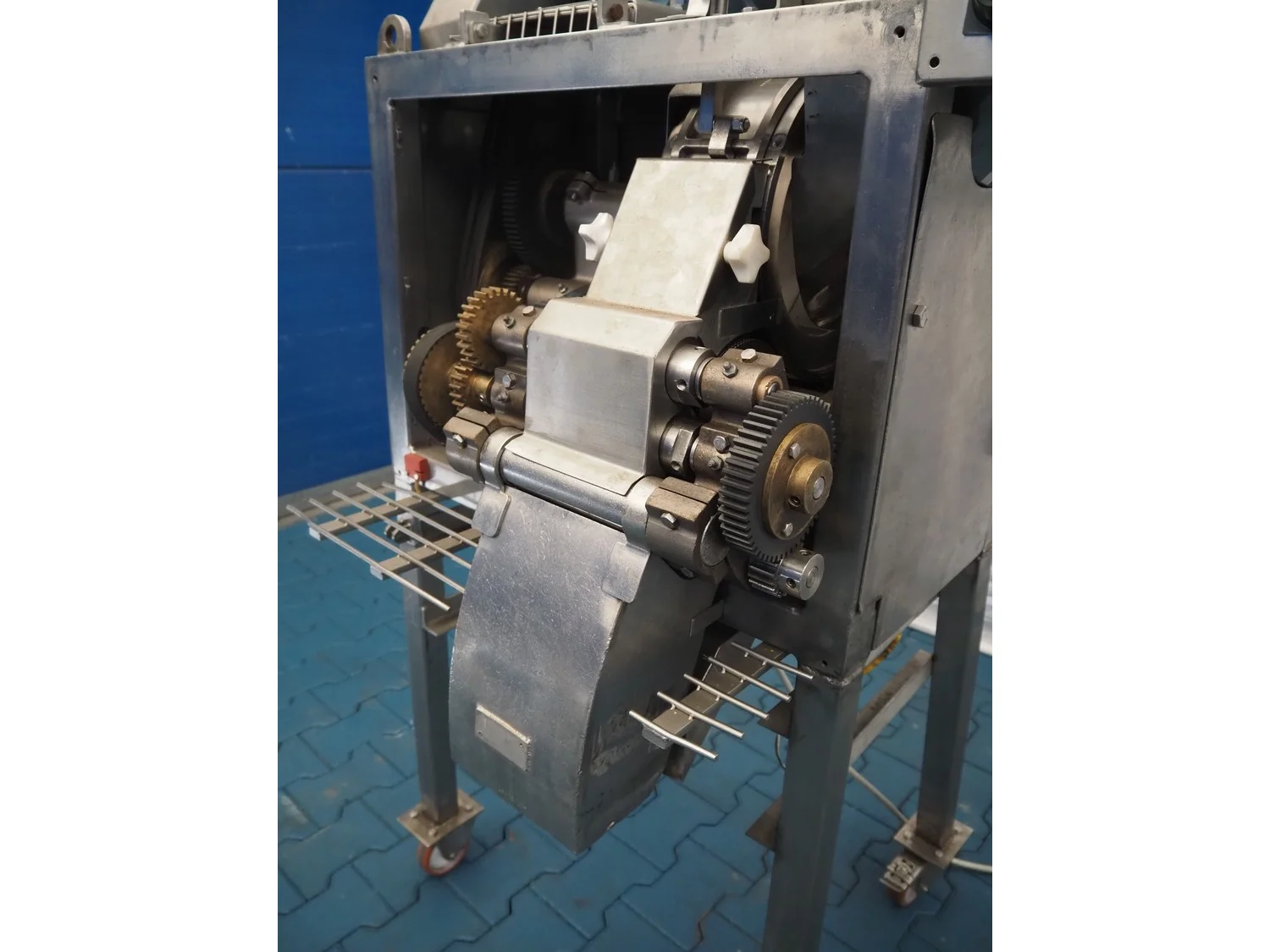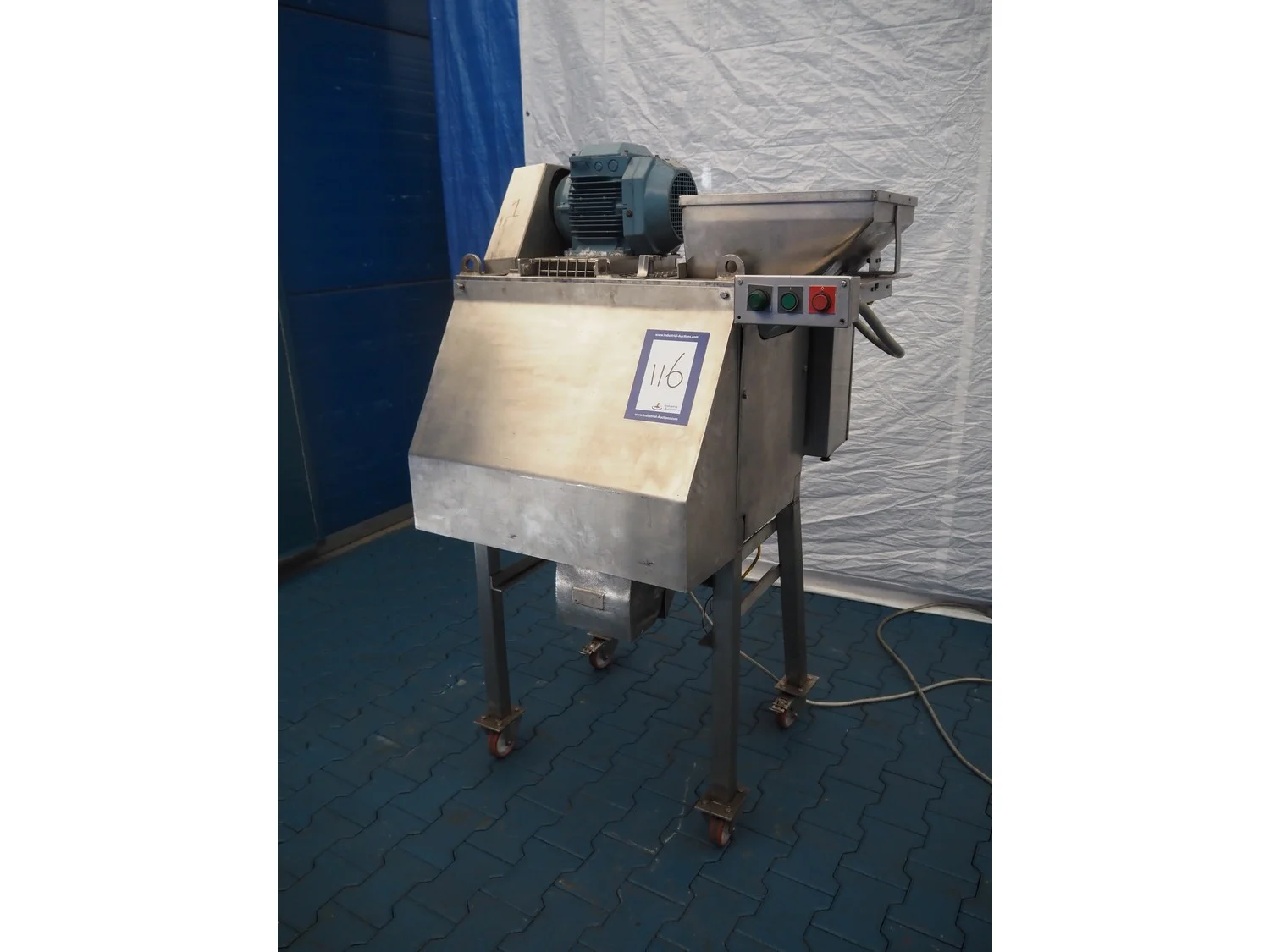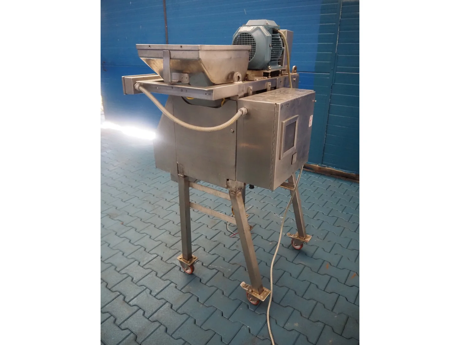 Urschel mobile slicer, model: RA-A, serial number: 1113, working width: 140 mm, distance between knives: 3 mm, total dimensions: 1100 mm x 850 mm x 1800 mm.