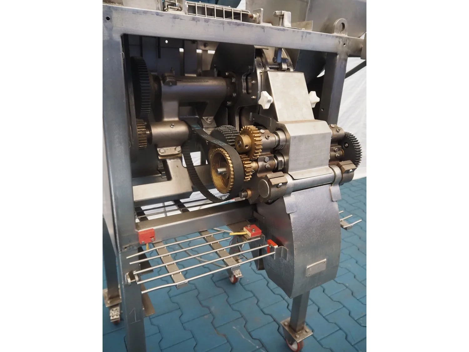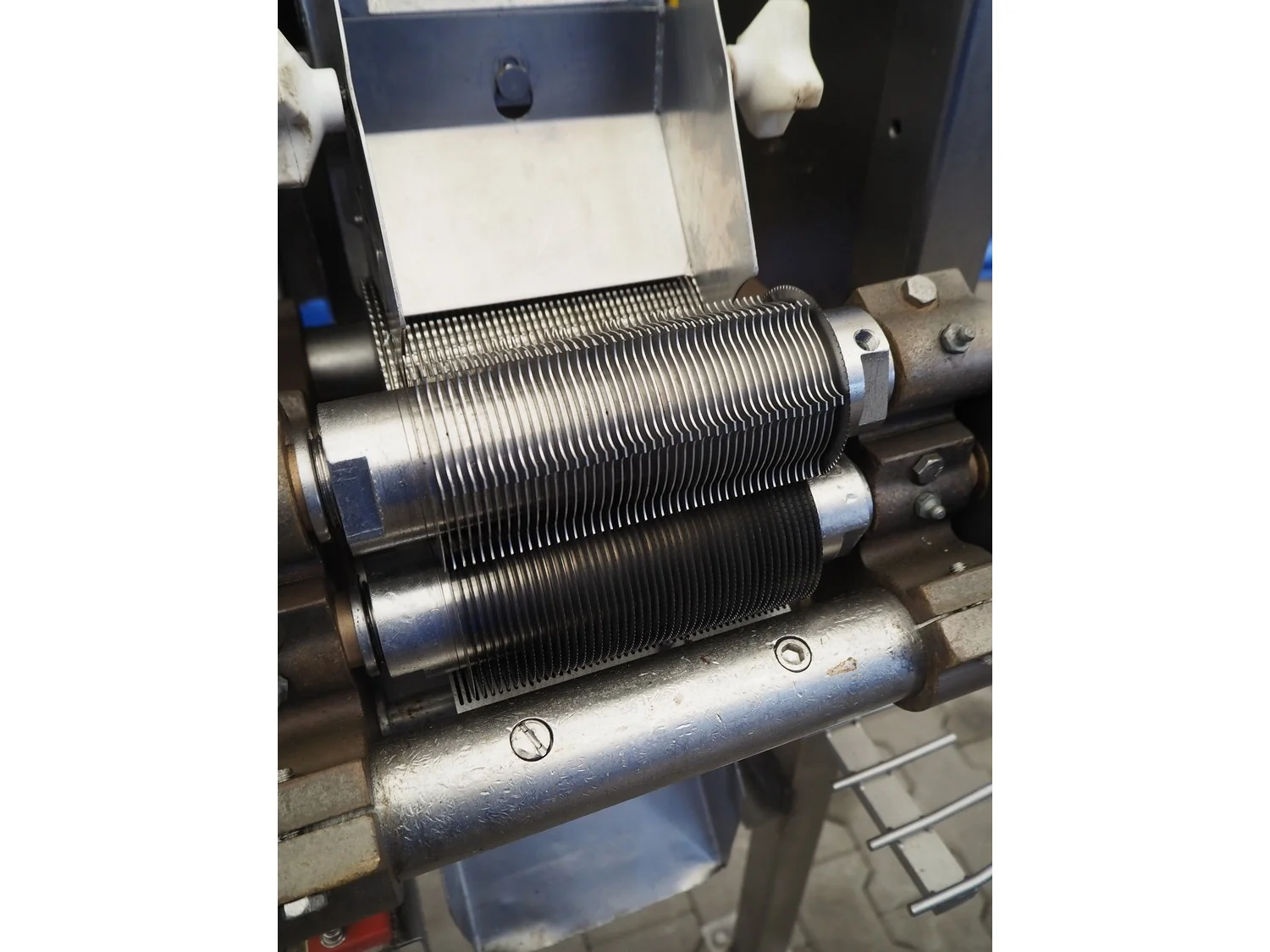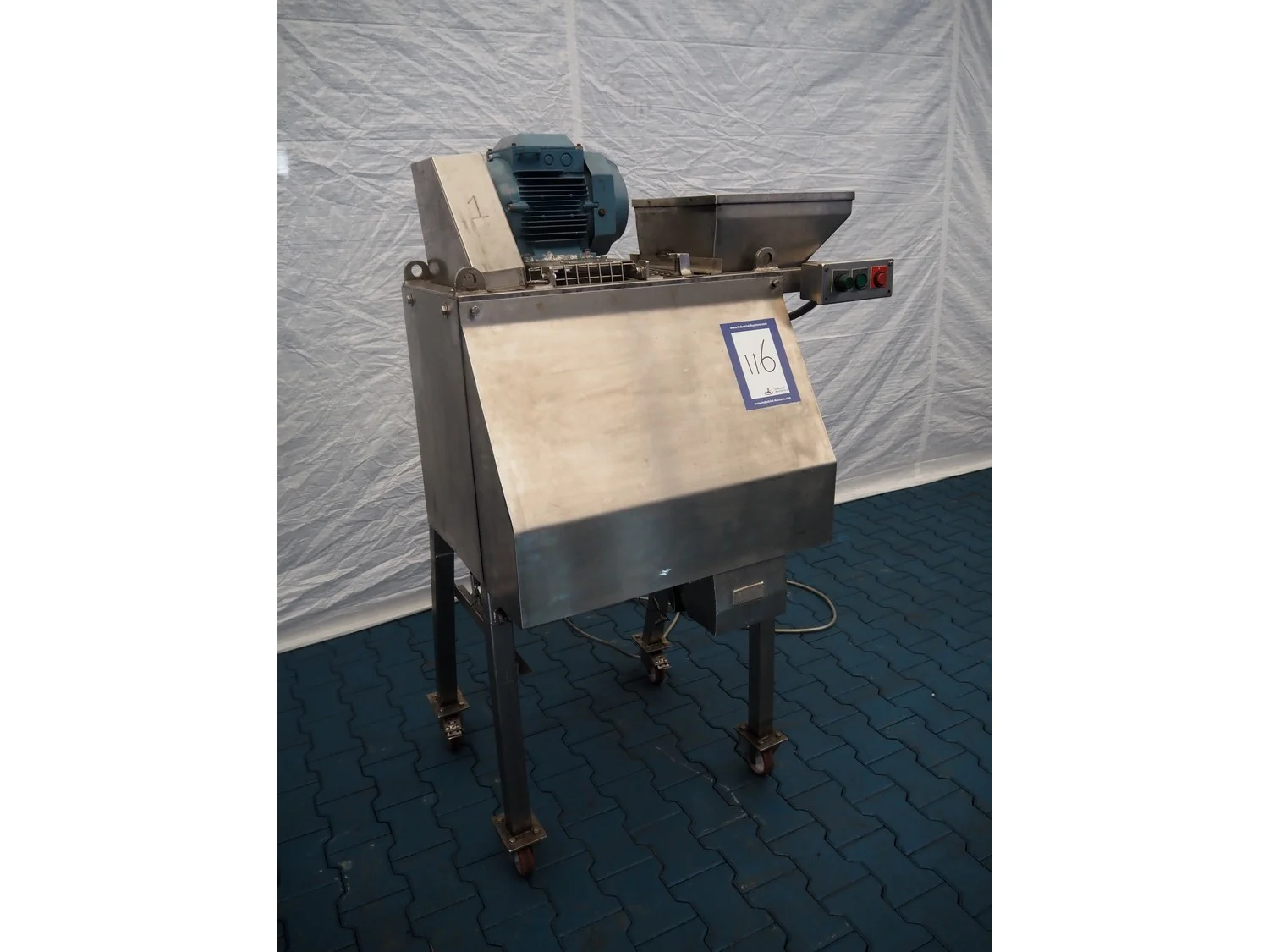 Urschel mobile slicer, model: RA-A, serial number: 1113, working width: 140 mm, distance between knives: 3 mm, total dimensions: 1100 mm x 850 mm x 1800 mm.