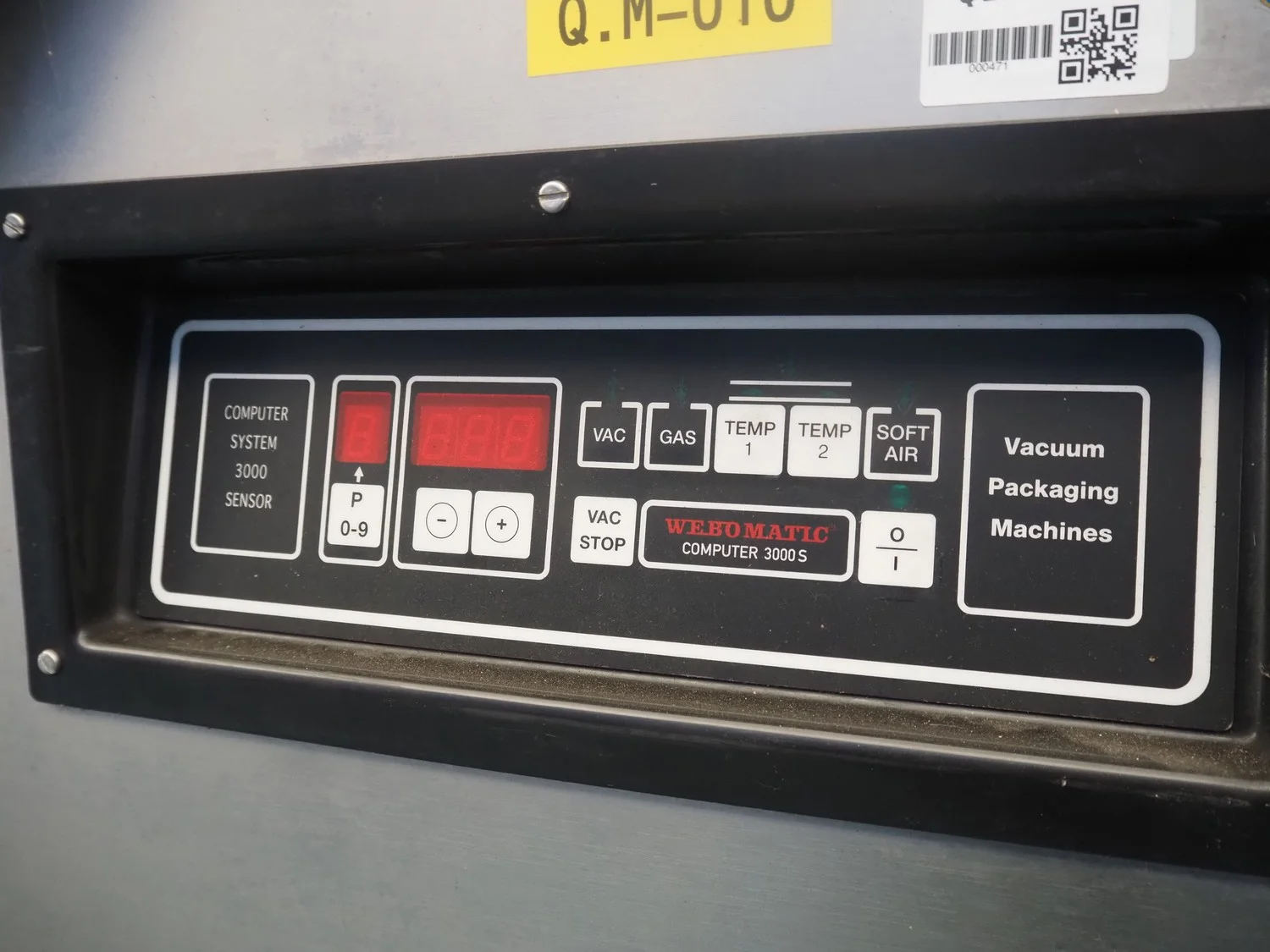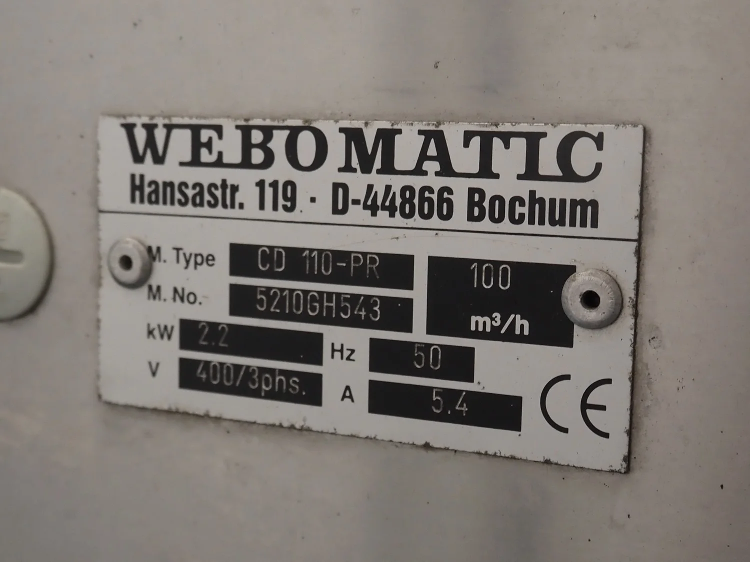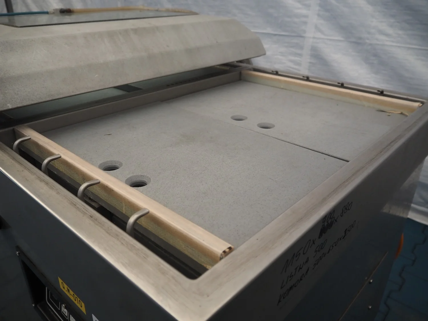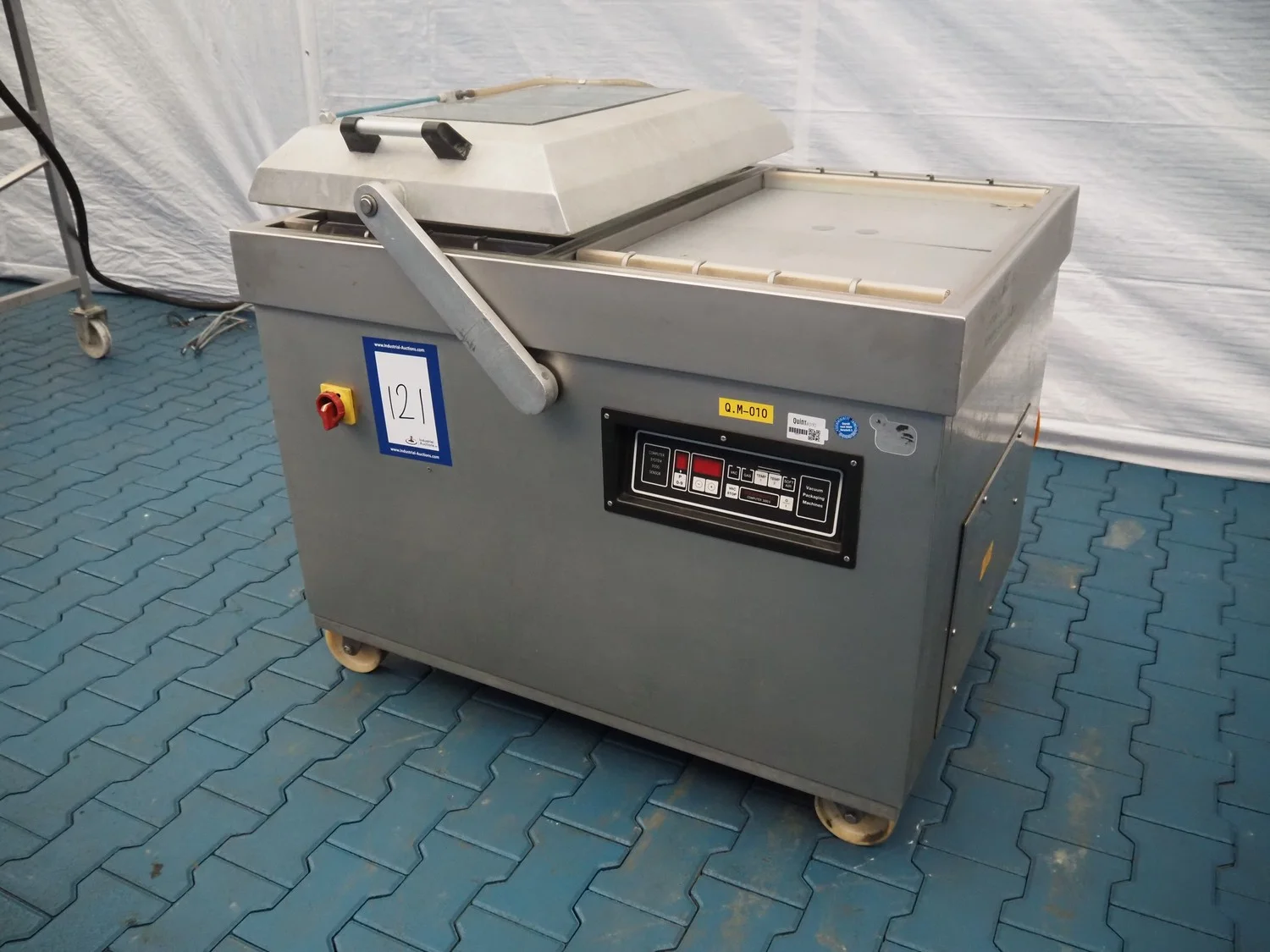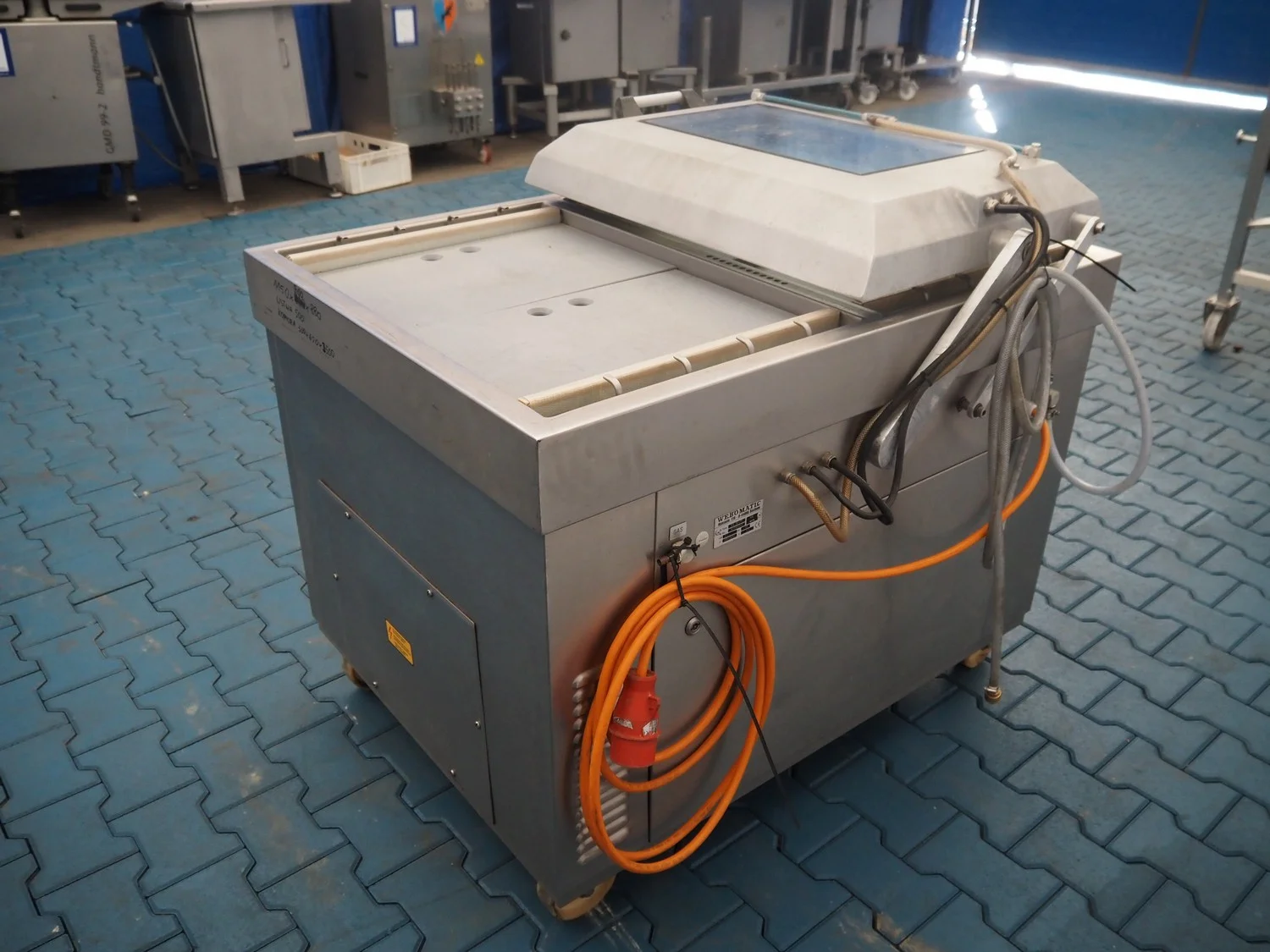 Webomatic mobile double-chamber vacuum machine, type: CD 110-PR, machine number: 5210GH543, 400 V, 3 Ph, 50 Hz, 5.4 A, 2.2 kW, seal length: (4x) 510 mm, dimensions chamber: (2x) 510 mm x 770 mm, Busch vacuum pump, type Busch: RA 0100 E 5Z1, number: 506096, year of construction: 1998, capacity: 100 m³ per hour, total dimensions: 930 mm x 1160 mm x 1070 mm.
