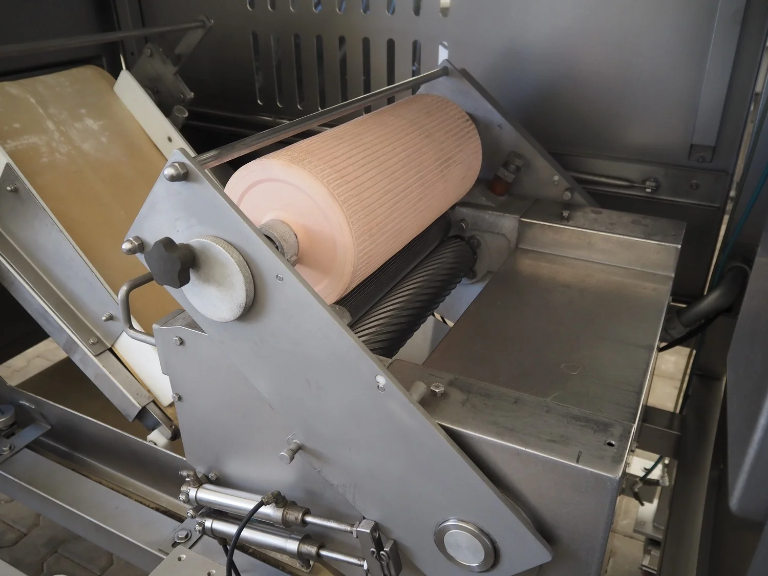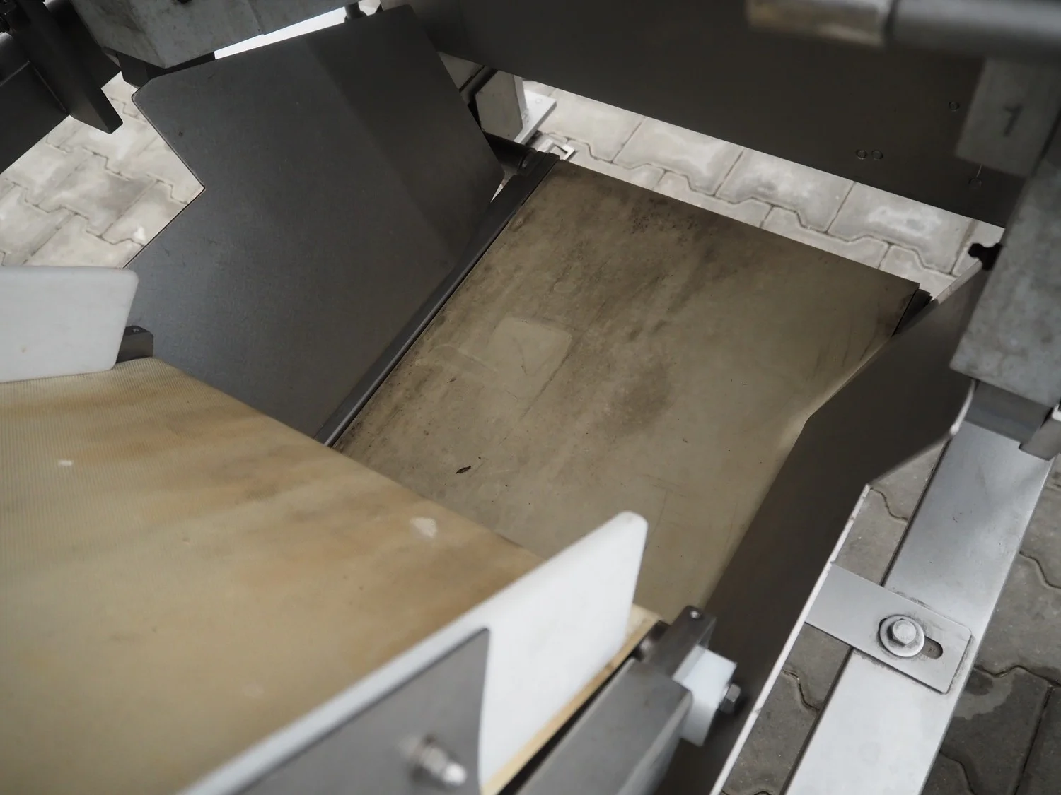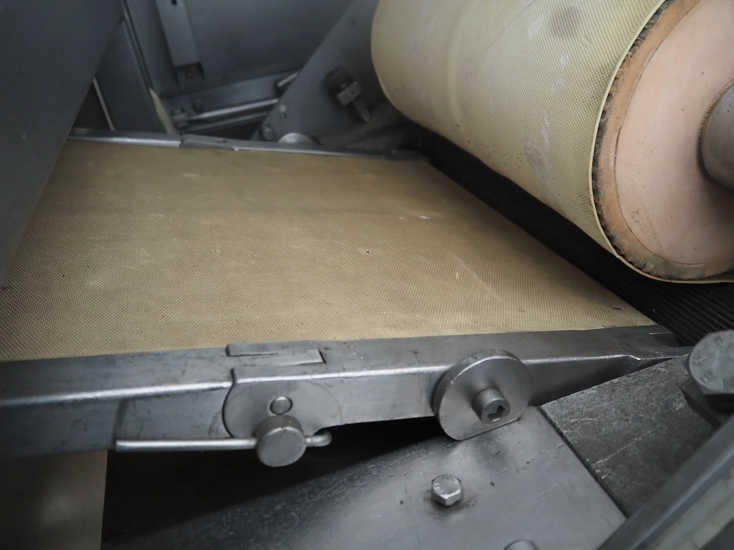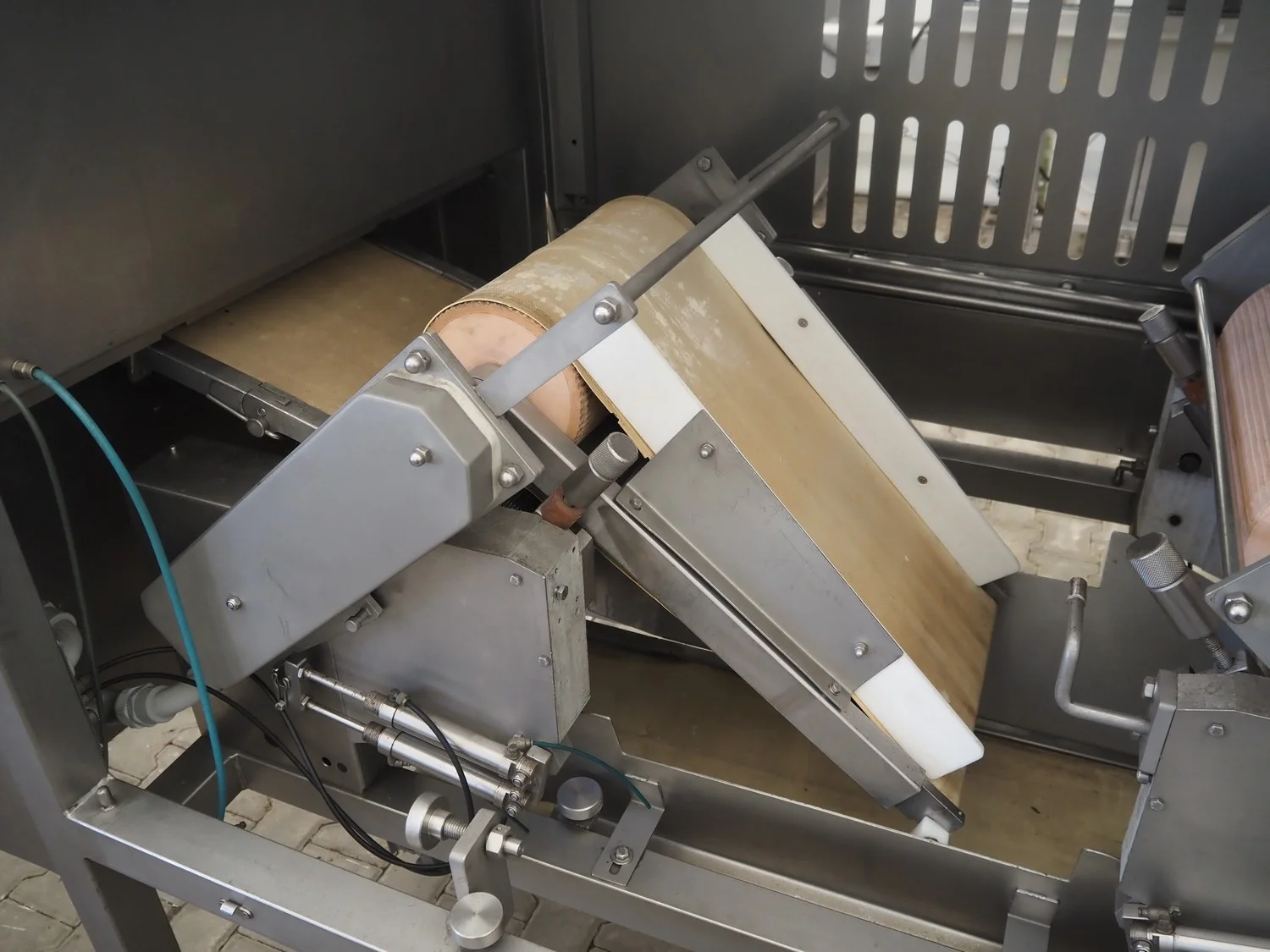 Grasselli mobile skinning and derinding machine, model: NX450-Line, serial number: 080897/2PN025, year of construction: 1997, 380 V, 3 Ph, 50 Hz, 2.8 A, plastic belt, belt width: 360 mm, working width: 400 mm, total dimensions: 1850 mm x 1300 mm x 1630 mm. Including pallet with belts. Incomplete / technical condition unknown
