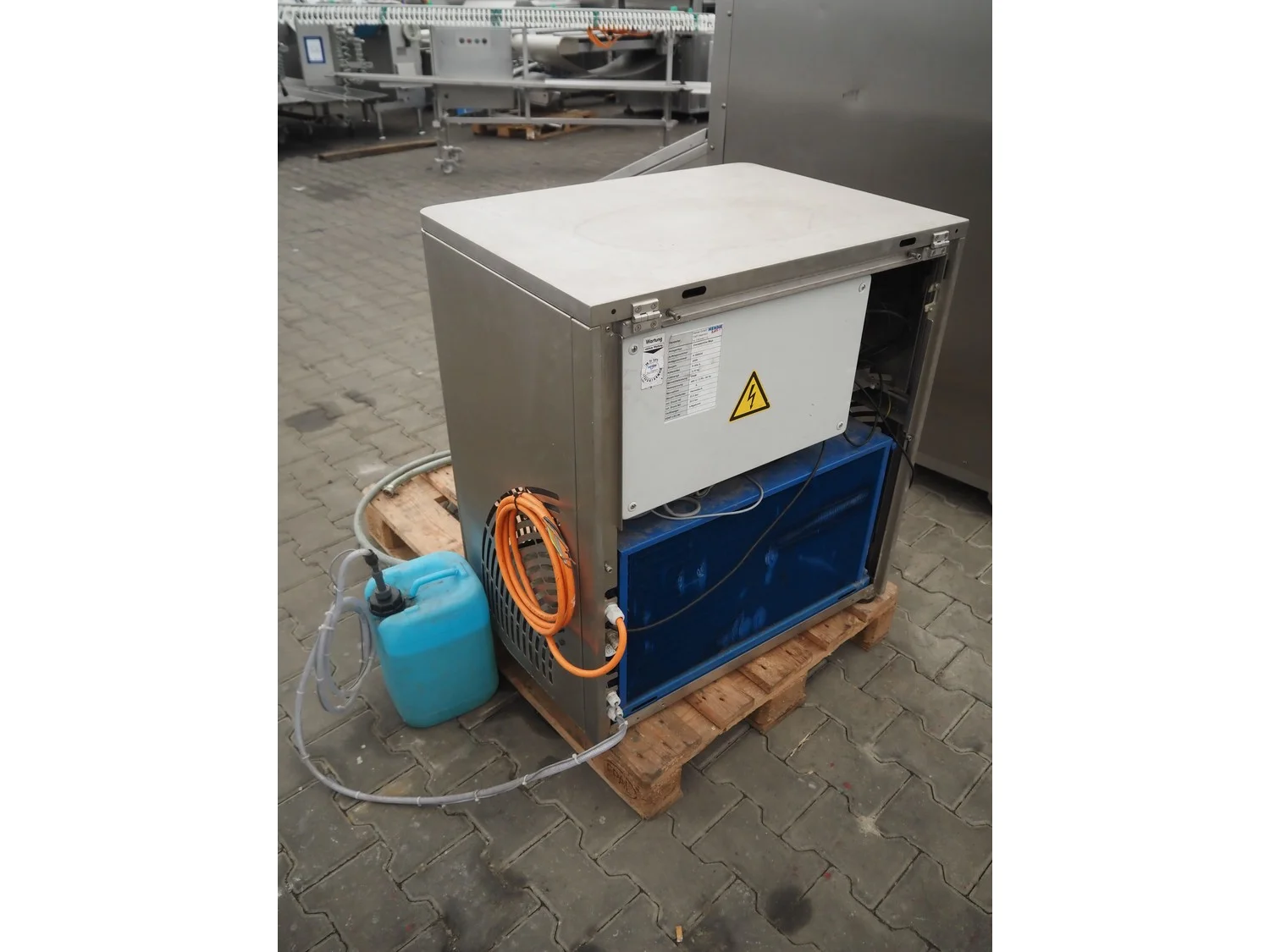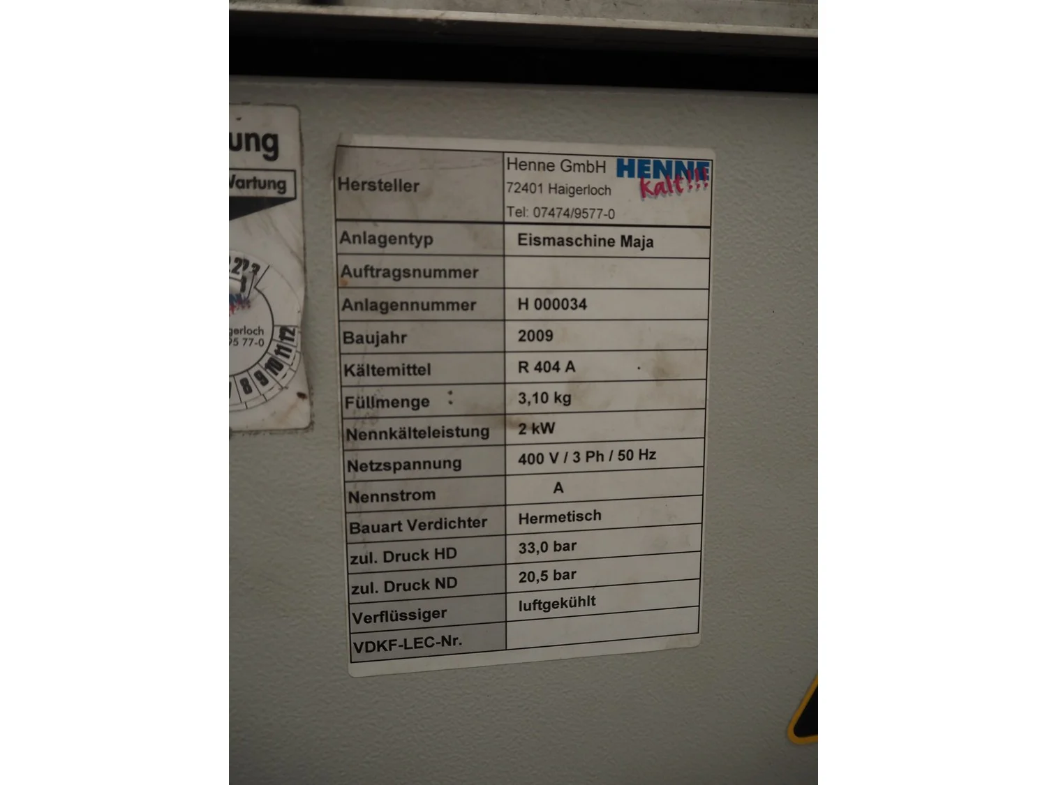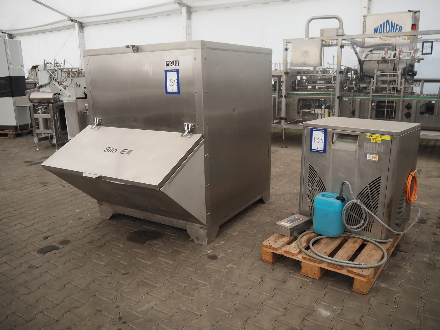 Maja ice machine, type: SA 415 S, serial number: l-39890, year of construction: 2009, 400 V, 3 Ph, 50 Hz, 5.42 A, 1.9 kW, refrigerant: R 404A, 2.0 kg, dimensions: 1900 mm x 1350 mm x 1650 mm. Including cooling compressor, dimensions: 800 mm x 600 mm x 900 mm.