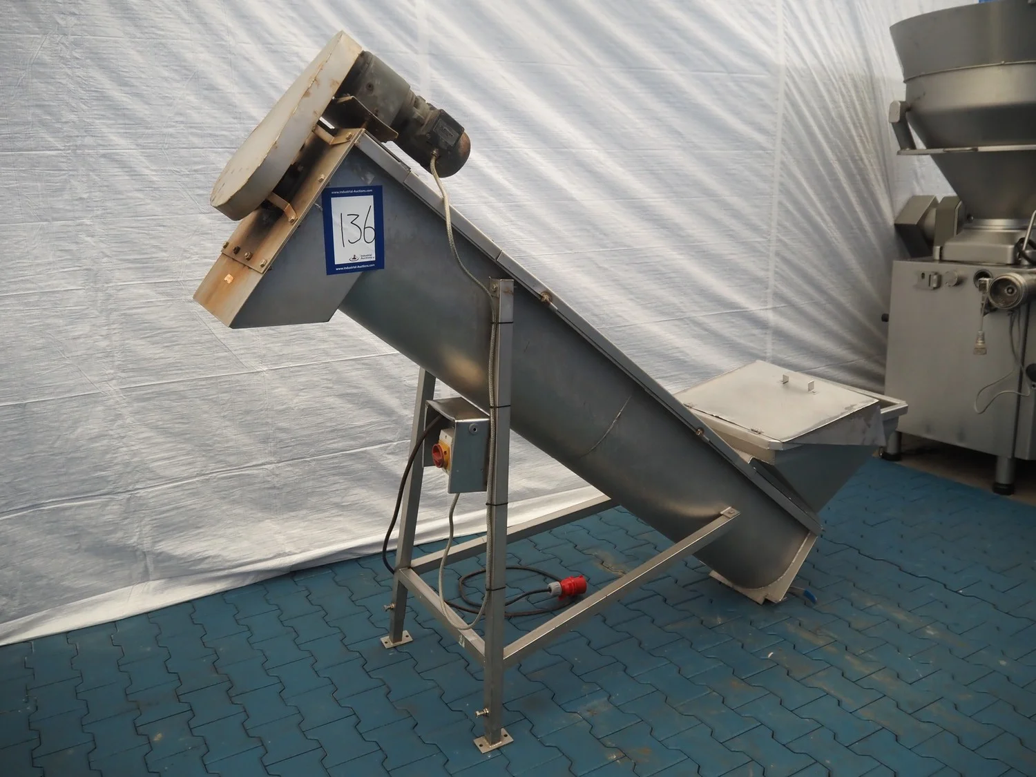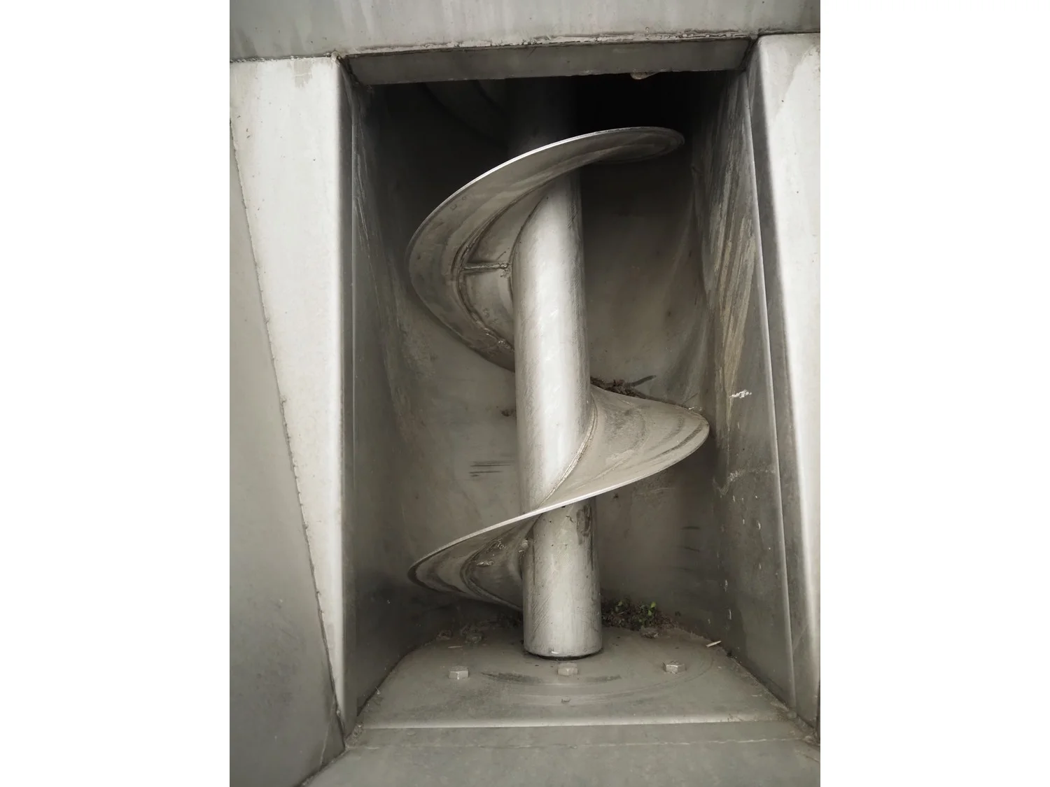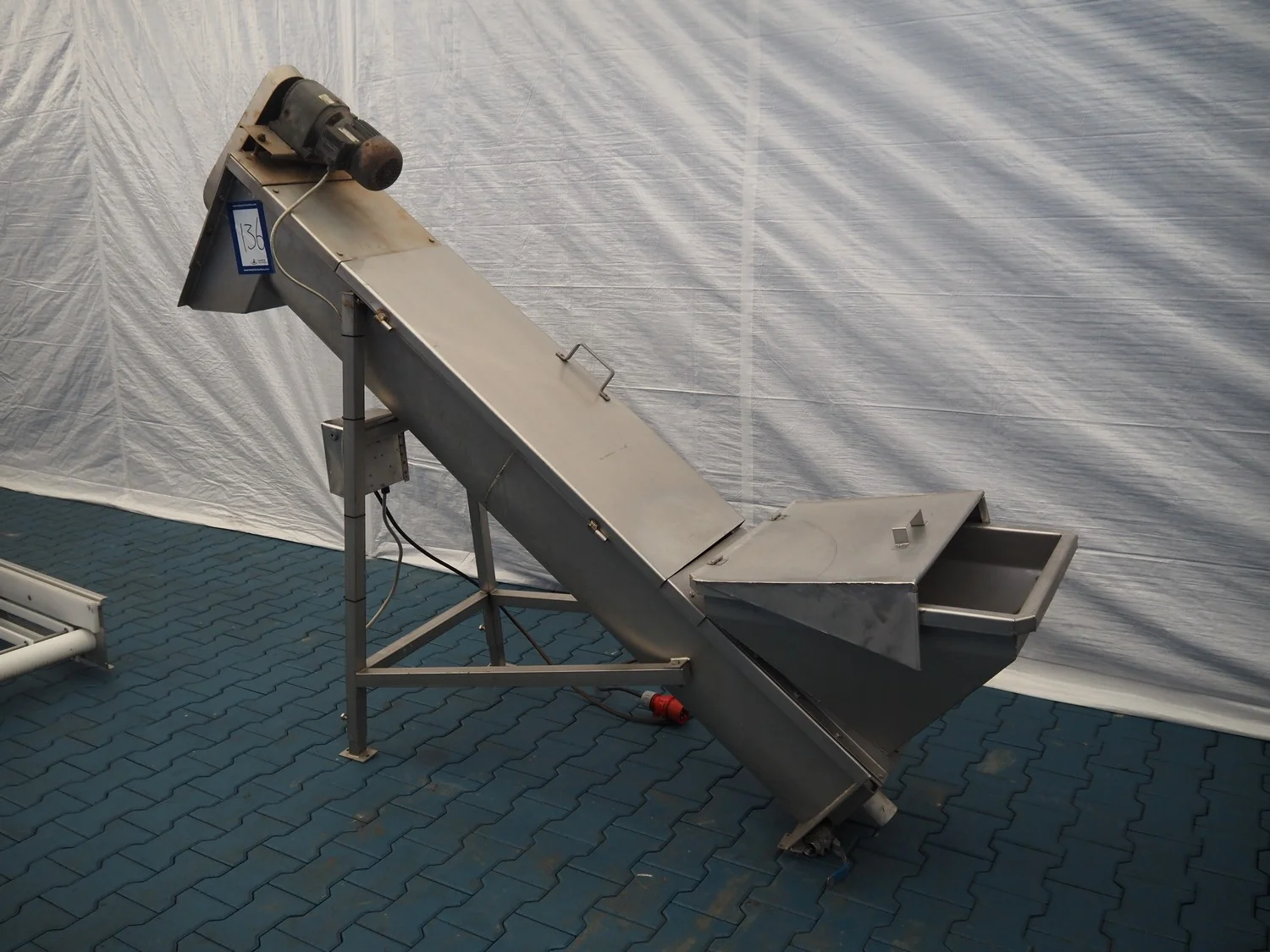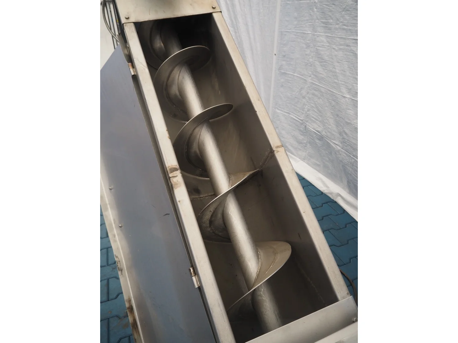 Pakkarakenne Oy elevating screw, s/s screw, screw width: 300 mm, elevating height: 1300 mm, total dimensions: 2500 mm x 600 mm x 1950 mm.