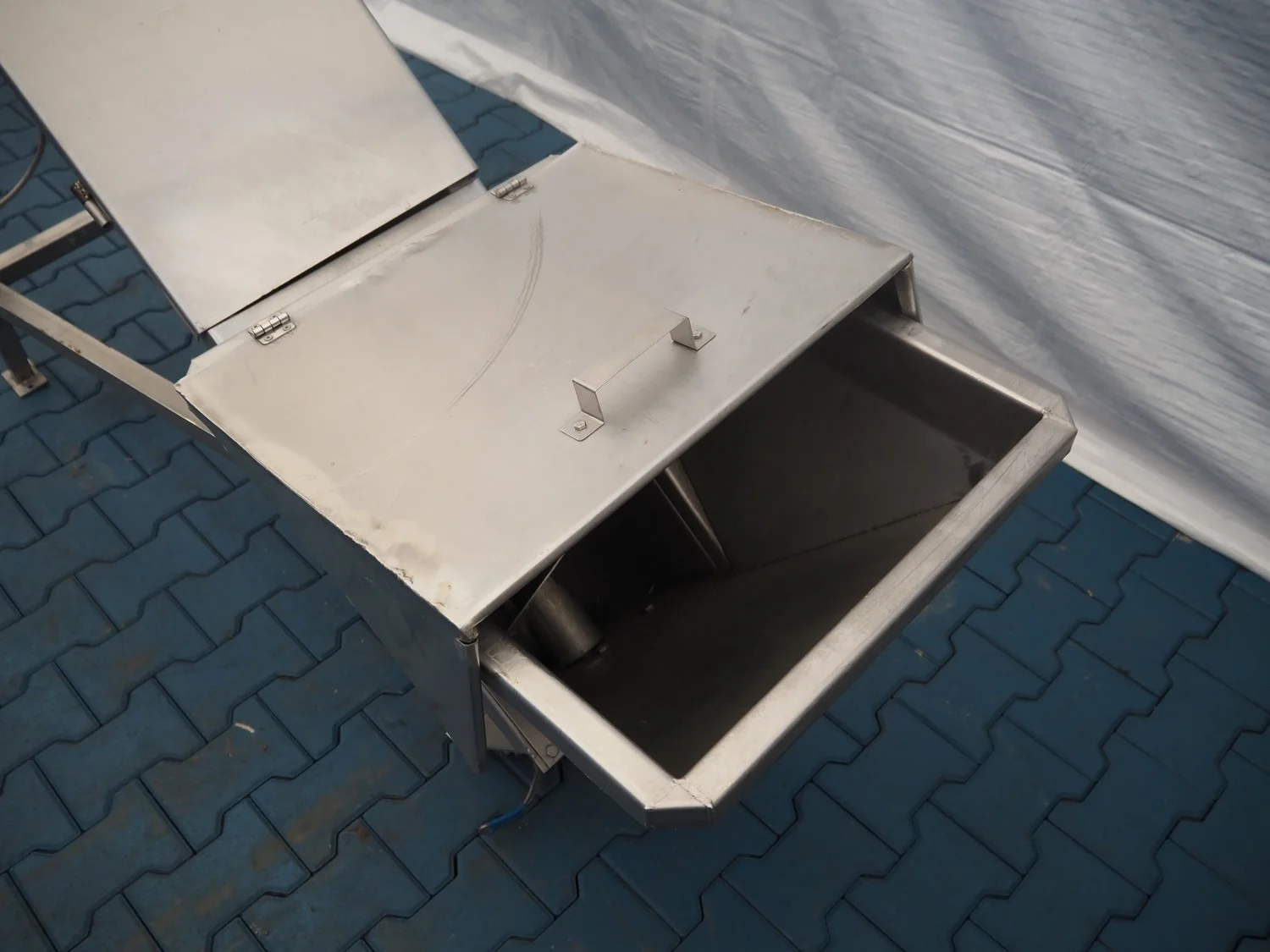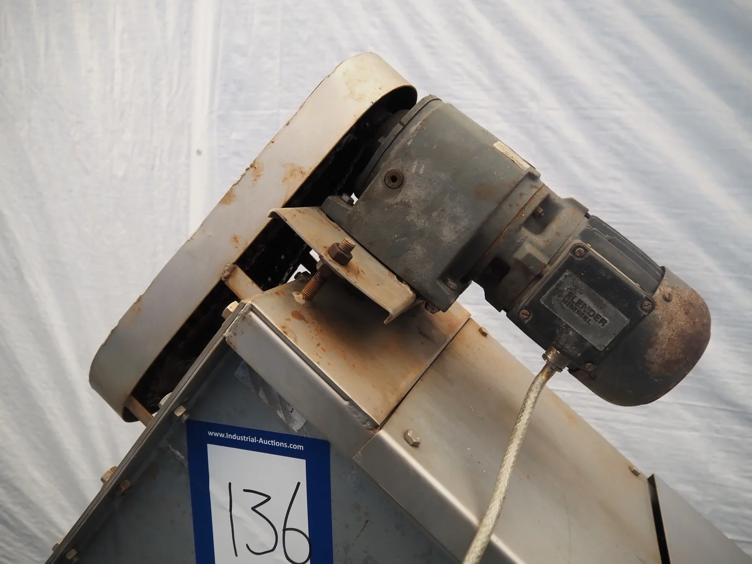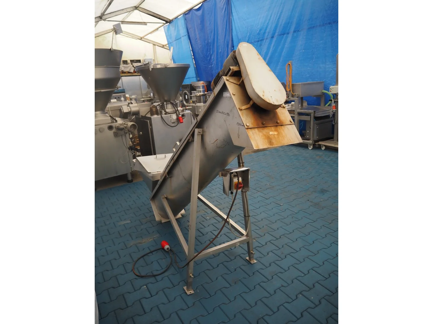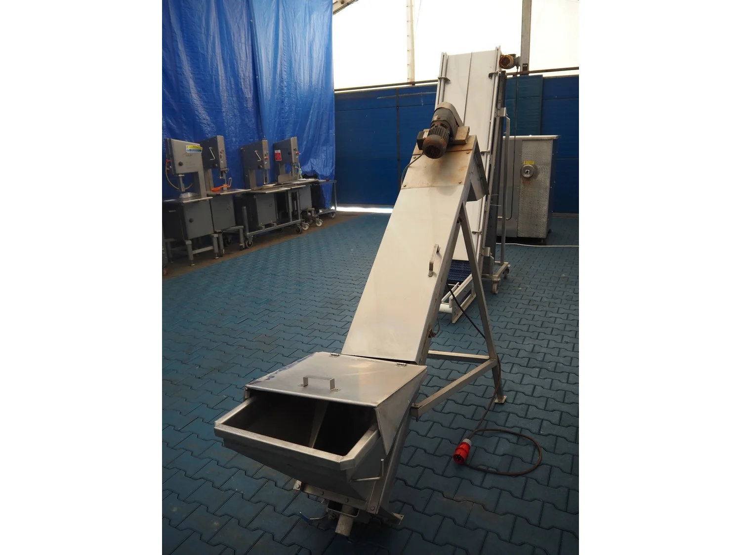 Pakkarakenne Oy elevating screw, s/s screw, screw width: 300 mm, elevating height: 1300 mm, total dimensions: 2500 mm x 600 mm x 1950 mm.