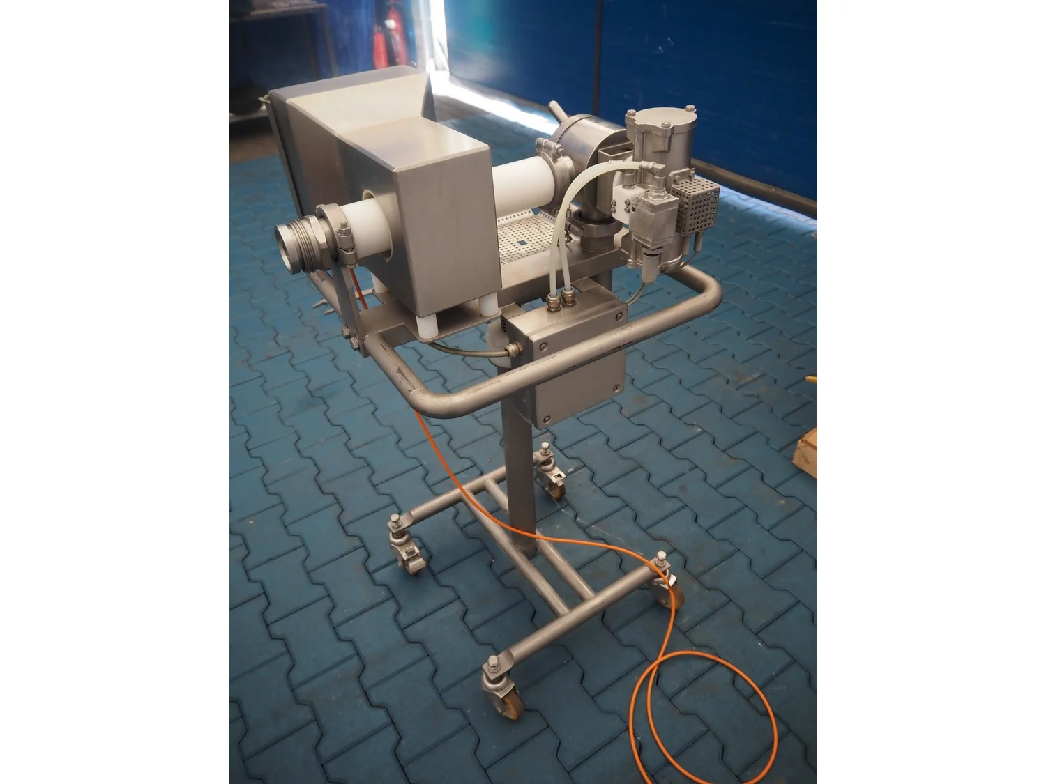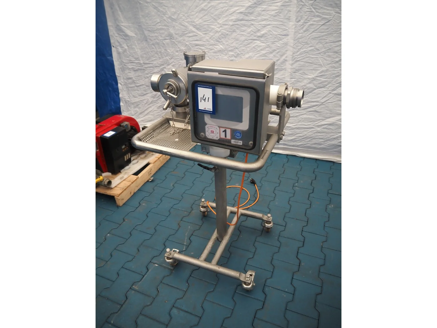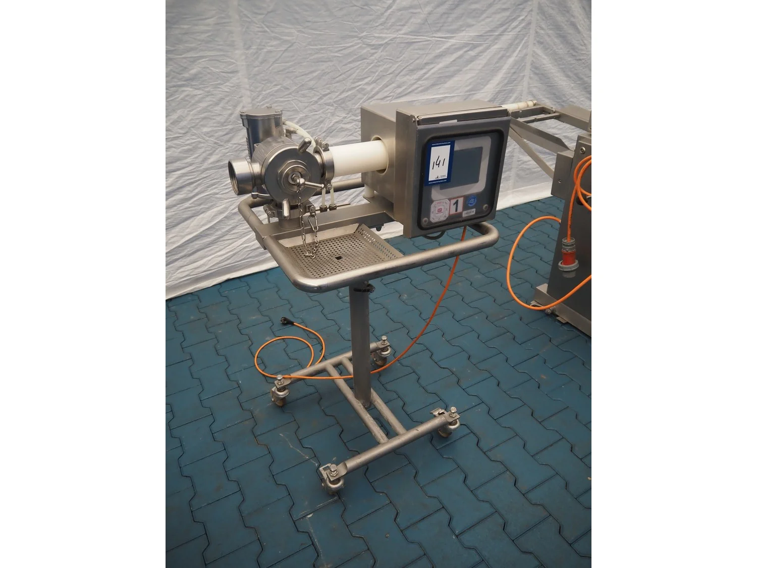 Mesutronic mobile pipe line metal detector with rejector, clearance: Ø 55 mm, total dimensions: 700 mm x 600 mm x 1200 mm.