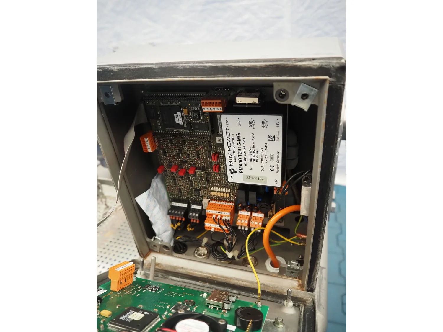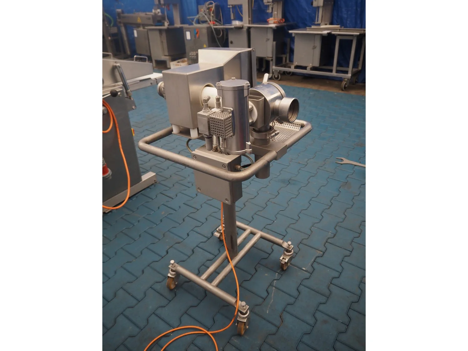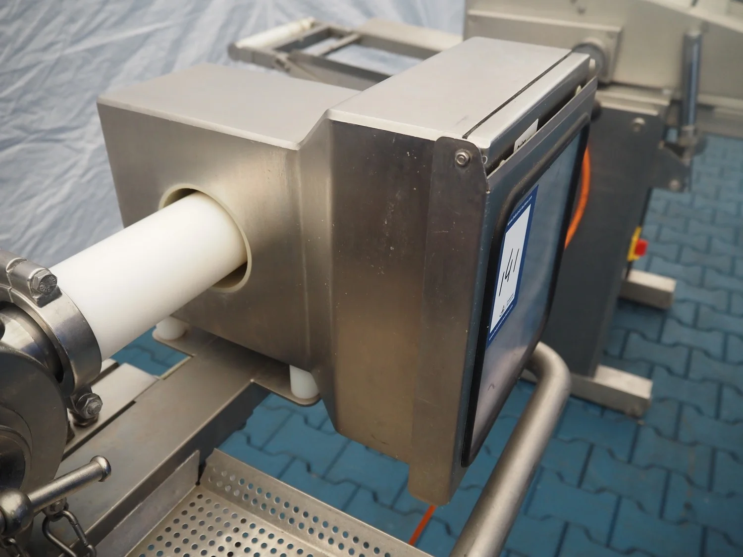 Mesutronic mobile pipe line metal detector with rejector, clearance: Ø 55 mm, total dimensions: 700 mm x 600 mm x 1200 mm.