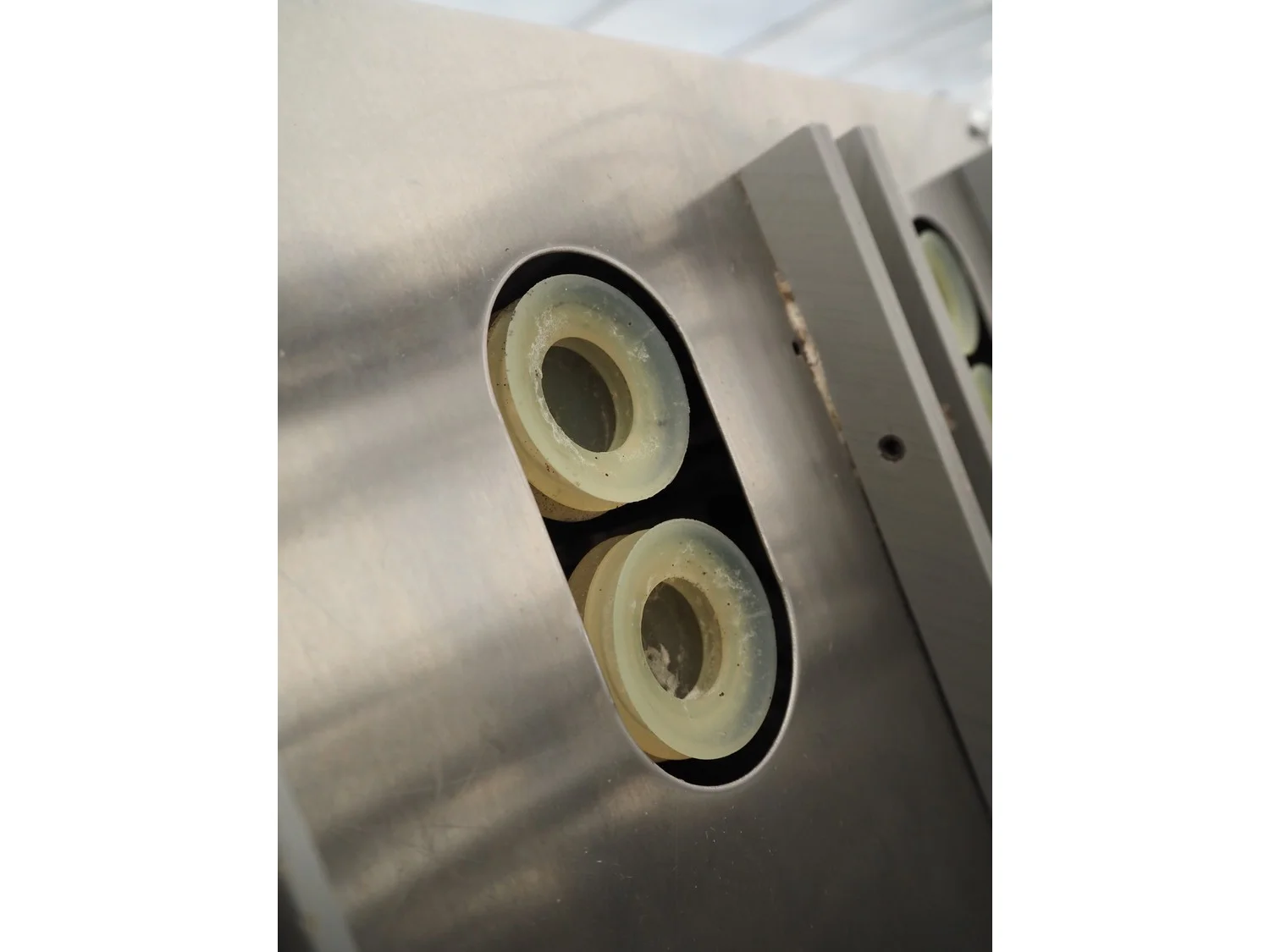 Tray denester, 2 nests, clearance: (2x) 230 mm x 180 mm, total dimensions: 1090 mm x 580 mm x 1770 mm.