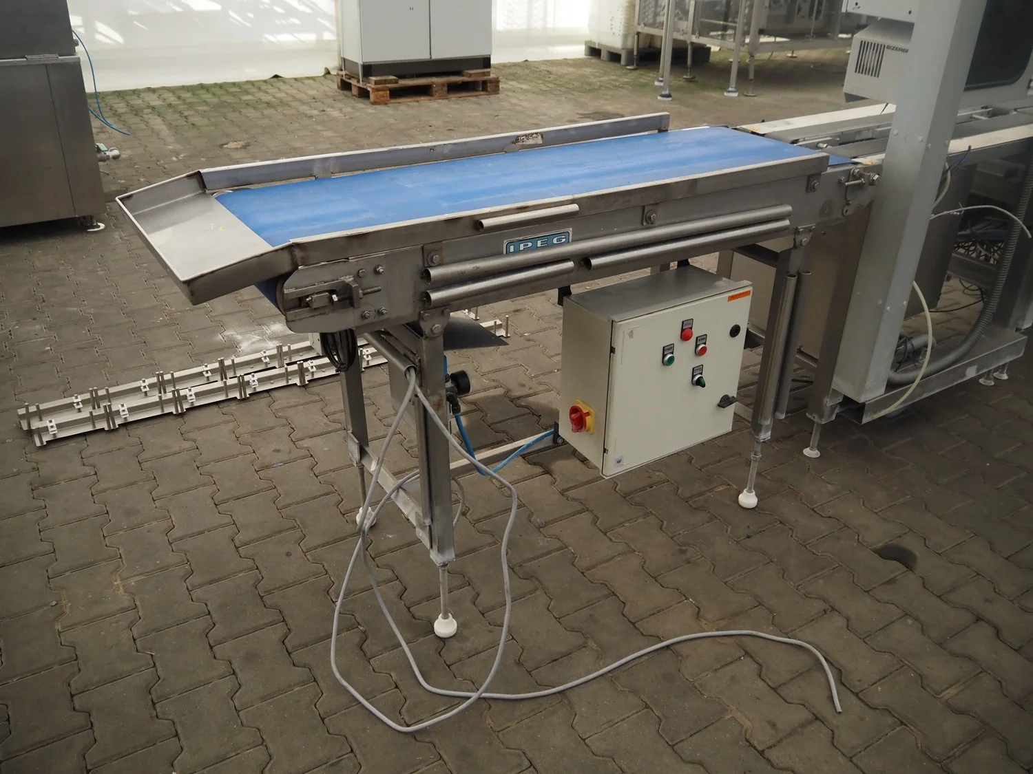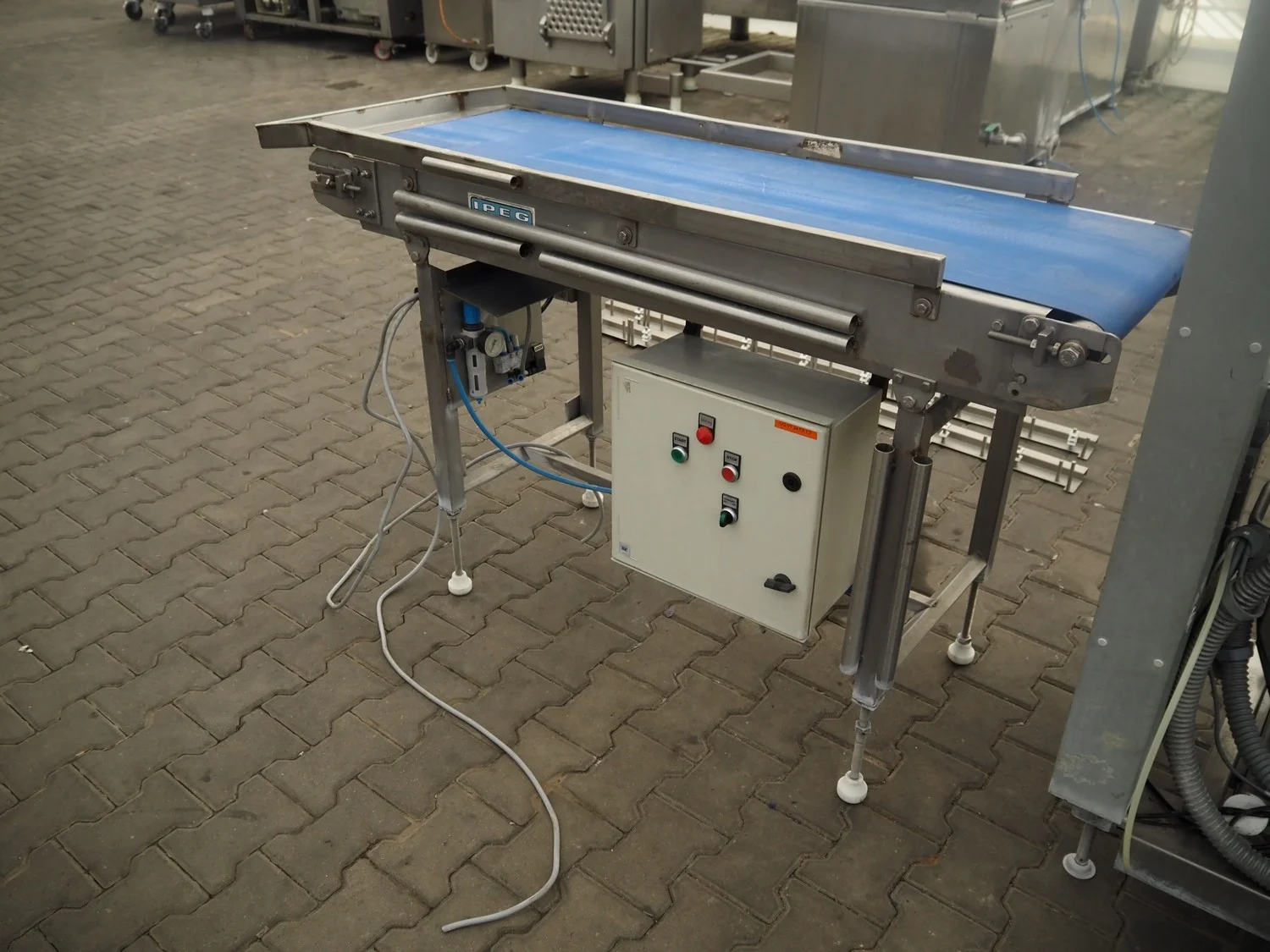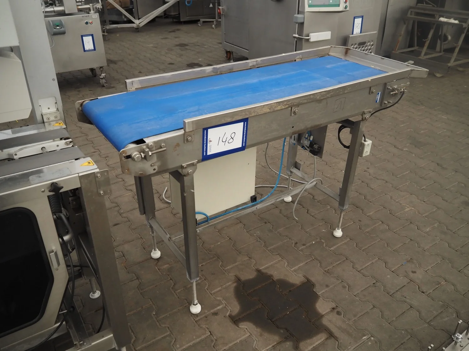 Transport belt, s/s frame, plastic belt, belt width: 480 mm, total dimensions: 1630 mm x 600 mm x 950 mm.