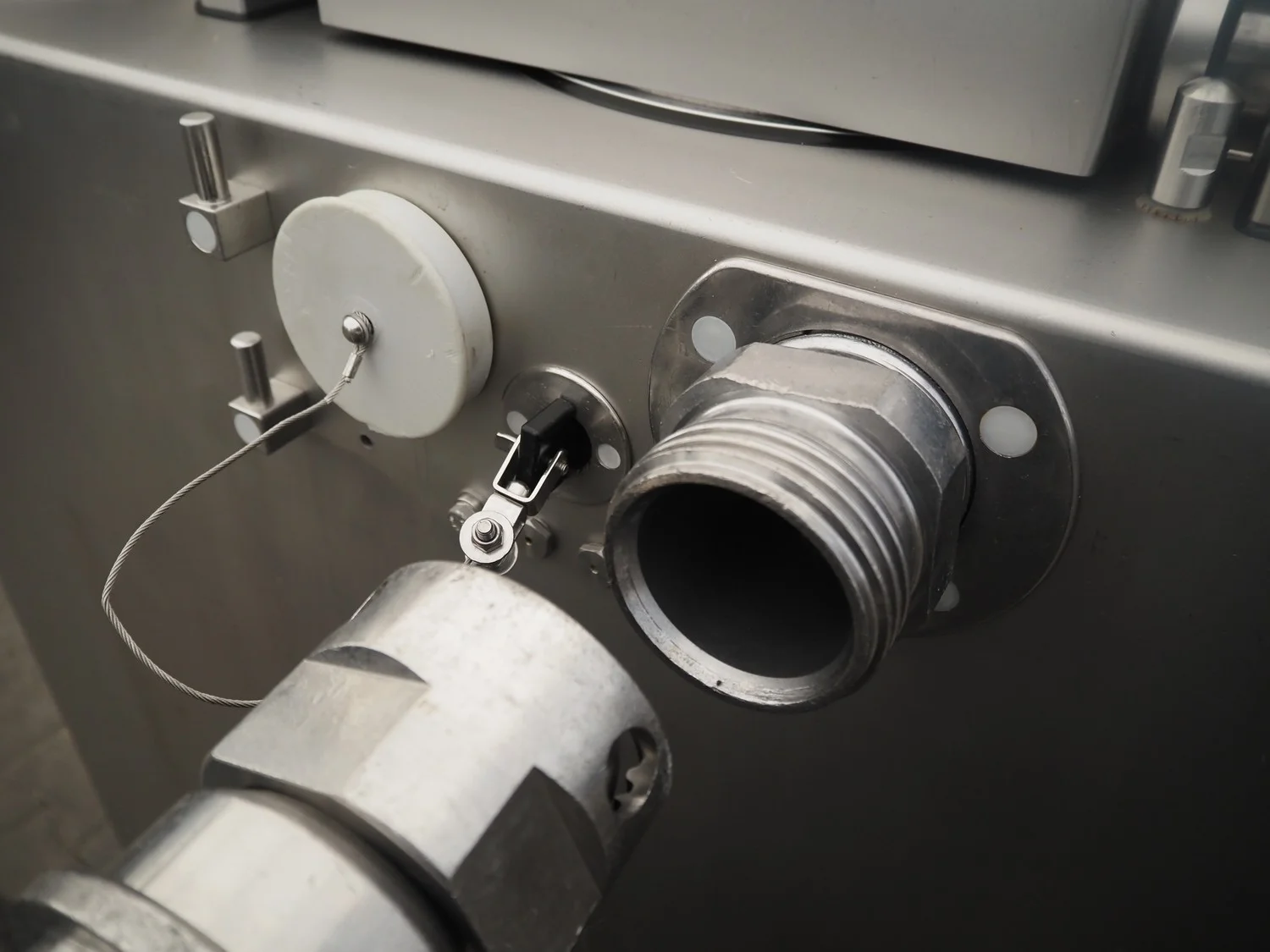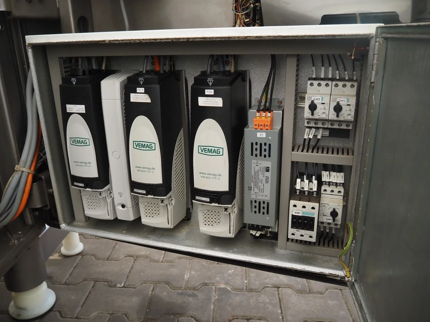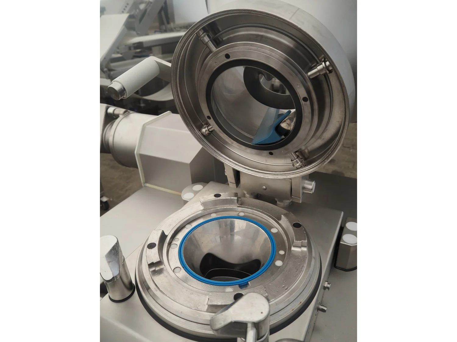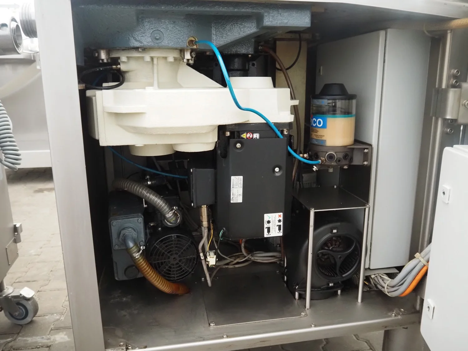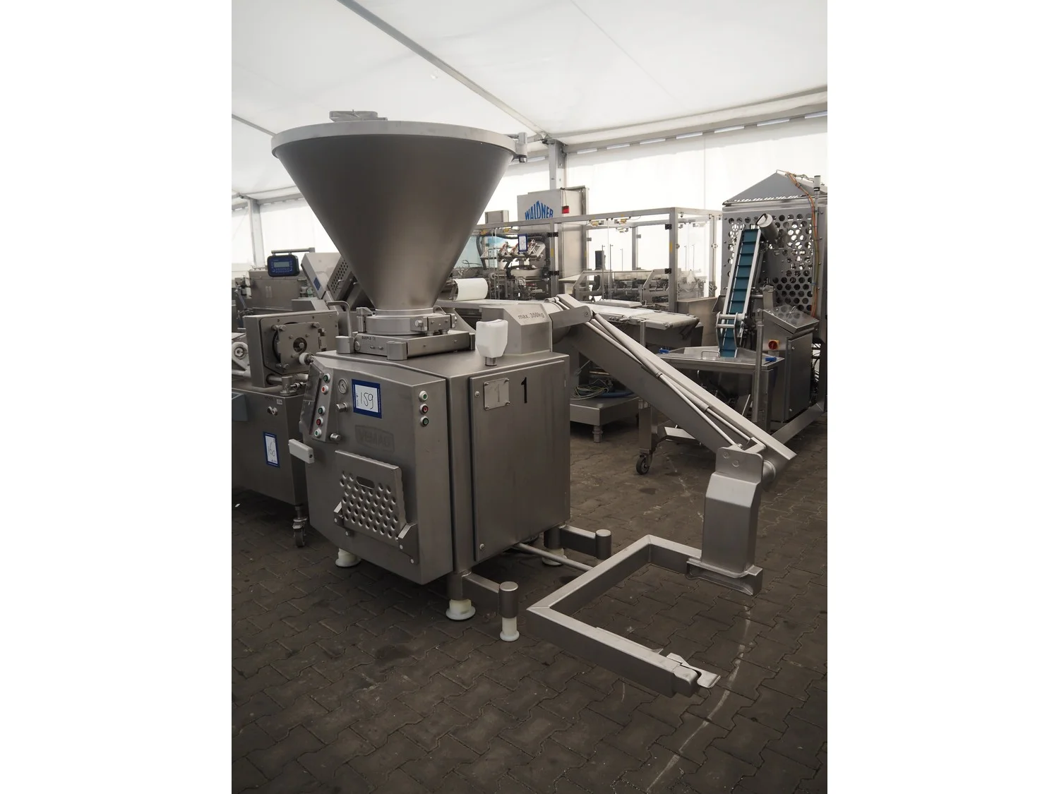 Vemag vacuum filling machine with lifter for 200 liter meat bins, model: DP10E, number: 1570100, year of construction: 2016, 400-460 V, 3 Ph, 50/60 Hz, 25 A, 15 kW, dimensions: 2250 mm x 1400 mm x 2120 mm.