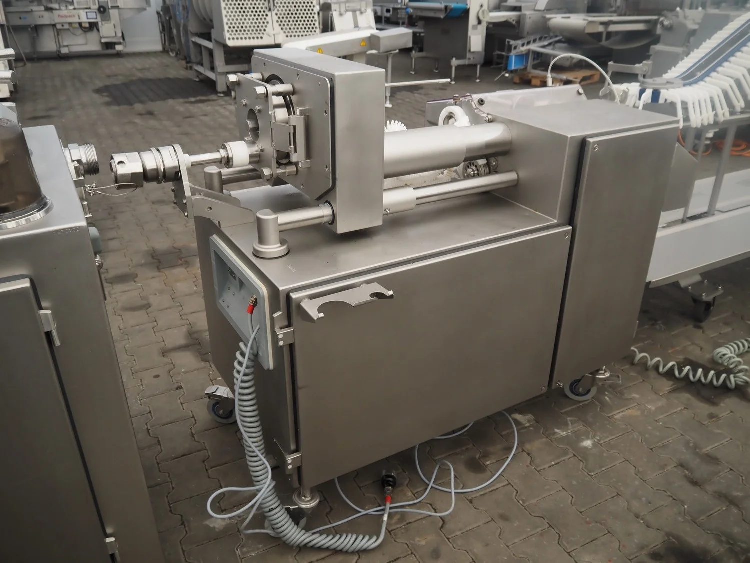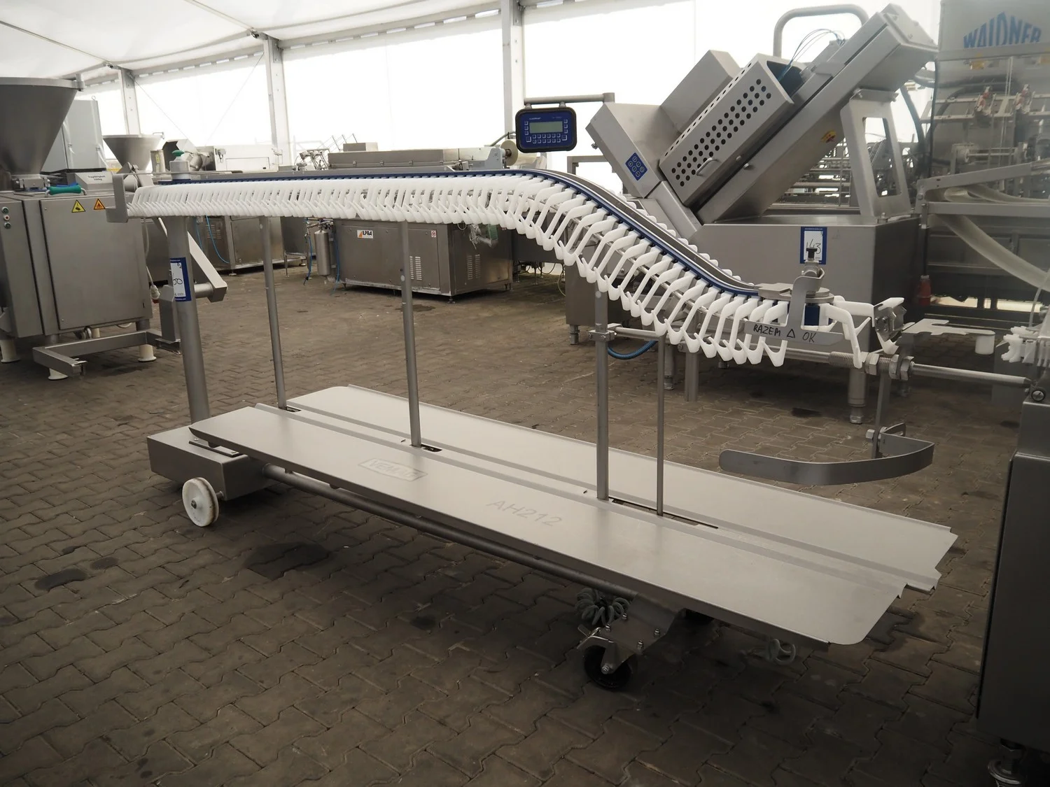 Vemag mobile length portioning line, consisting of: Vemag mobile high-speed length portioning machine, model: LPG 208, number: 208890003, year of construction: 2009, 400-460 V, 3 Ph, 50/60 Hz, 10 a, 6 kW, dimensions: 1740 mm x 930 mm x 1300 mm and Vemag mobile hanging line, model: AH 212, number: 2120423, year of construction: 2016, dimensions: 3620 mm x 760 mm x 1520 mm.