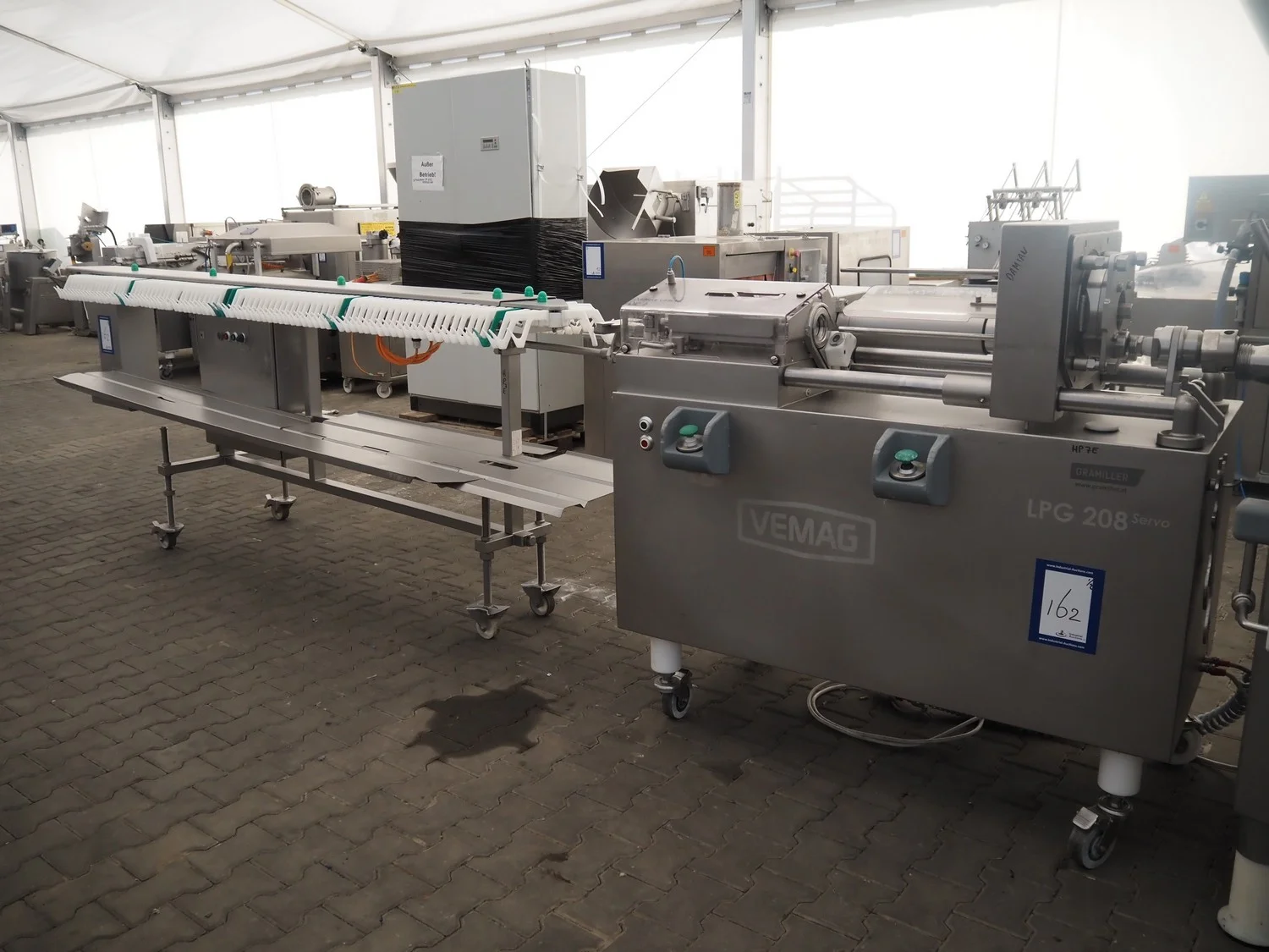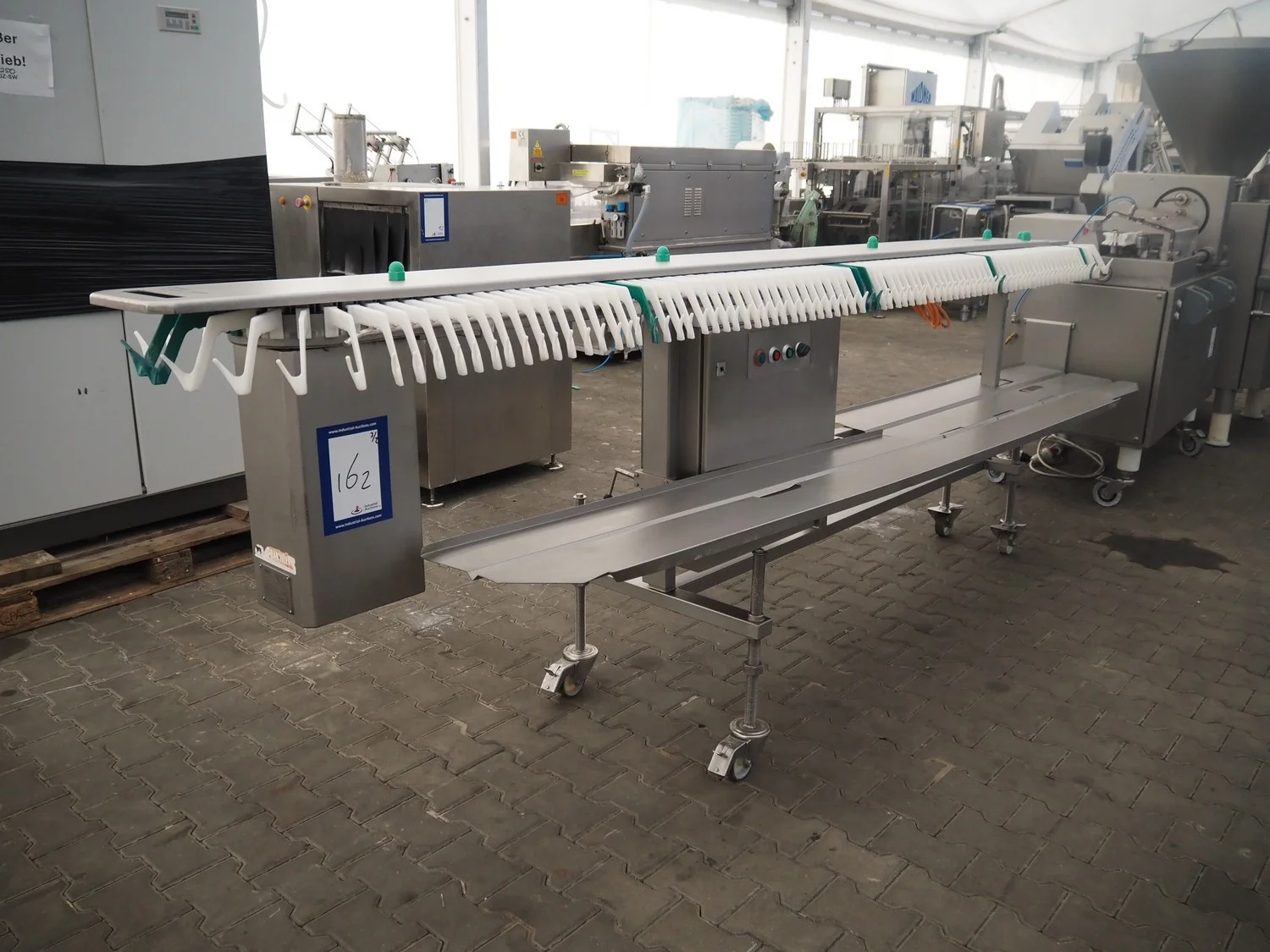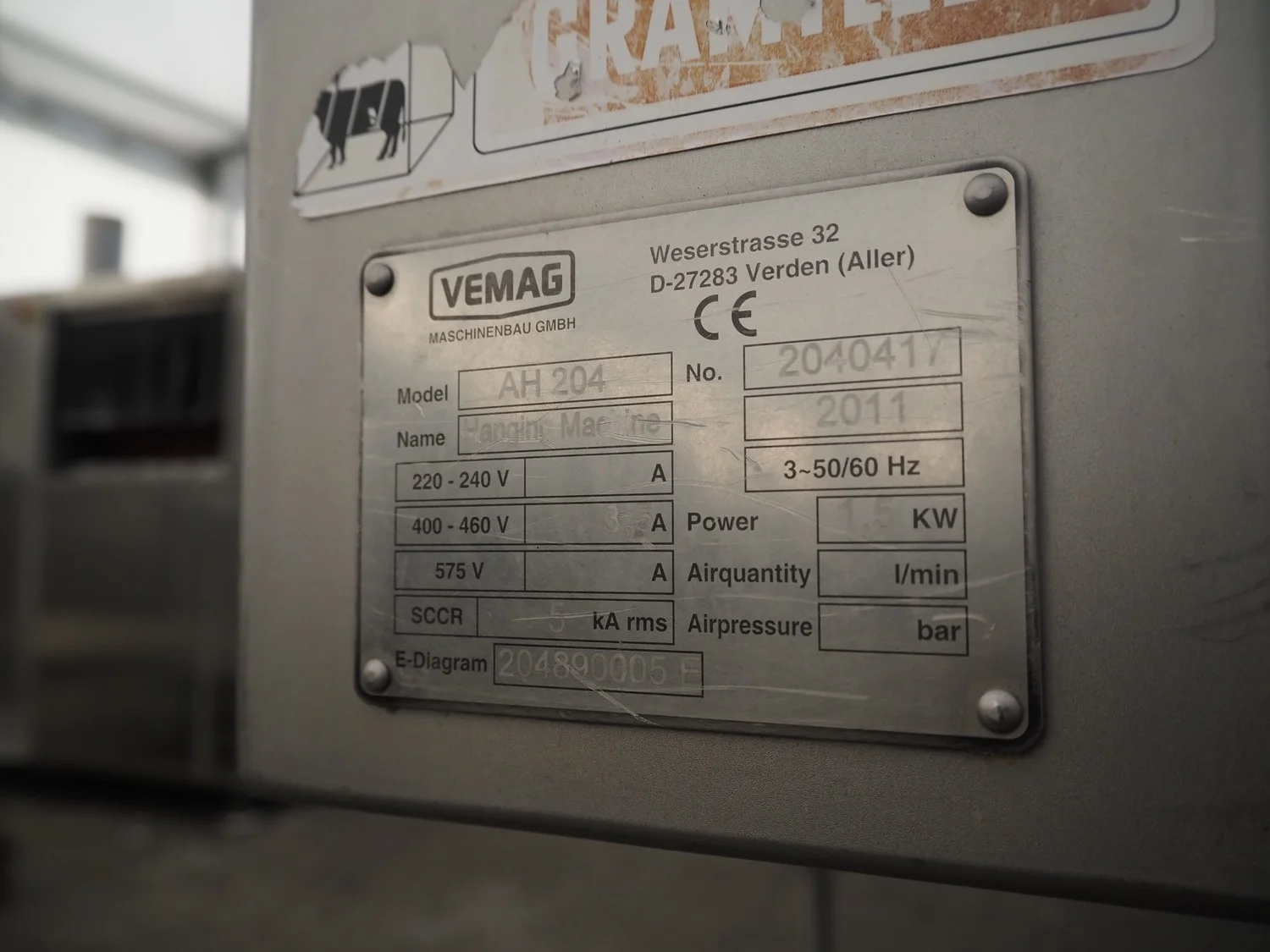 Vemag mobile linking and hanging line, model linker: LPG 208, number: 2080273, year of construction: 2011, 400-460 V, 3 Ph, 50/60 Hz, 9 A, 6 kW, dimensions: 1560 mm x 800 mm x 1440 mm, model hanging line: AH 204, number: 2040417, year of construction: 2011, 400-460 V, 3 Ph, 50/60 Hz, 3.5 A, 1.5 kW, dimensions: 4000 mm x 800 mm x 1250 mm.