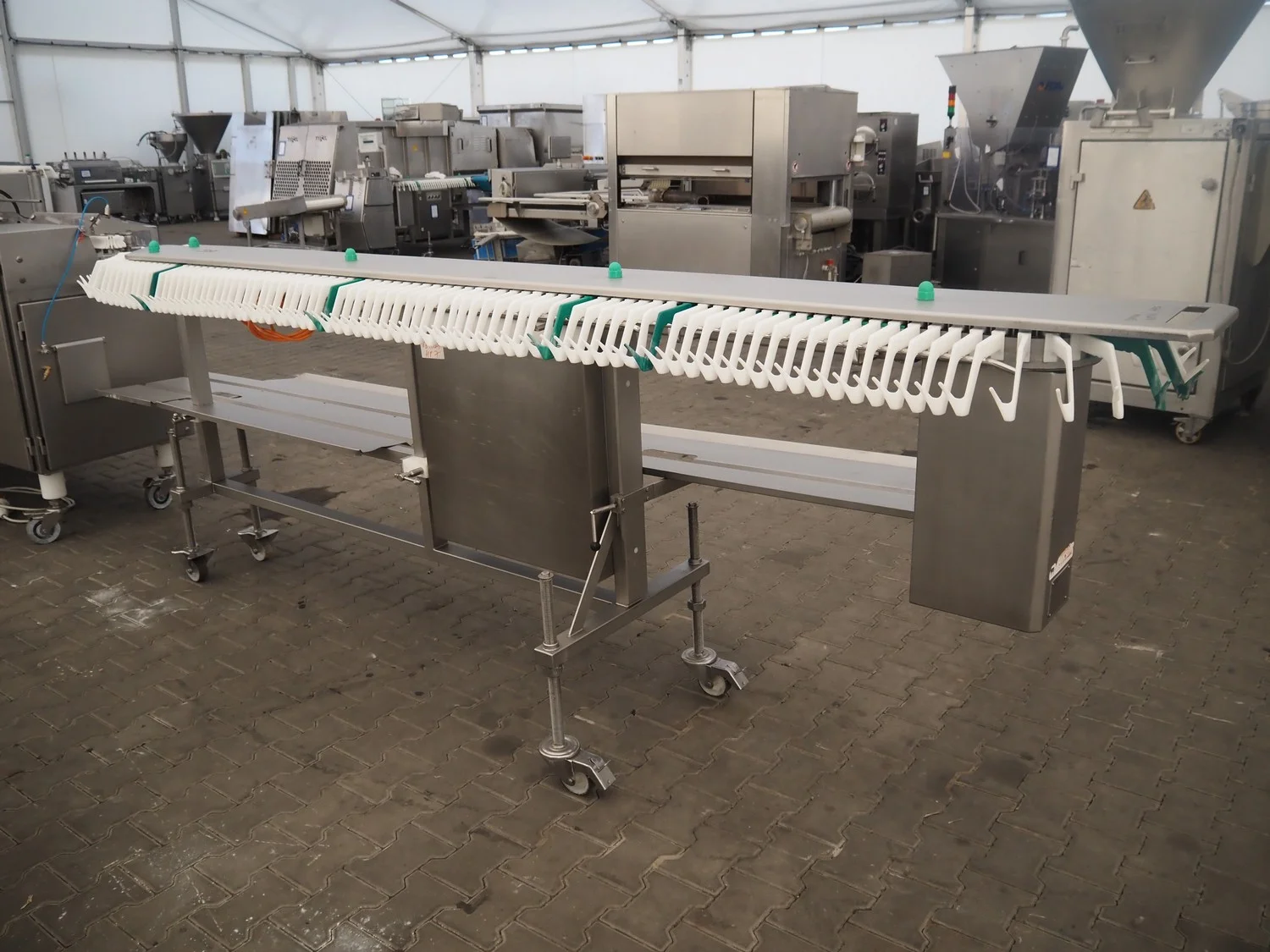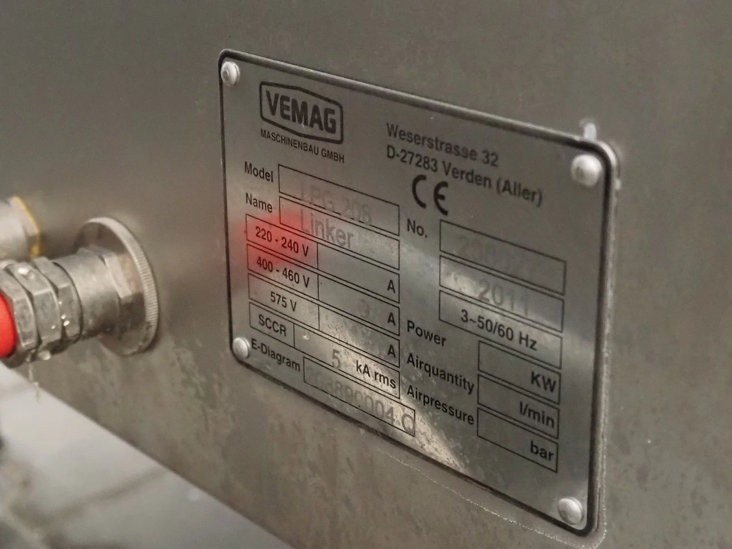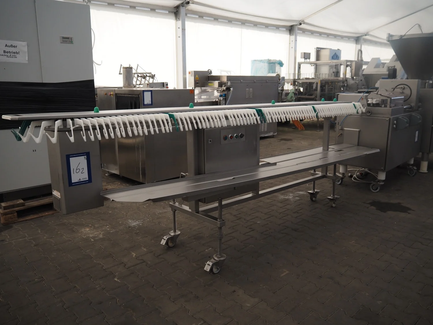 Vemag mobile linking and hanging line, model linker: LPG 208, number: 2080273, year of construction: 2011, 400-460 V, 3 Ph, 50/60 Hz, 9 A, 6 kW, dimensions: 1560 mm x 800 mm x 1440 mm, model hanging line: AH 204, number: 2040417, year of construction: 2011, 400-460 V, 3 Ph, 50/60 Hz, 3.5 A, 1.5 kW, dimensions: 4000 mm x 800 mm x 1250 mm.