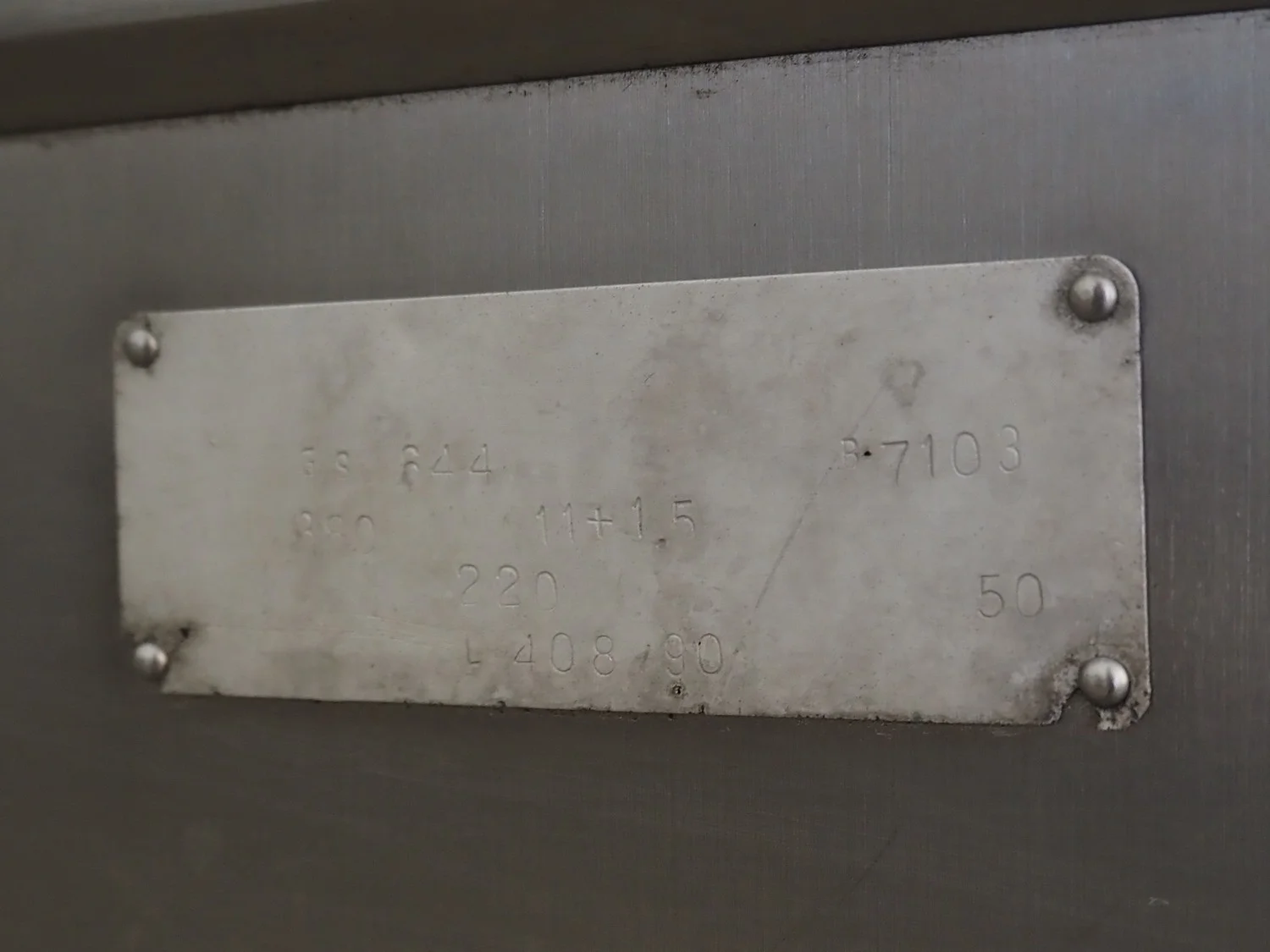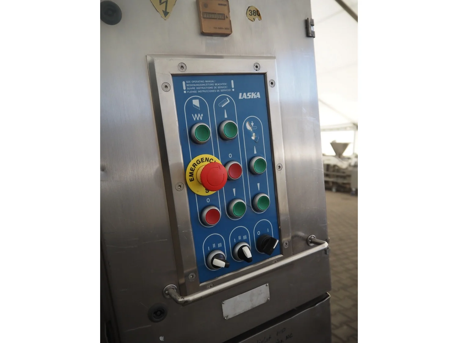 Laska frozen block cutter, type: G 644, number: B 705, 380/400 V, 3 Ph, 50 Hz, 26 A, 13 kW, working width: 640 mm, total dimensions: 1250 mm x 1900 mm x 2000 mm.
