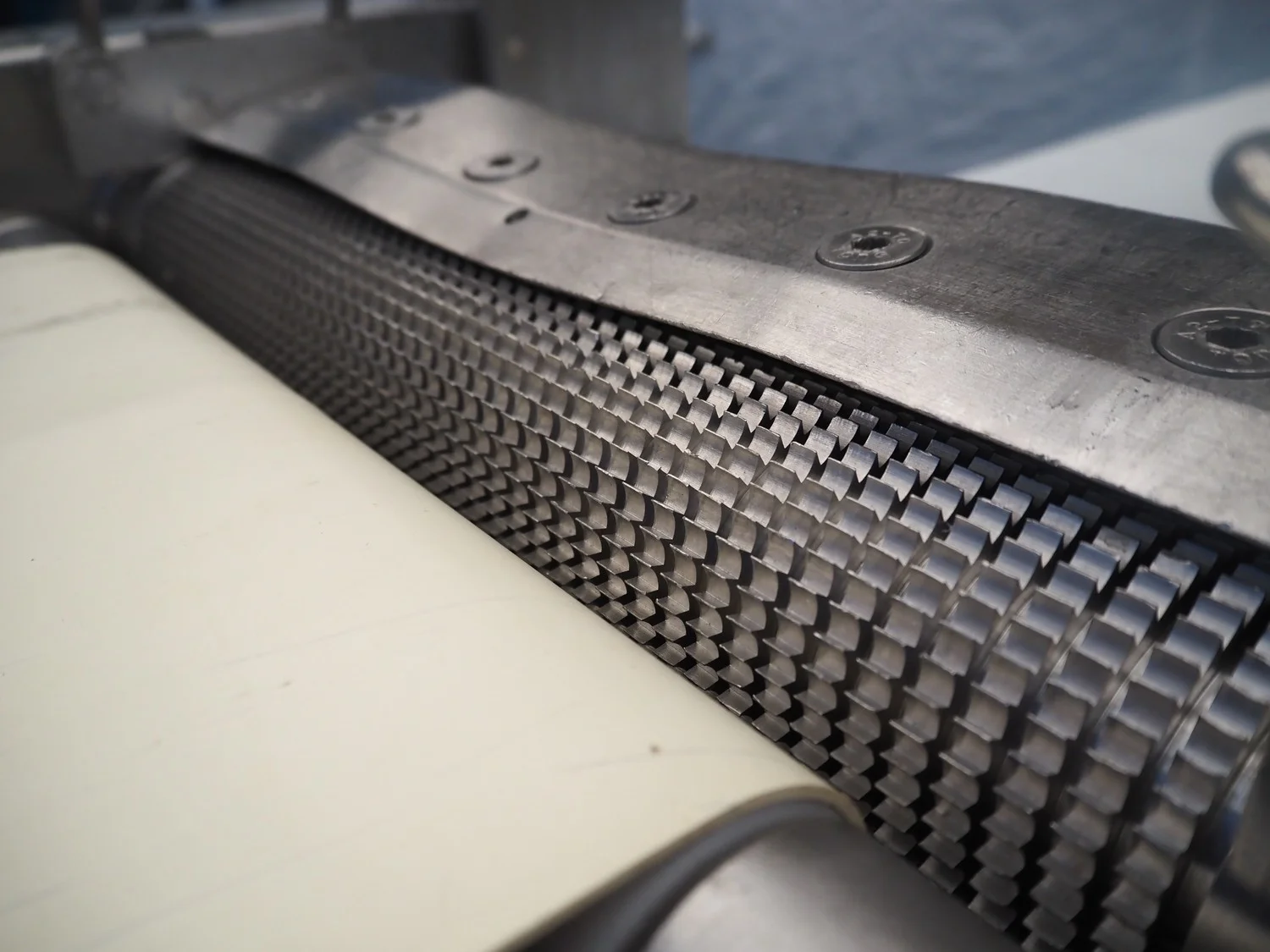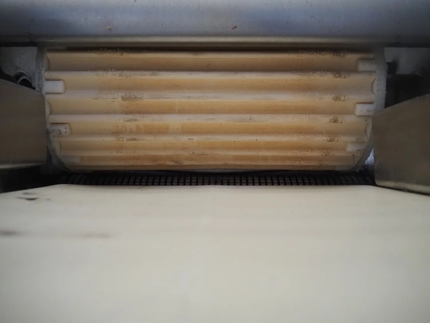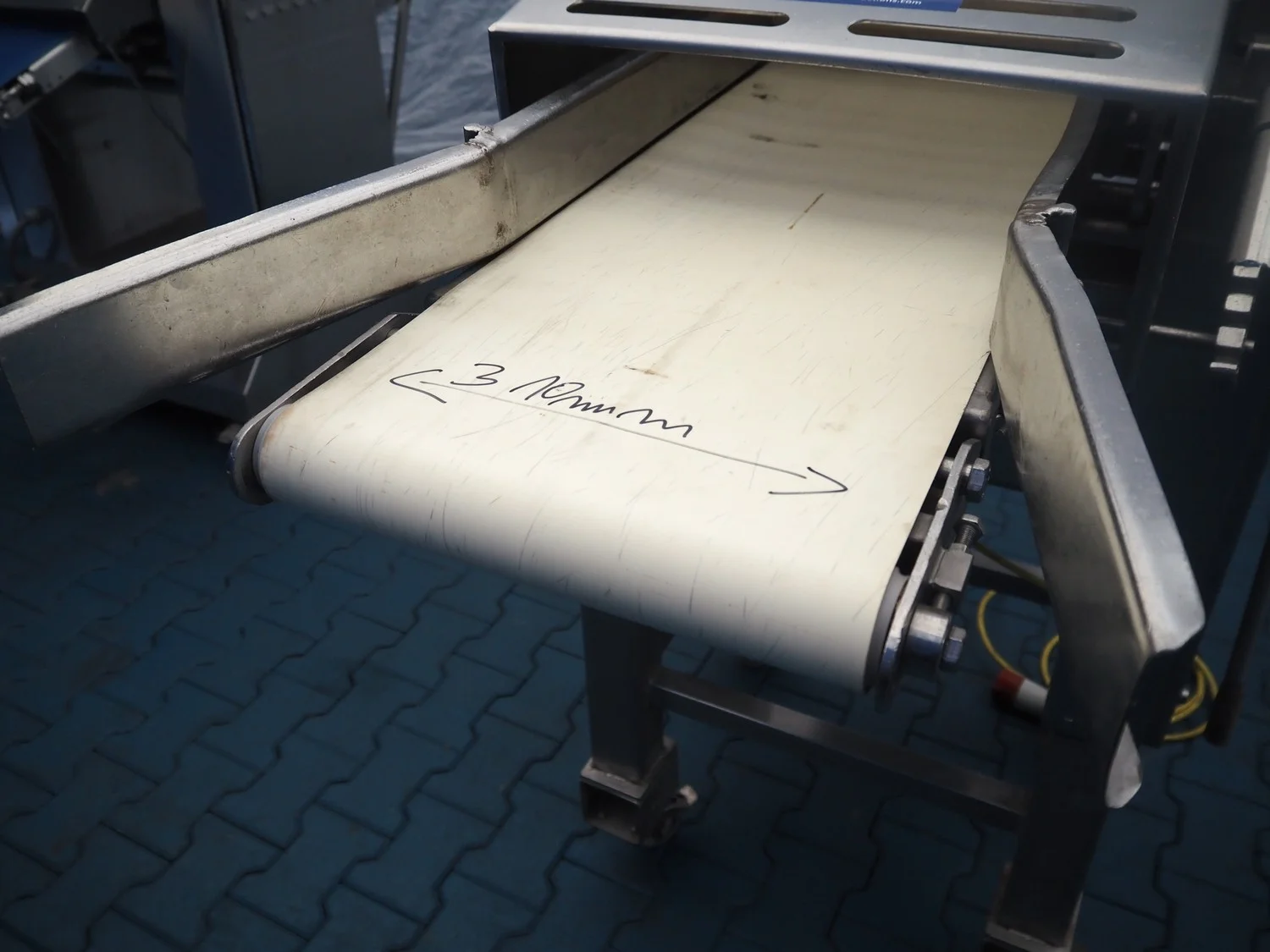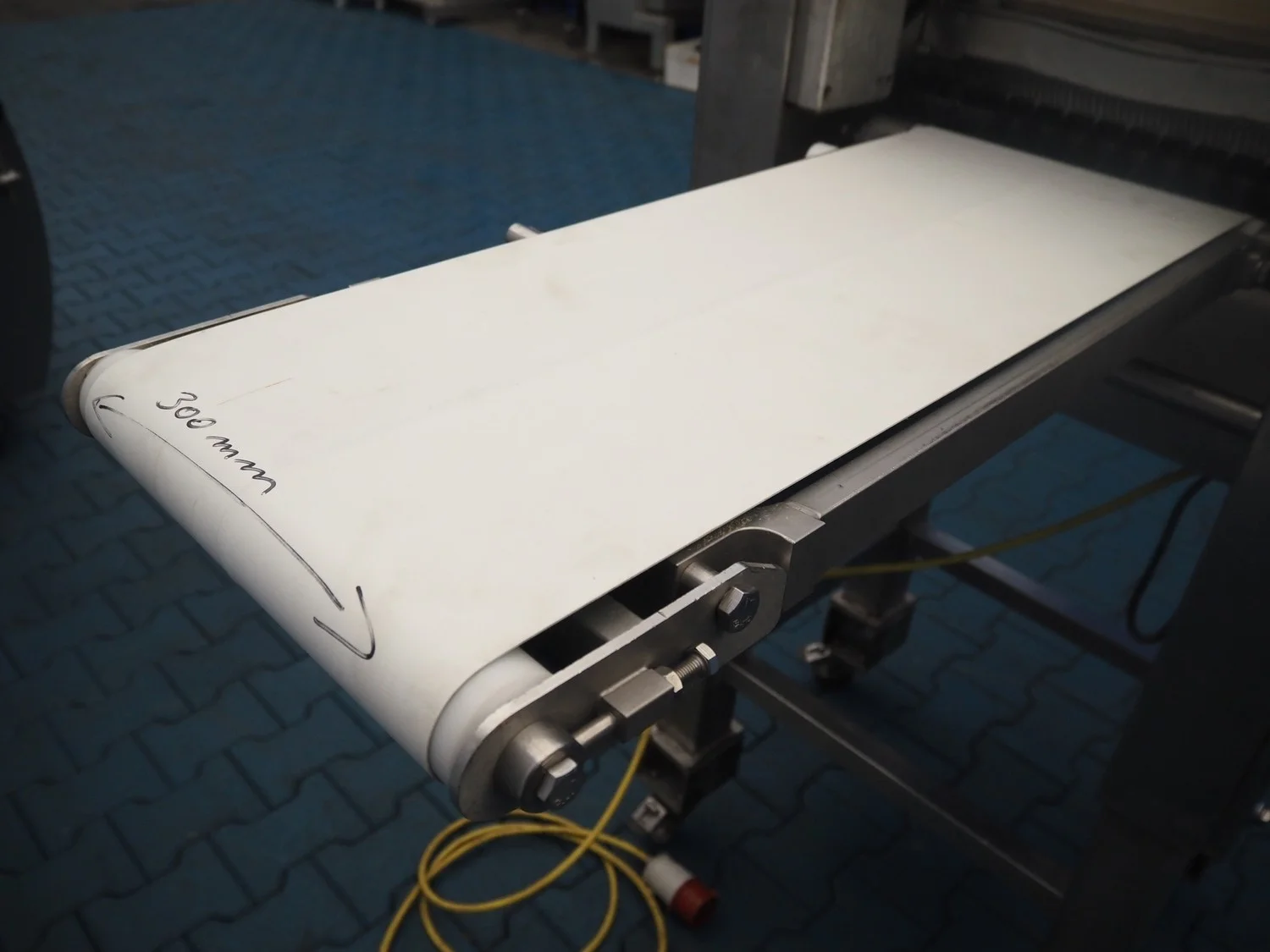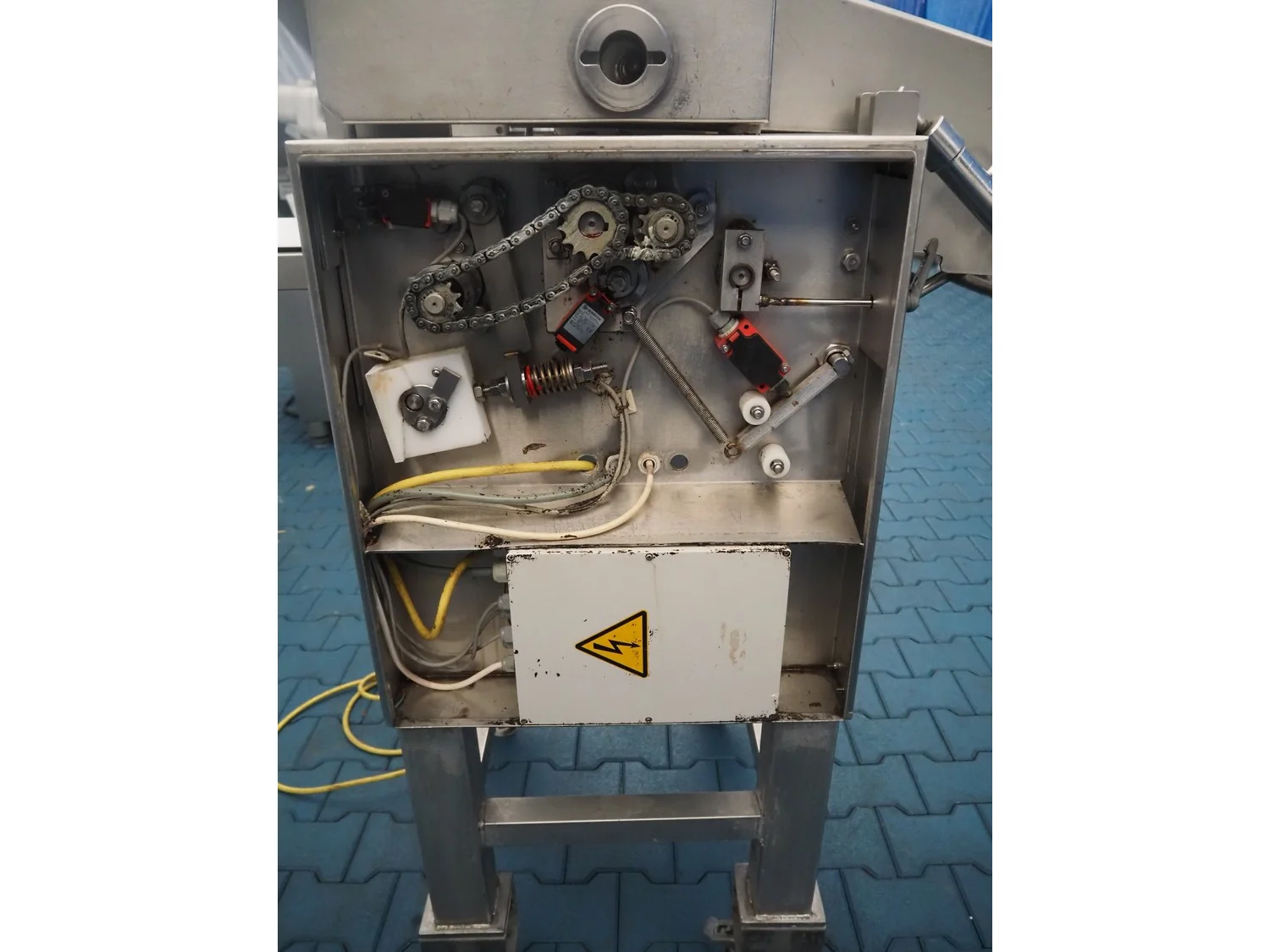 Weber mobile skinning and derinding machine, type: ASB 600, number: 1730, 400 V, 50 Hz, 0.85 kW, working width: 400 mm, plastic belt, belt width: 320 mm, total dimensions: 1800 mm x 800 mm x 1500 mm.