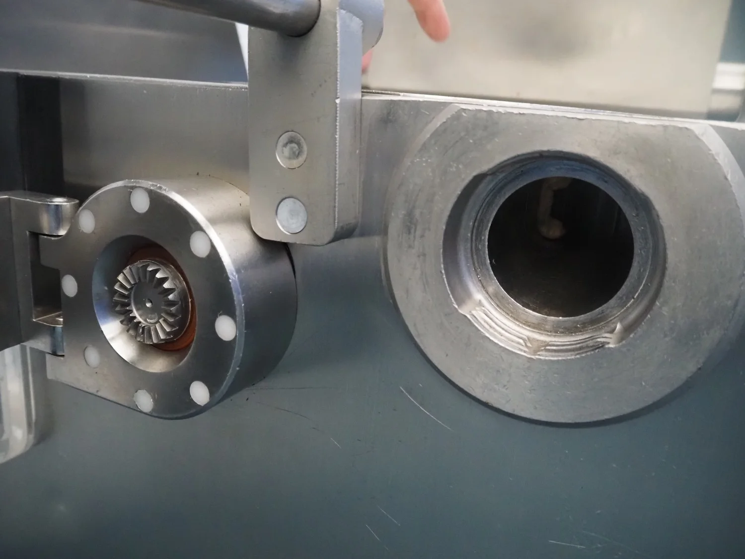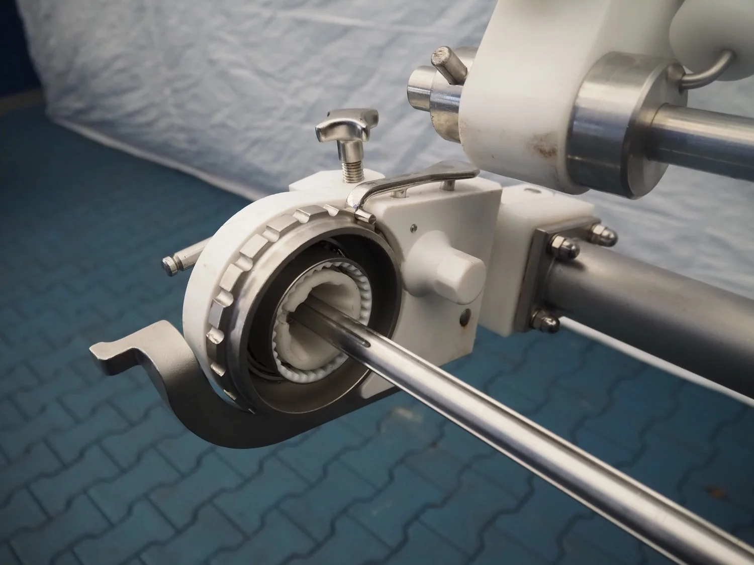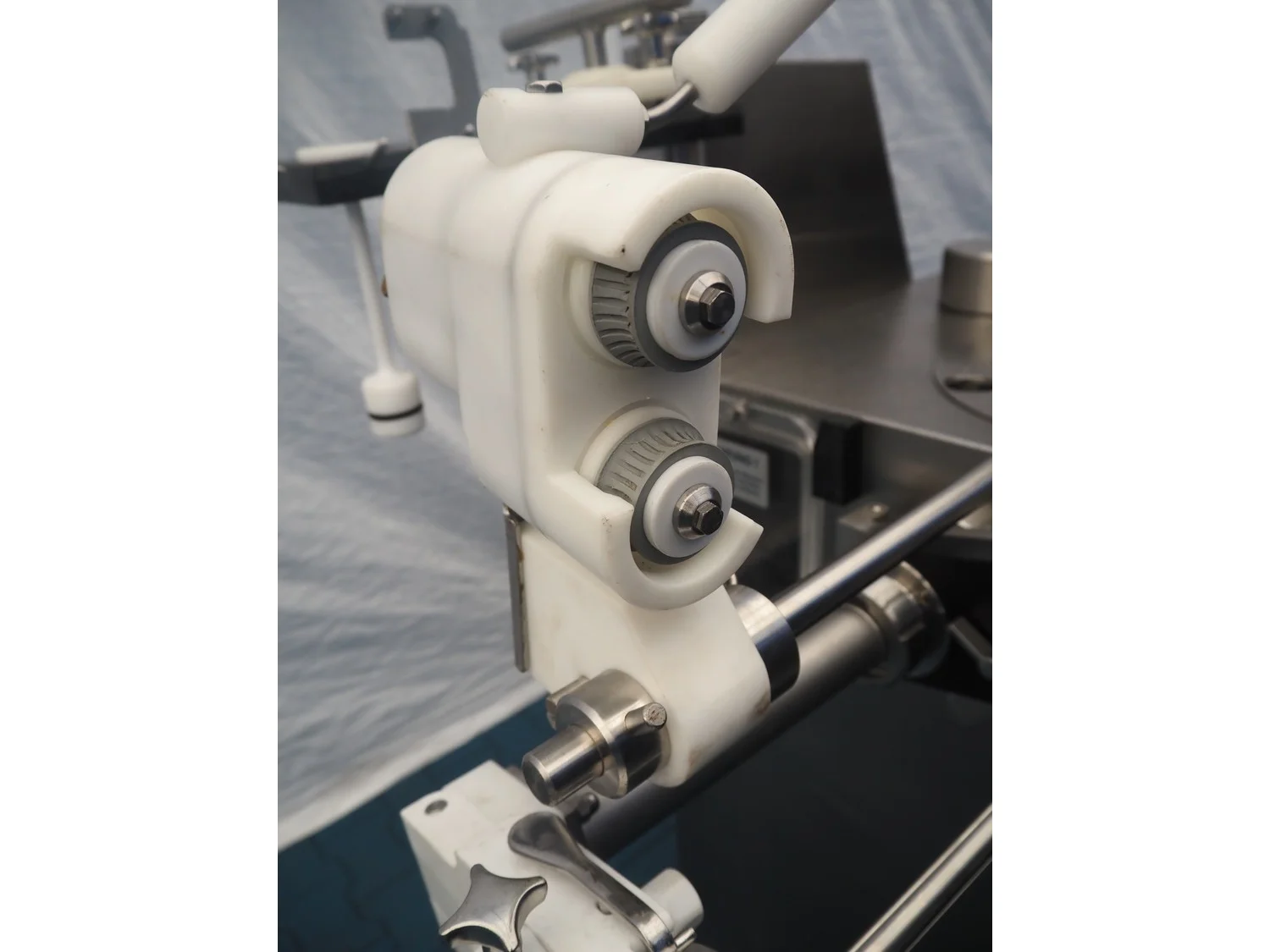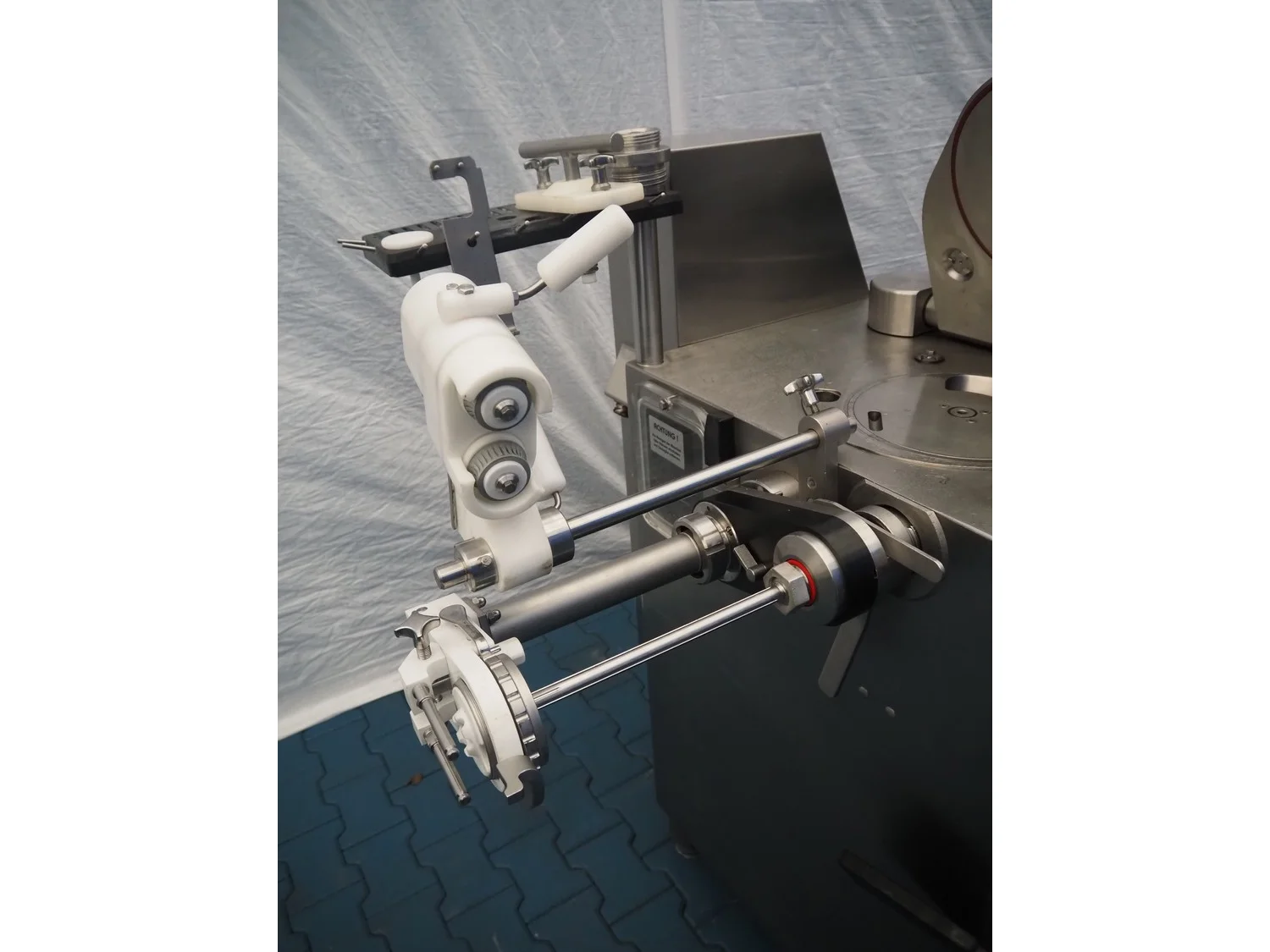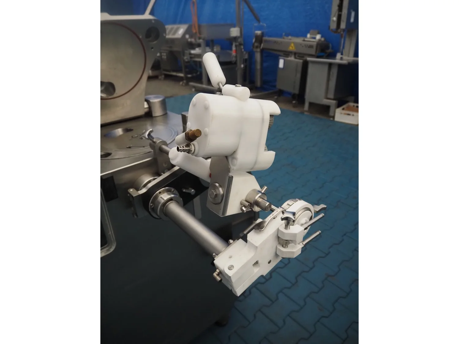 Frey Maschinenbau vacuum filling machine with casing spooler and linking attachment, type: F-LINE F222, machine number: F222T036806SA, 400 V, 50 Hz, 14.75 kW, dimensions: 2000 mm x 1200 mm x 2200 mm.