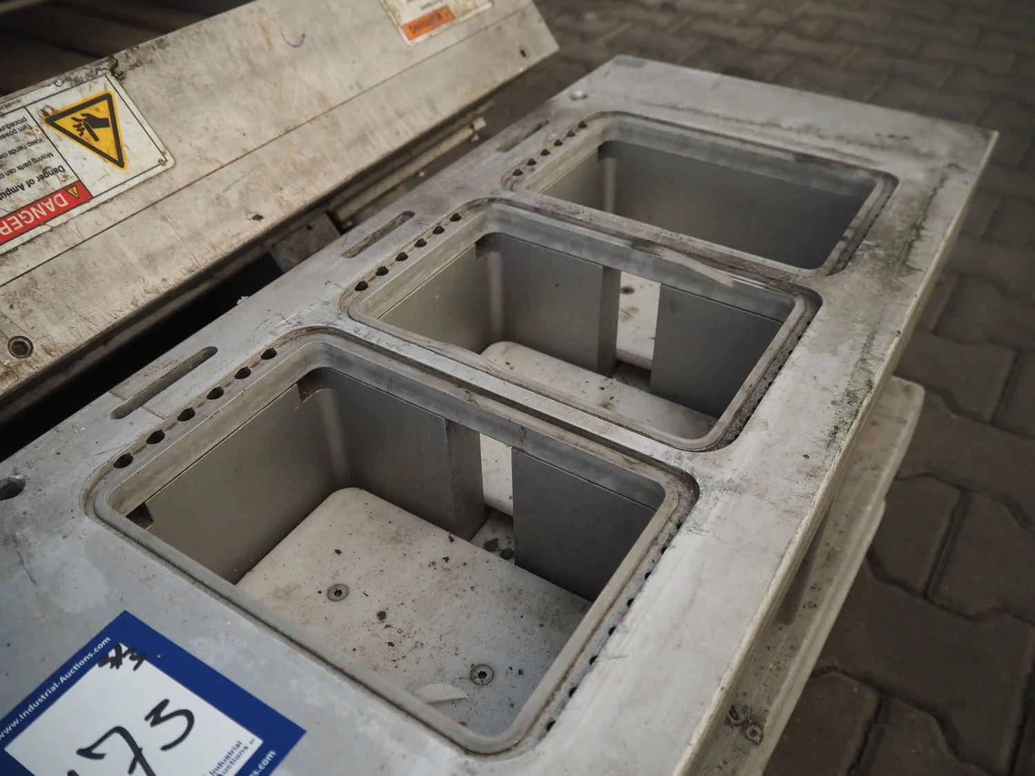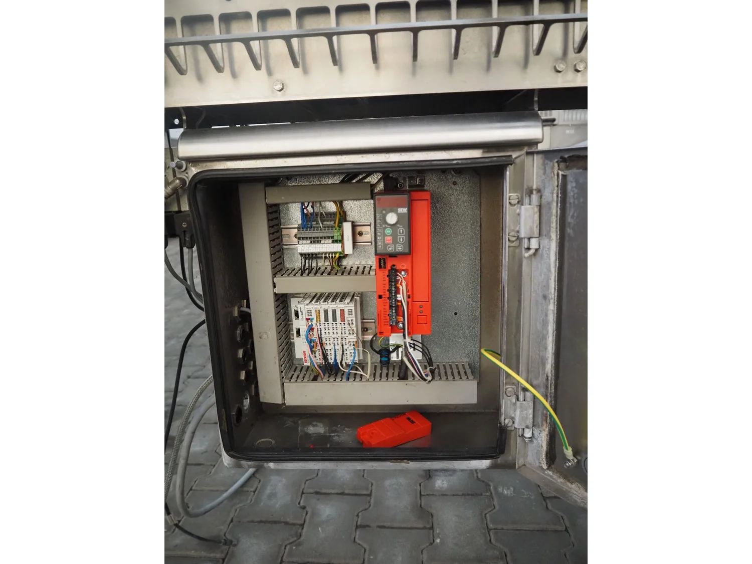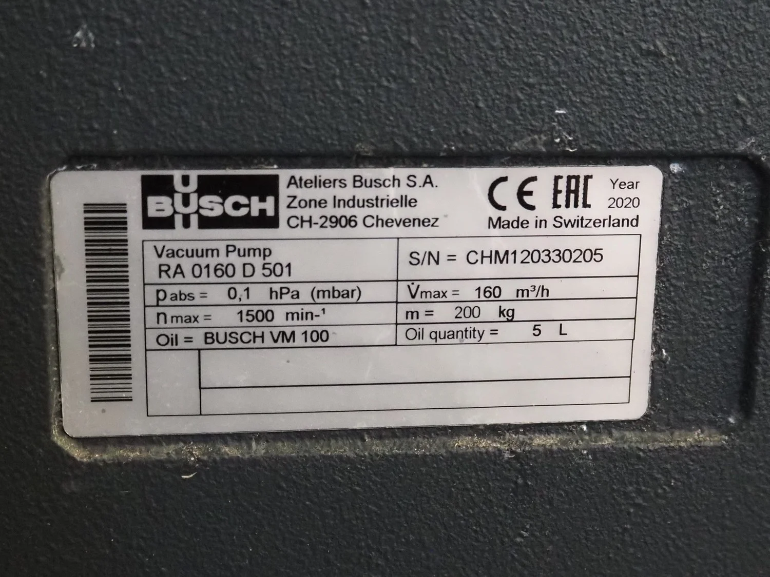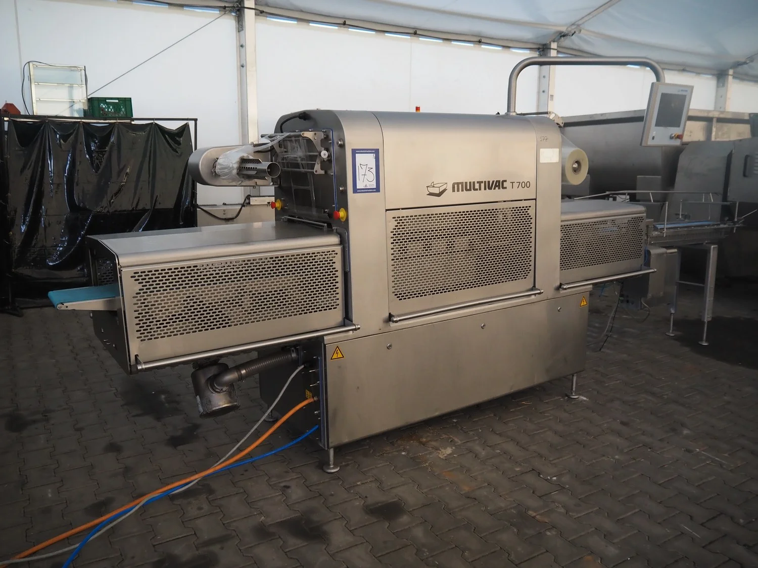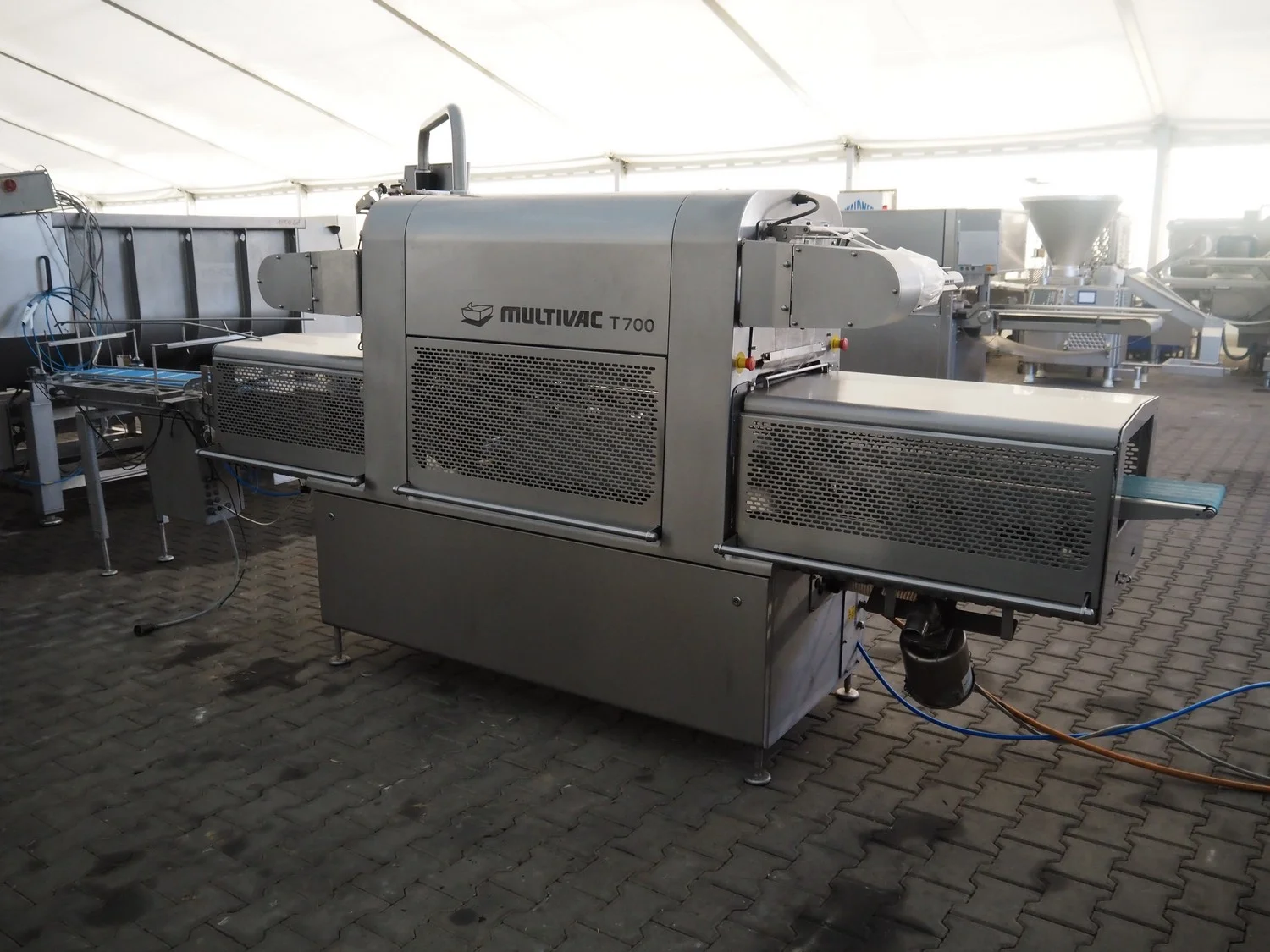 Multivac traysealer, type: T700, number: 175549, year of construction: 2013, 400/230 V, 3 Ph, 50 Hz, 18/32 A, 4.2 kW, dye: (4x) 140 mm x 200 mm, plastic mesh belt, belt width: 200 mm, total dimensions: 5000 mm x 1000 mm x 2000 mm. Including Busch vacuum pump, type: RA 0160 D 501, serial number: CHM120330205, year of construction: 2020, capacity: 160 m³ per hour, dimensions Busch: 1000 mm x 750 mm x 850 mm and a pallet with dye's, dimensions dye's: (3x) 260 mm x 180 mm, total dimensions pallet: 1200 mm x 800 mm x 600 mm.