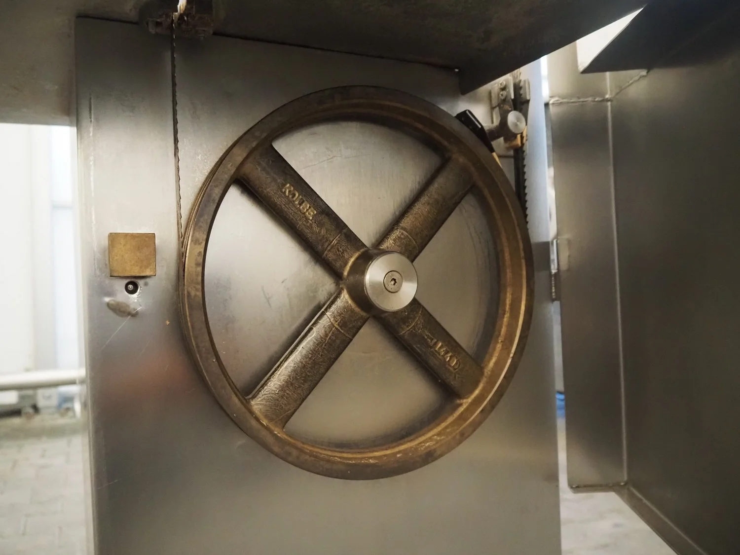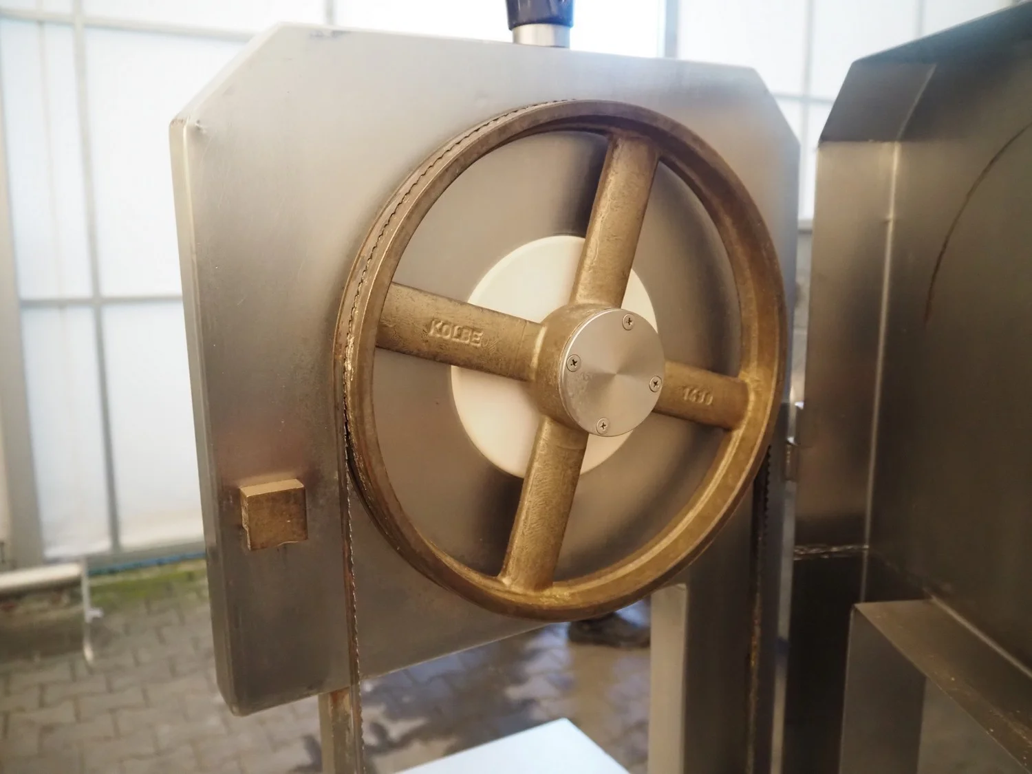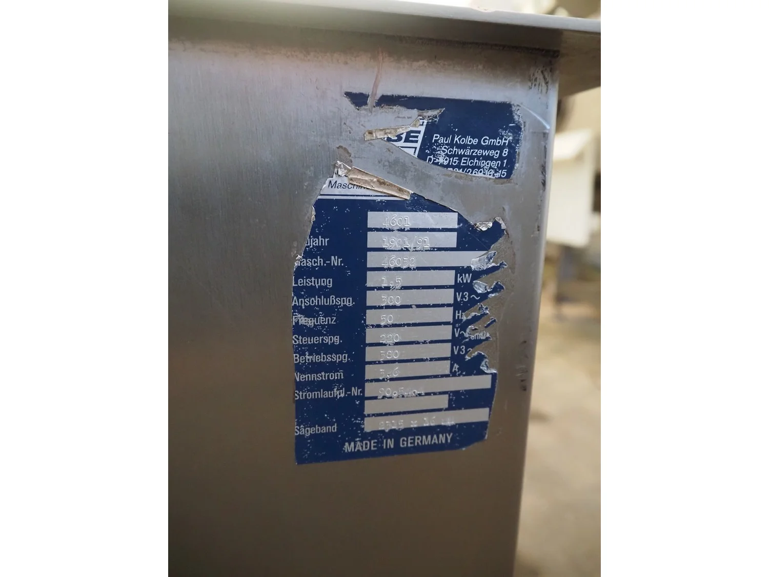 Kolbe bandsaw, type: 4601, machine number: 46032, year of construction: 1901/91, 380 V, 3 Ph, 50 Hz, 3.6 A, 1.5 kW, dimensions table: 660 mm x 600 mm, total dimensions: 680 mm x 600 mm x 1600 mm.