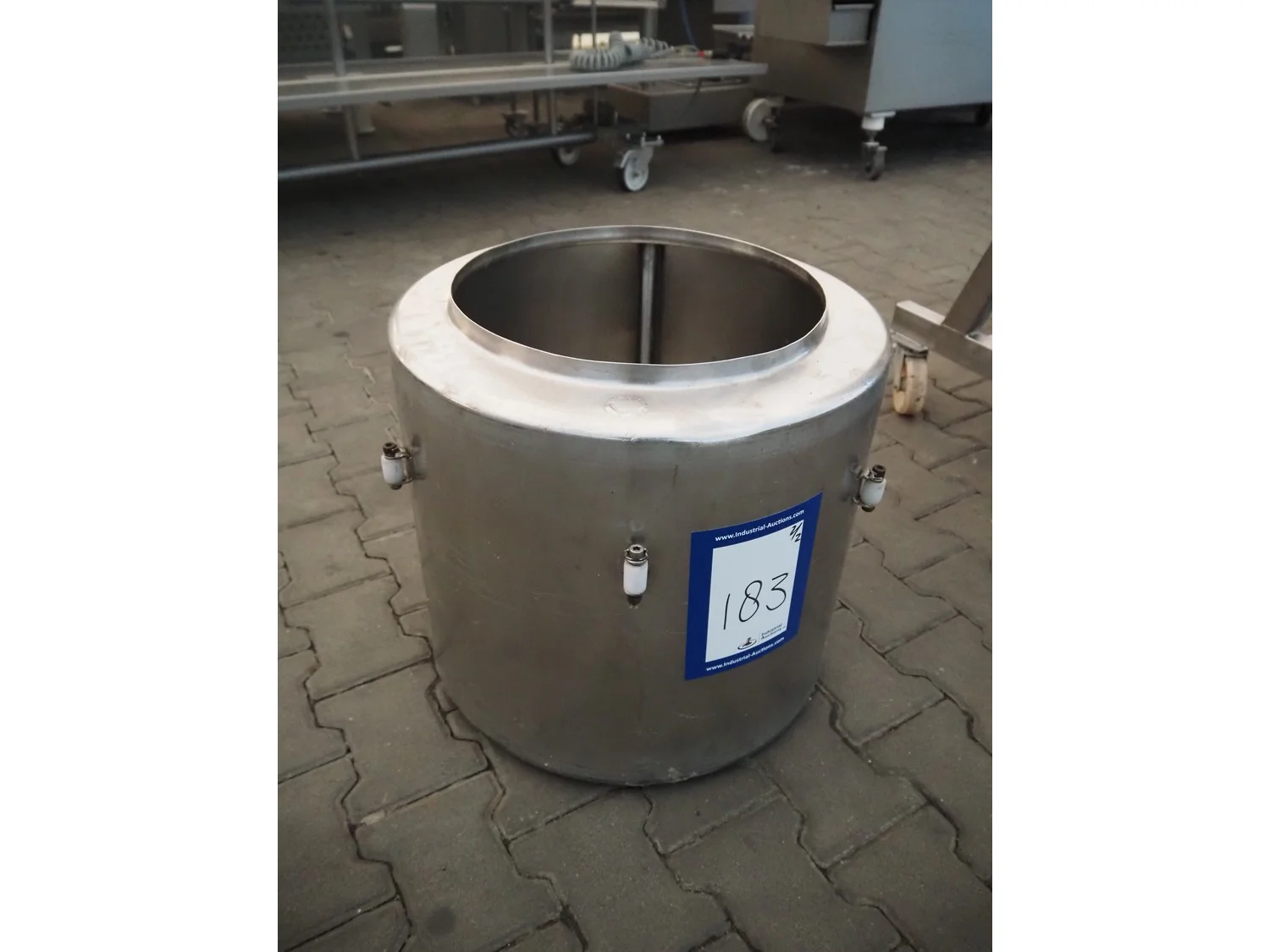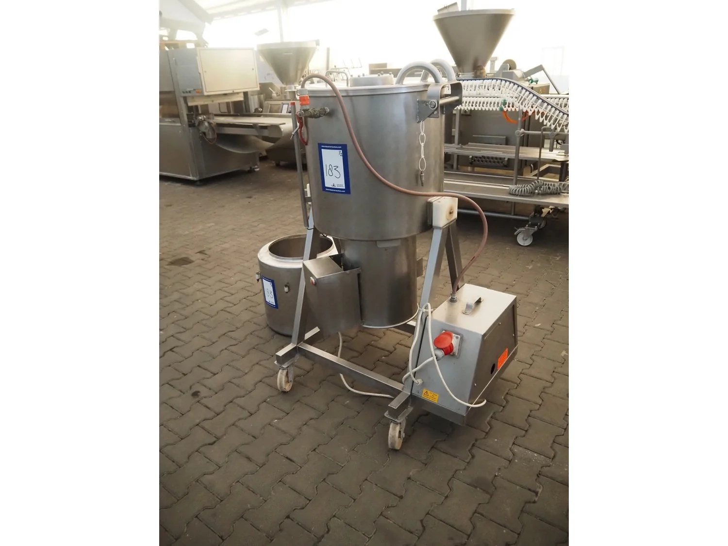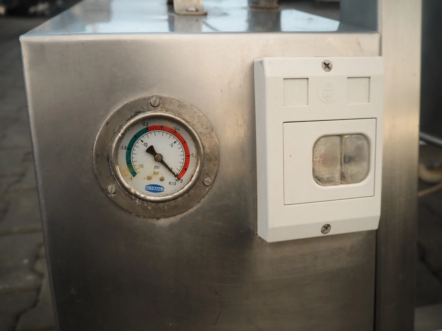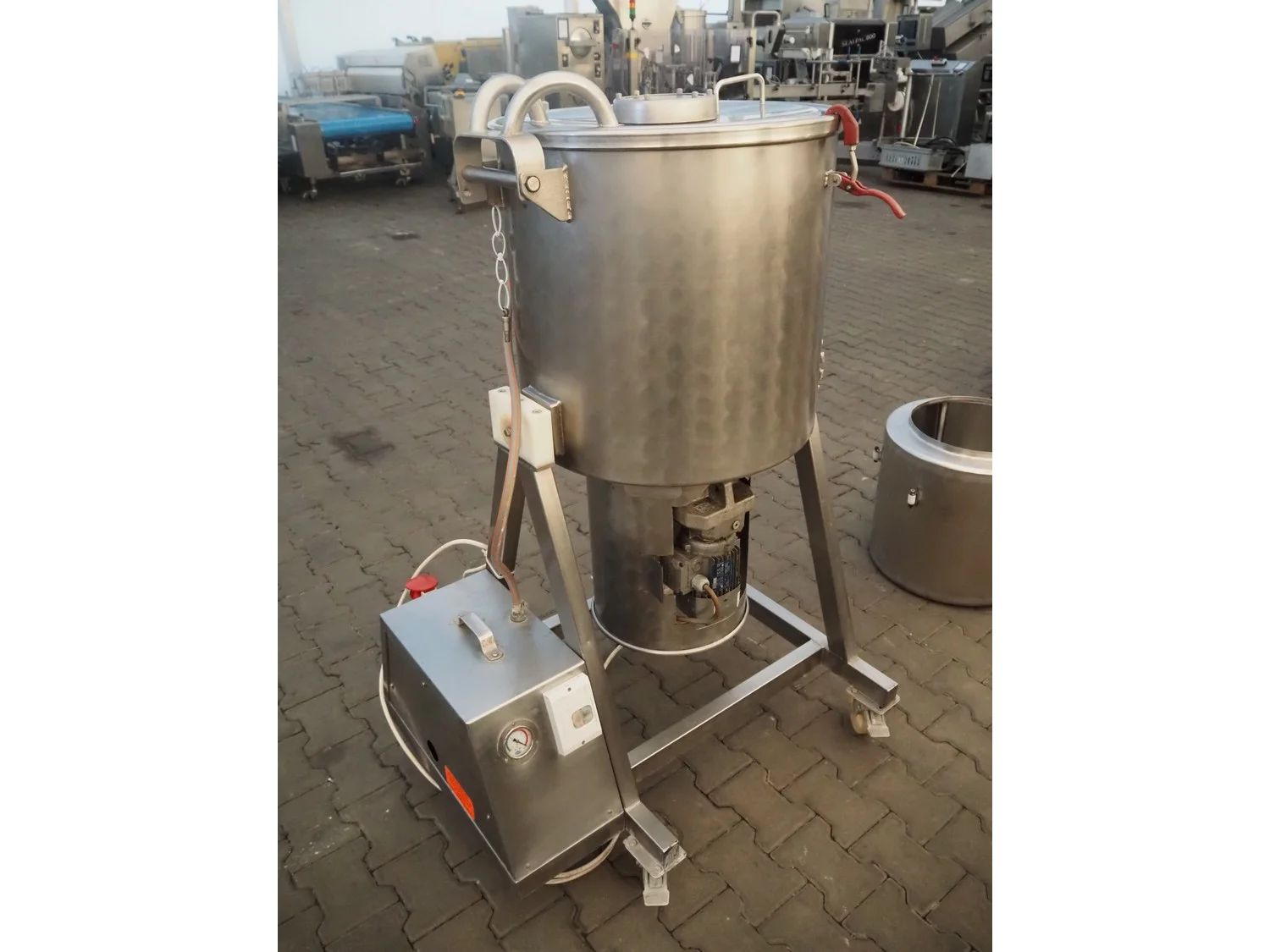 Mobile tiltable vacuum tumbler, inside dimensions: Ø 600 mm x 550 mm, Busch vacuum pump, type: 010-112, number: 300219, capacity: 10 m³ per hour, total dimensions: 1000 mm x 880 mm x 1620 mm. Including extra drum.