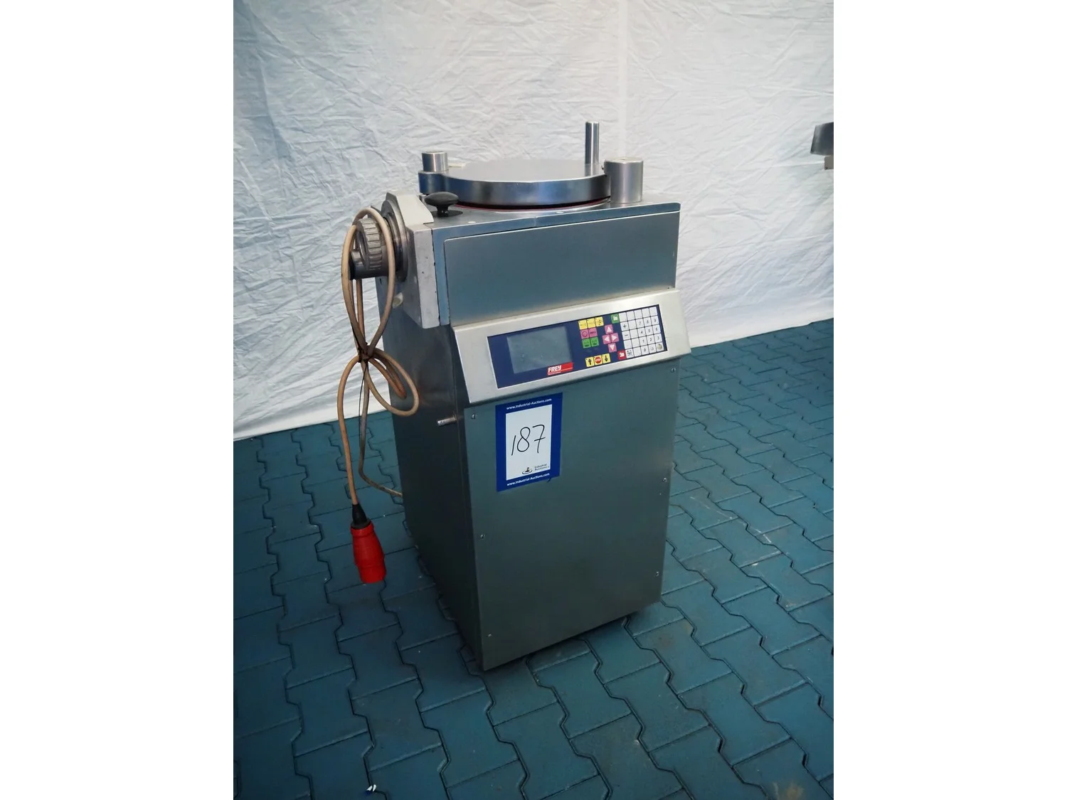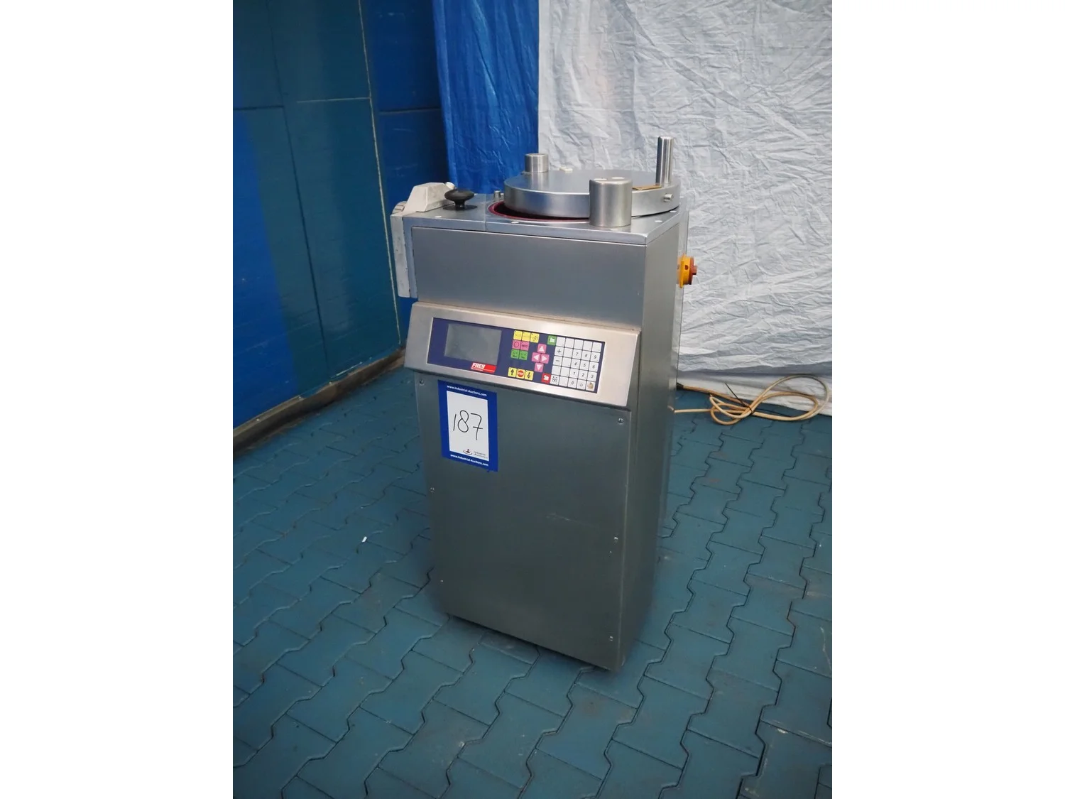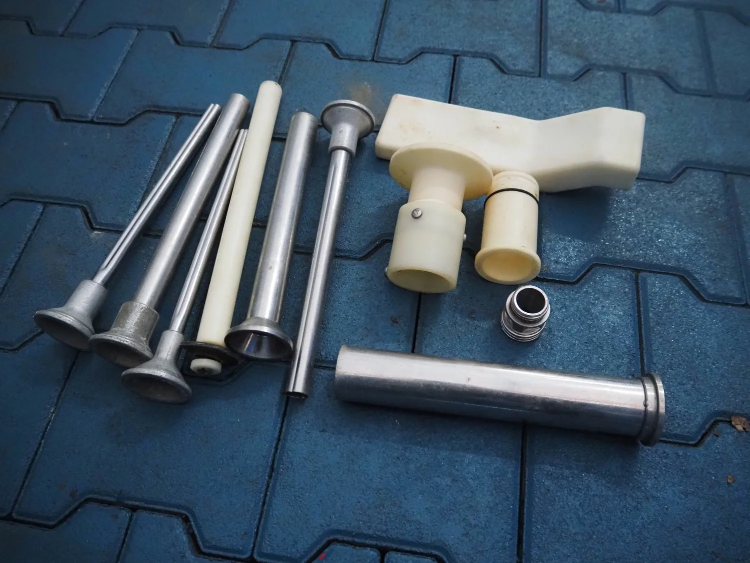 Heinrich Frey Maschinenbau piston filler, type: Kompakta 2, machine number: K2 30 08 10 90, 380 V, knee control, dimensions: 780 mm x 1000 mm x 1080 mm. Including various filling pipes.