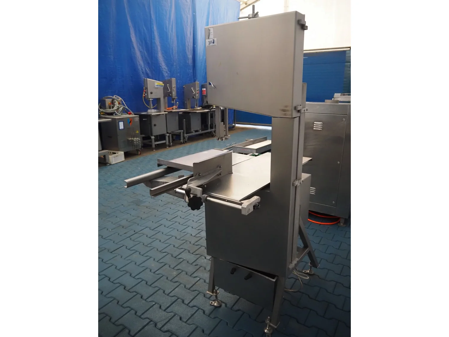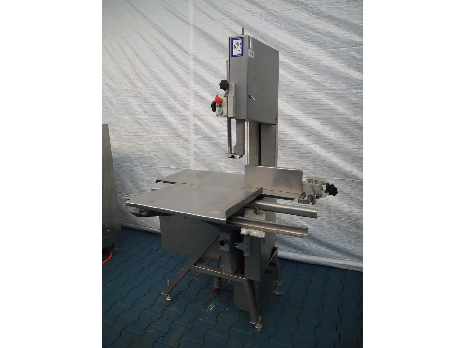 A.E.W. Engineering bandsaw, model: 400M, serial number: LHS 410699, 380 V, 3 Ph, 50 Hz, 4.7 A, weight: 250 kg, table dimensions: 1600 mm x 900 mm, total dimensions: 1200 mm x 1000 mm x 2000 mm.