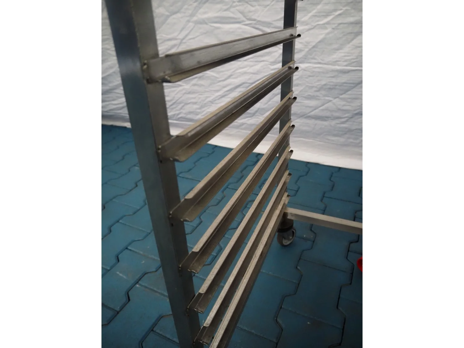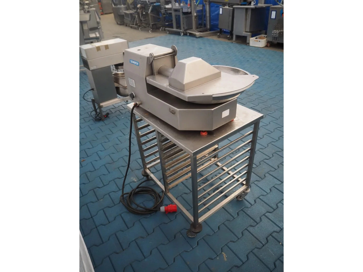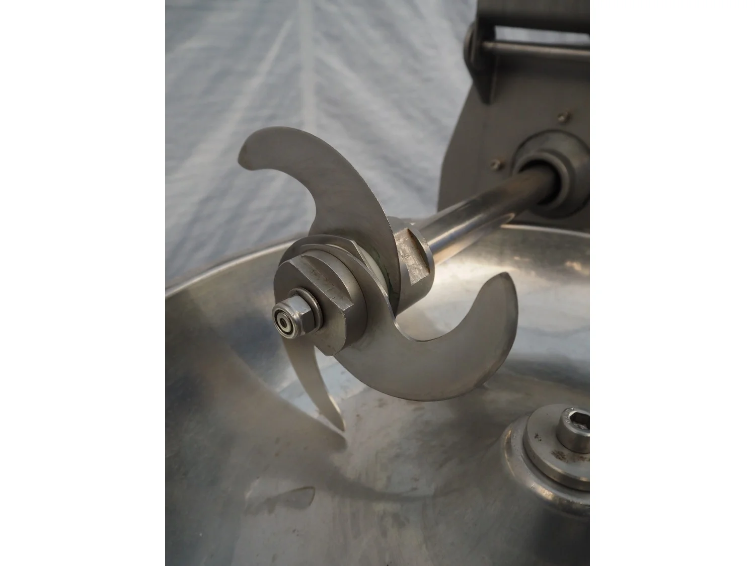 Scharfen cutter on s/s trolley, type: TC11, number: 2143033, year of construction: 2014, 400 V, 3.6/5.1 A, 1400/1800 W, s/s bowl, volume: 11 liter, dimensions cutter: 850 mm x 500 mm x 580 mm, dimensions trolley: 770 mm x 580 mm x 800 mm.
