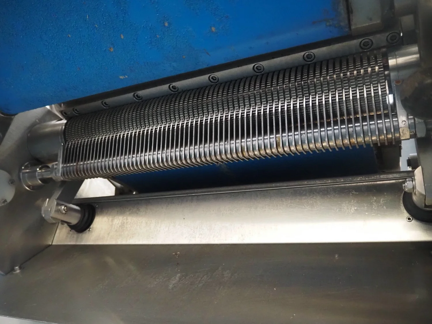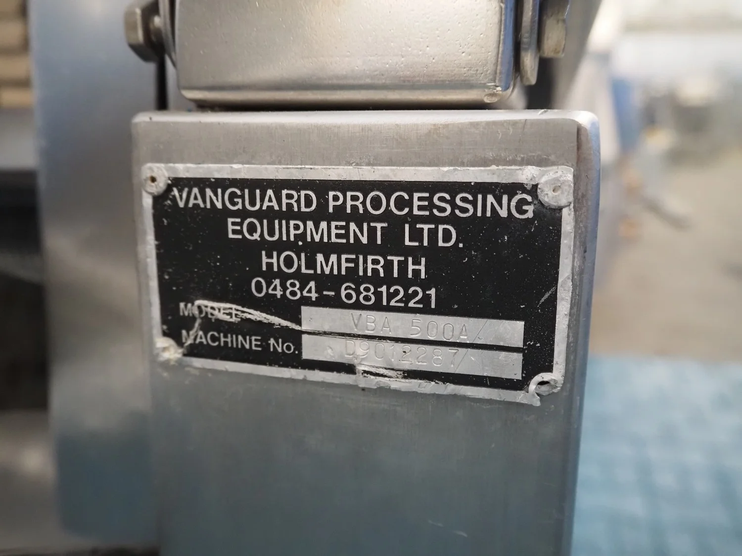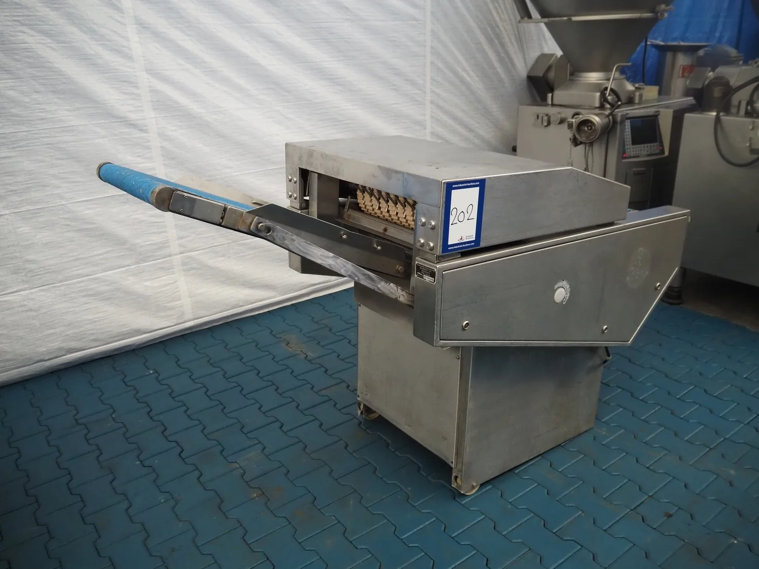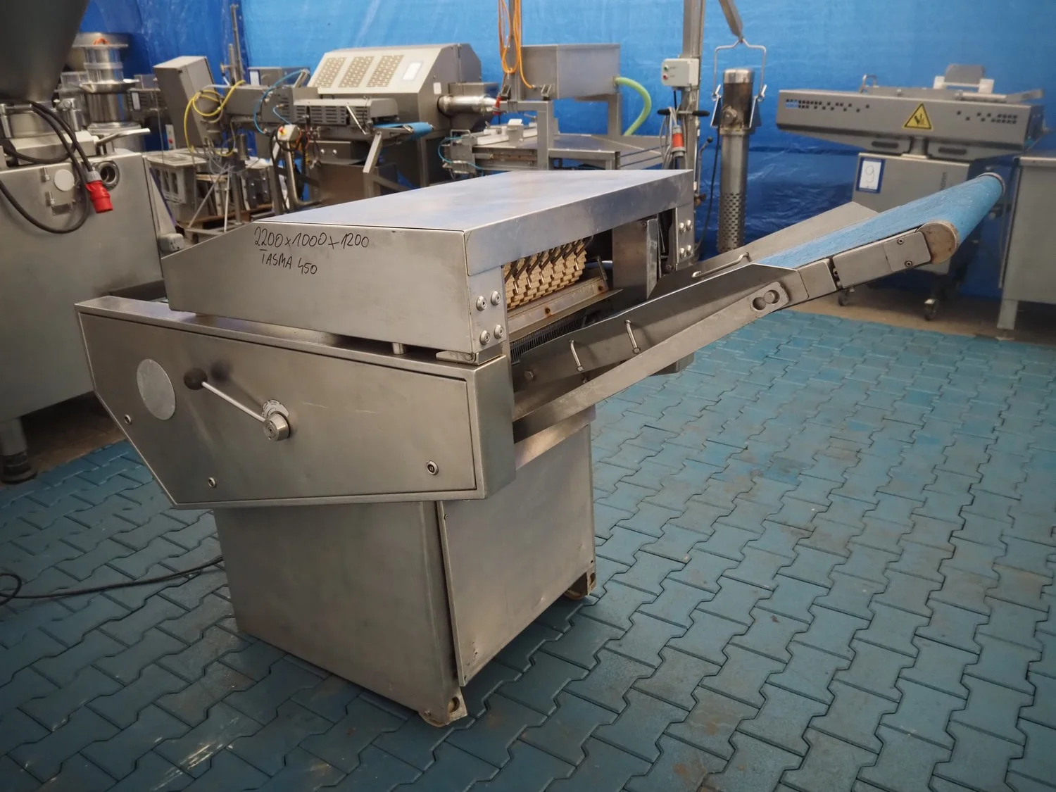 Maja-Maschinenfabrik mobile skinning and derinding machine, type: VBA500A, machine number: 488933438, plastic belt, belt width: 450 mm, working width: 500 mm, total dimensions: 1300 mm x 880 mm x 1200 mm.