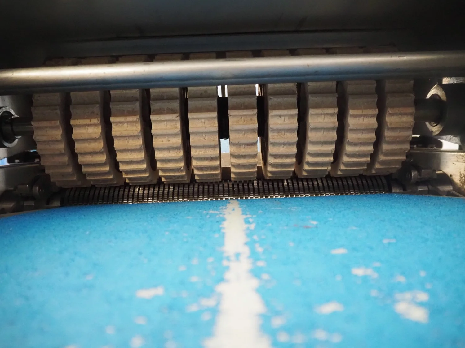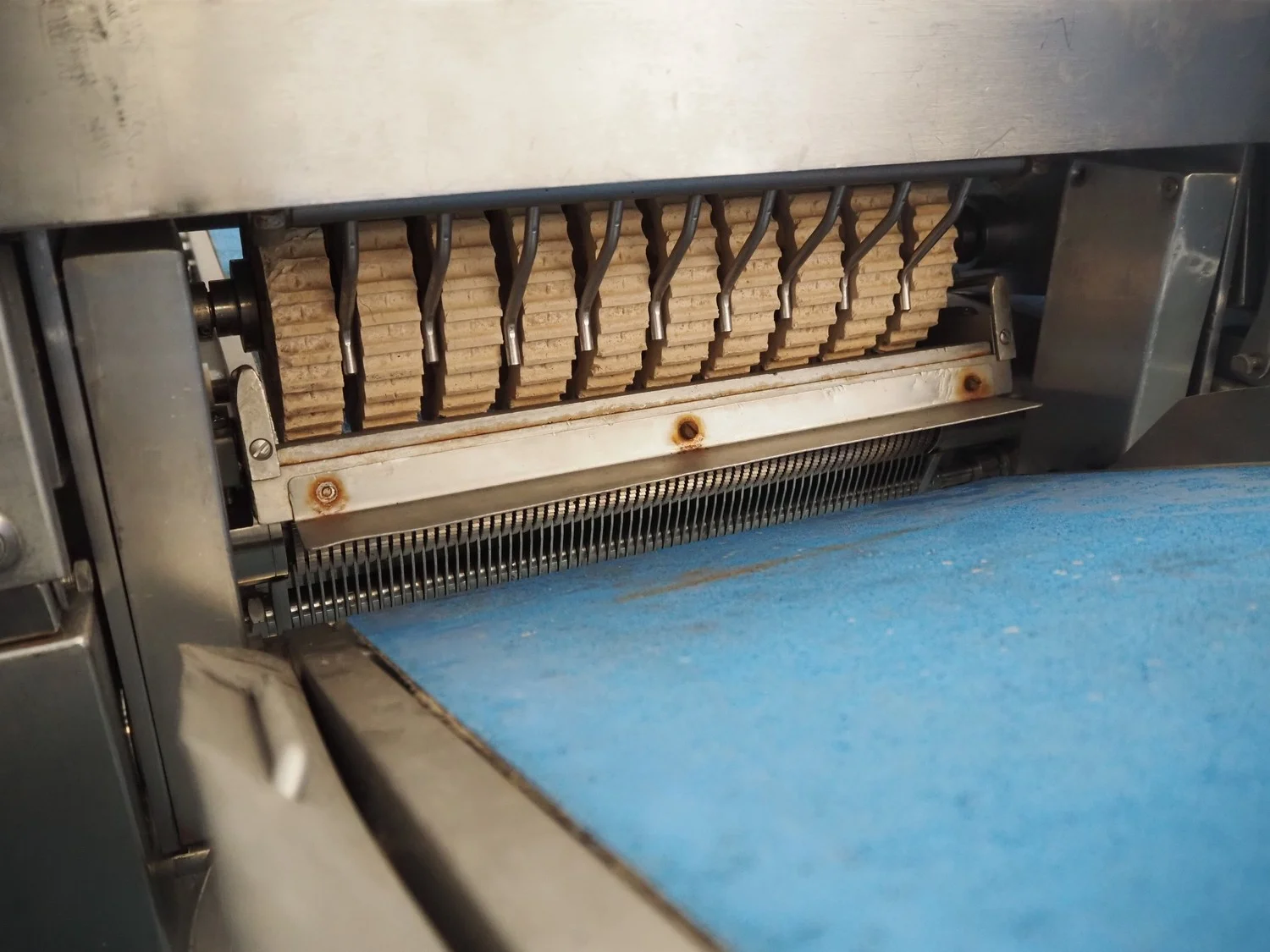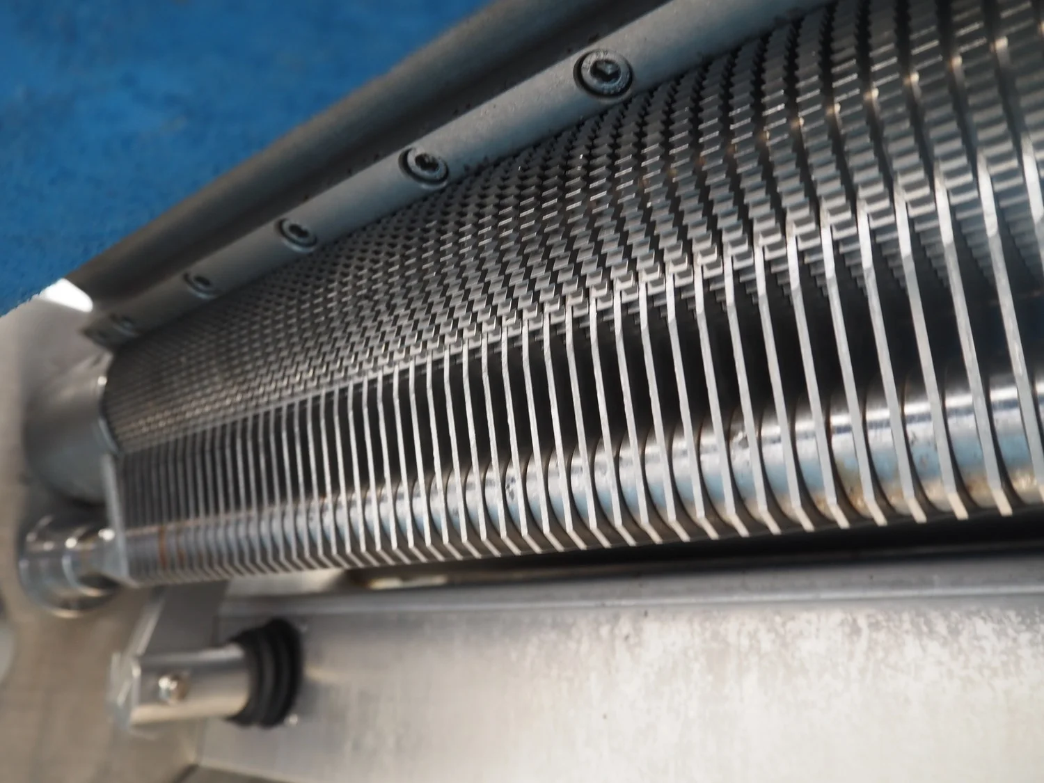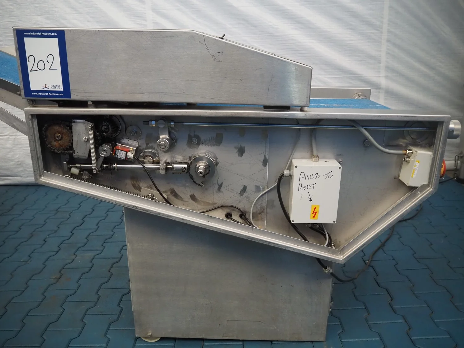 Maja-Maschinenfabrik mobile skinning and derinding machine, type: VBA500A, machine number: 488933438, plastic belt, belt width: 450 mm, working width: 500 mm, total dimensions: 1300 mm x 880 mm x 1200 mm.