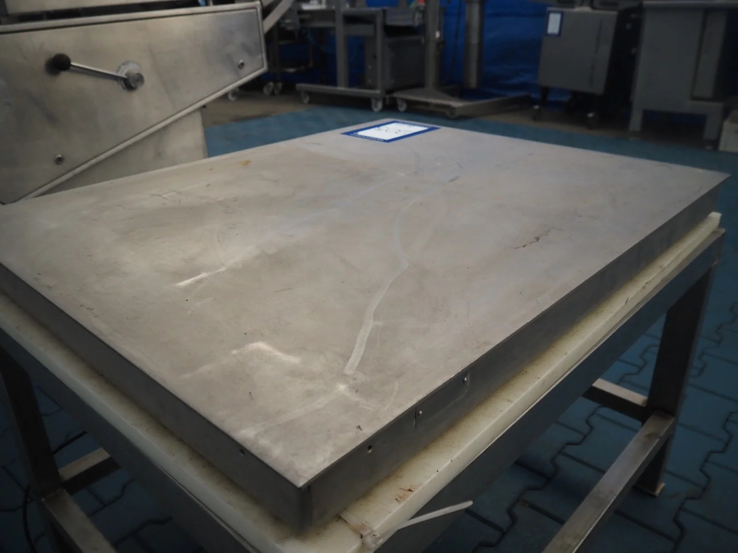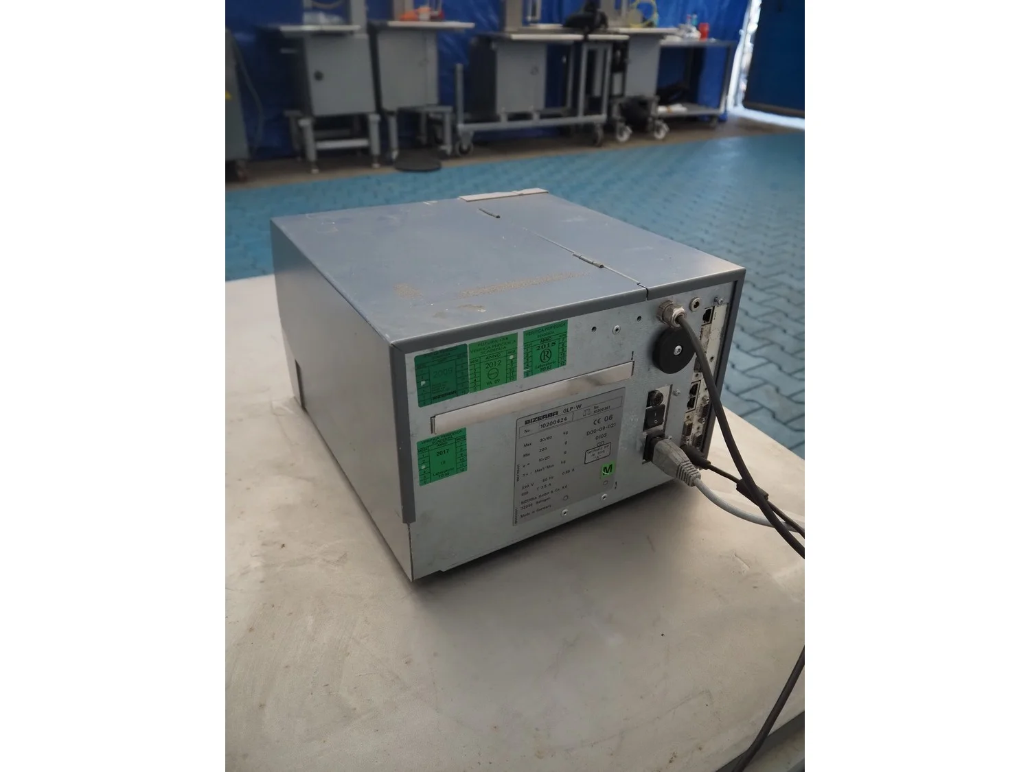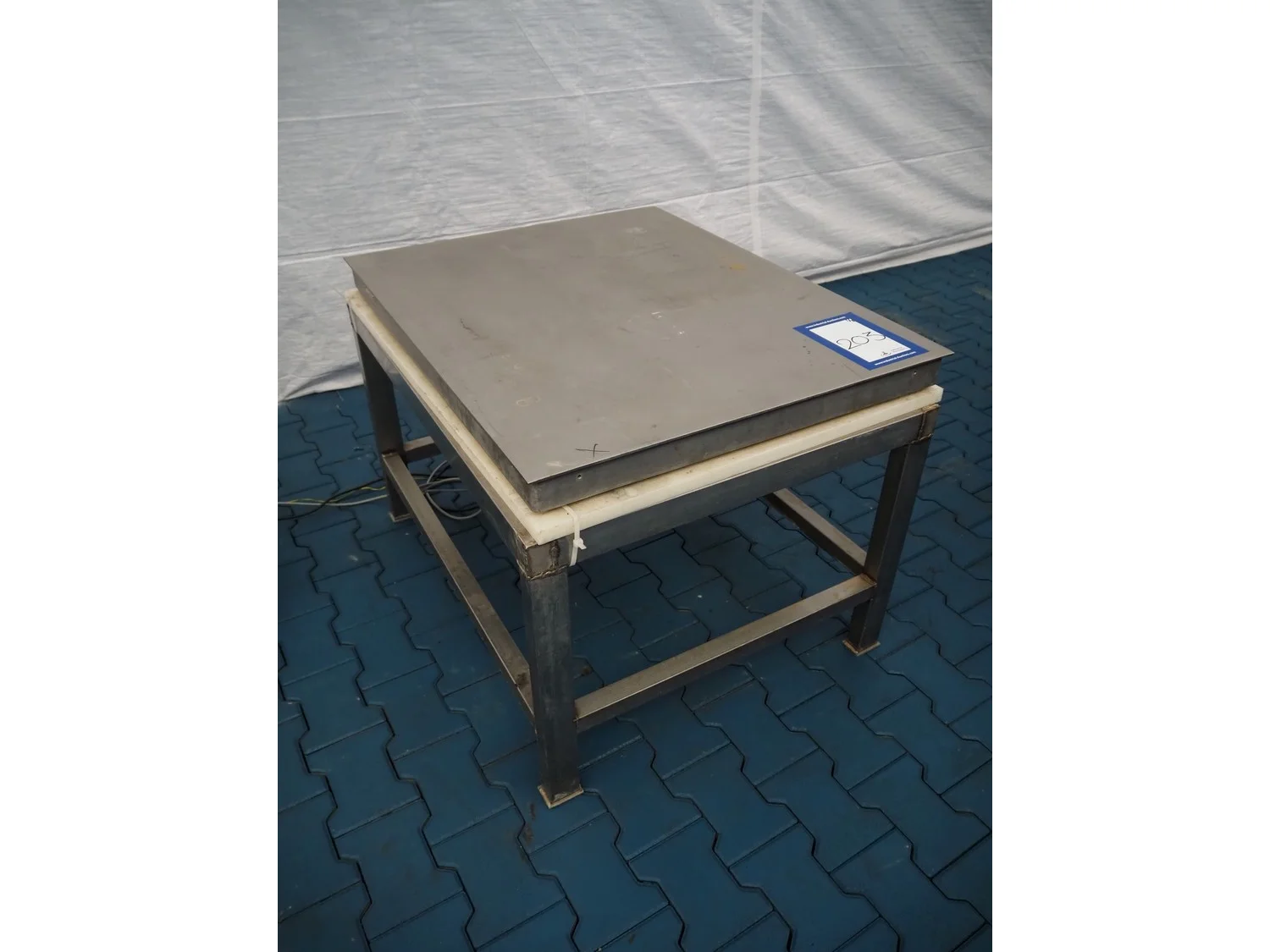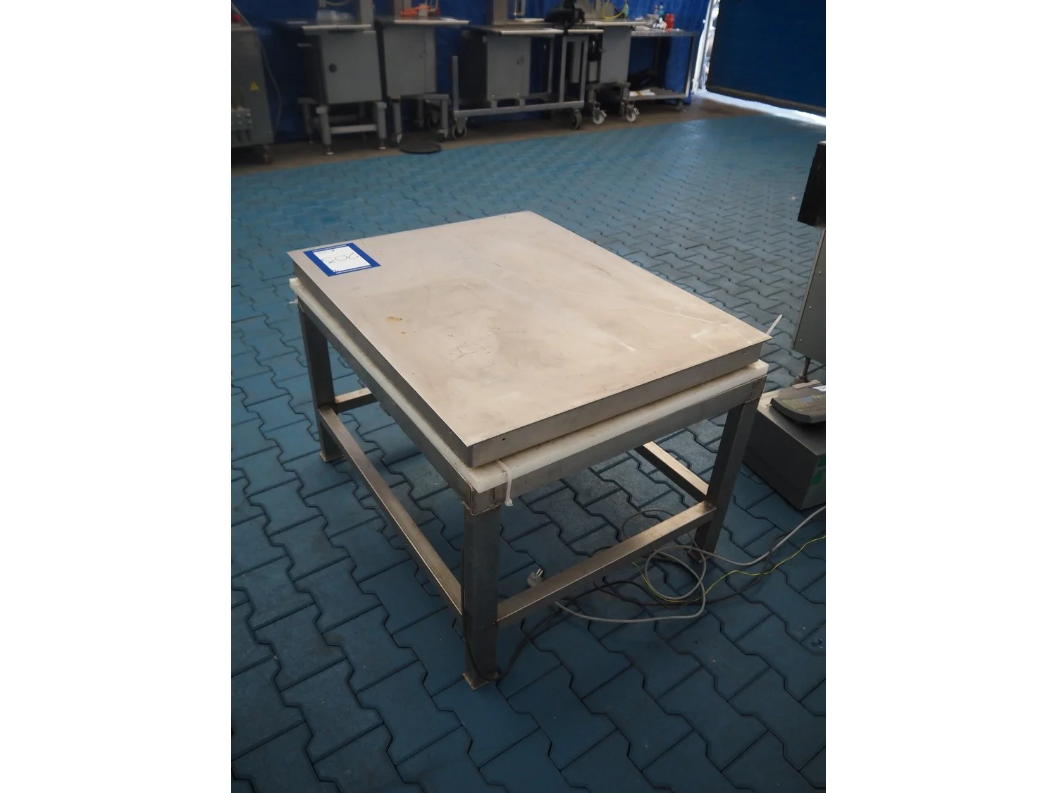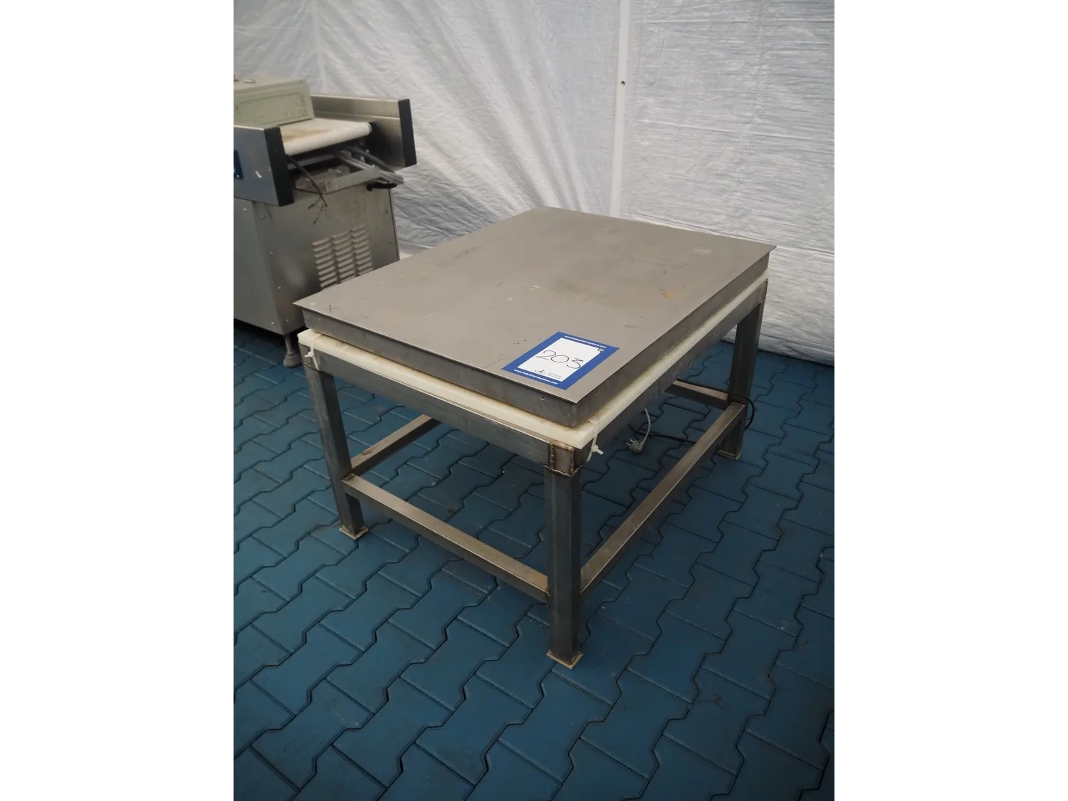 Bizerba weighing scale on s/s frame with label printer and indicator, type weighing scale: 800 VE, number: 10200602, dimensions scale: 1000 mm x 800 mm x 720 mm, type label printer: GLP-W, number: 10200424, 230 V, 50 Hz, 0.65 A, maximum weight: 30/60 kg, minimum weight: 200 gram, e= 10/20 gram, dimensions label printer: 380 mm x 340 mm x 230 mm, dimensions indicator: 280 mm x 200 mm x 90 mm.