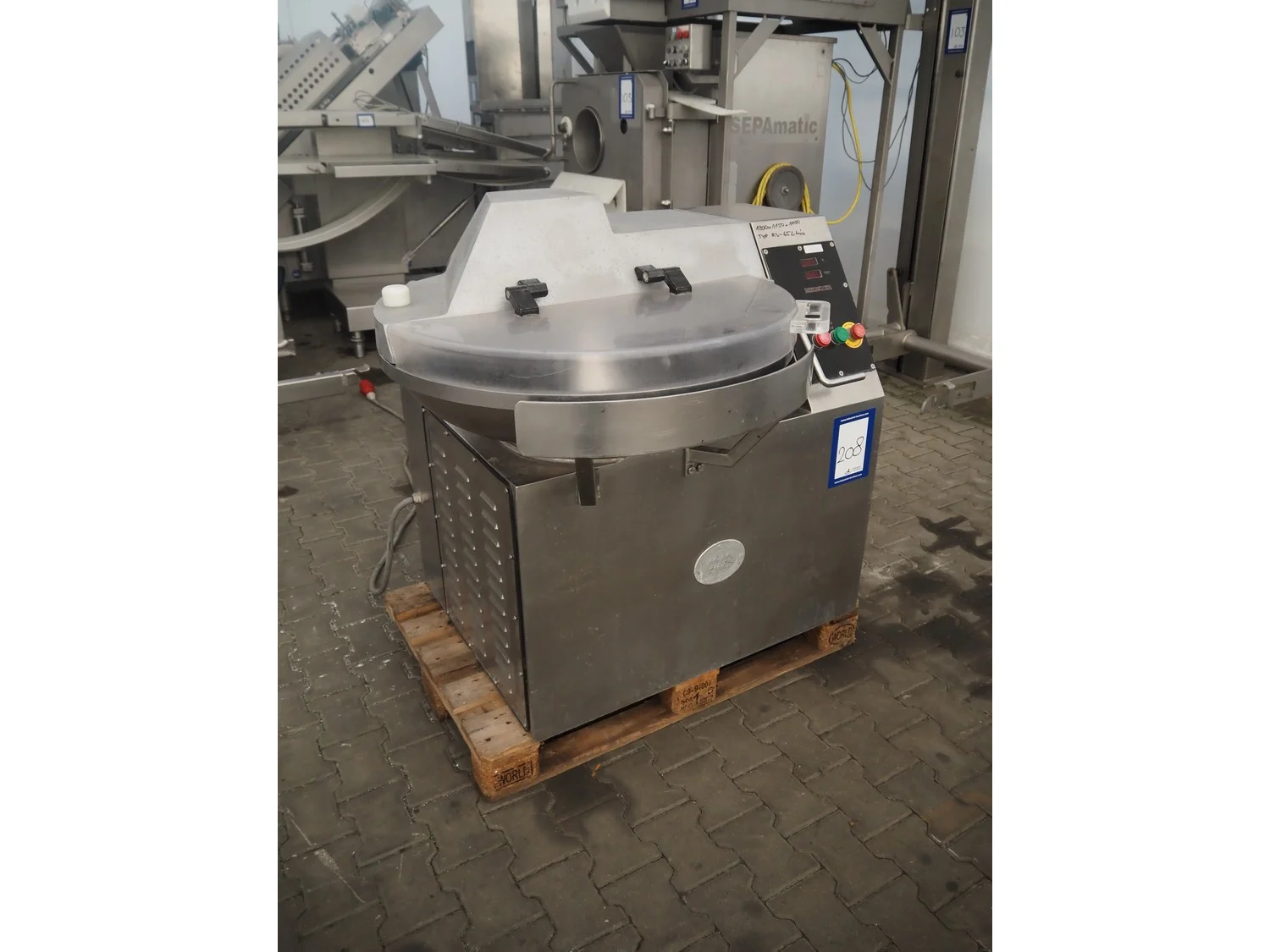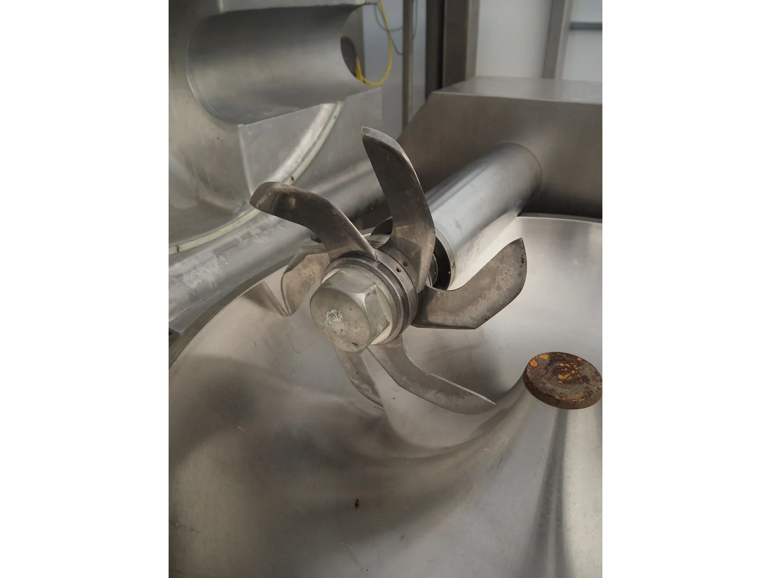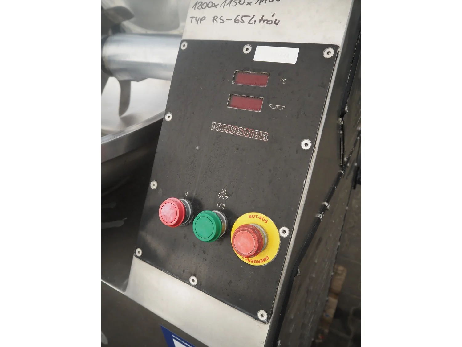 Meissner GmbH bowl cutter, type: RS-65, machine number: 128 8122, 380 V, 50 Hz, 24/35 A, 11/15 kW, s/s bowl, volume: 65 liter, dimensions: 1200 mm x 1100 mm x 1200 mm. Including extra knives.