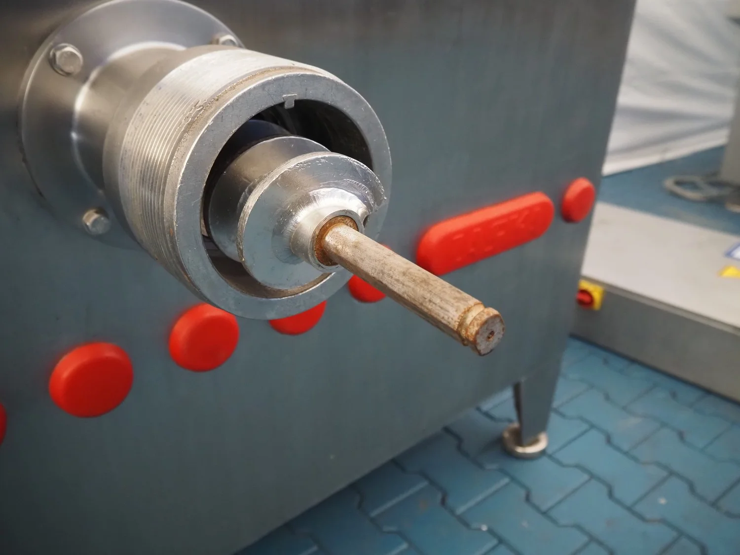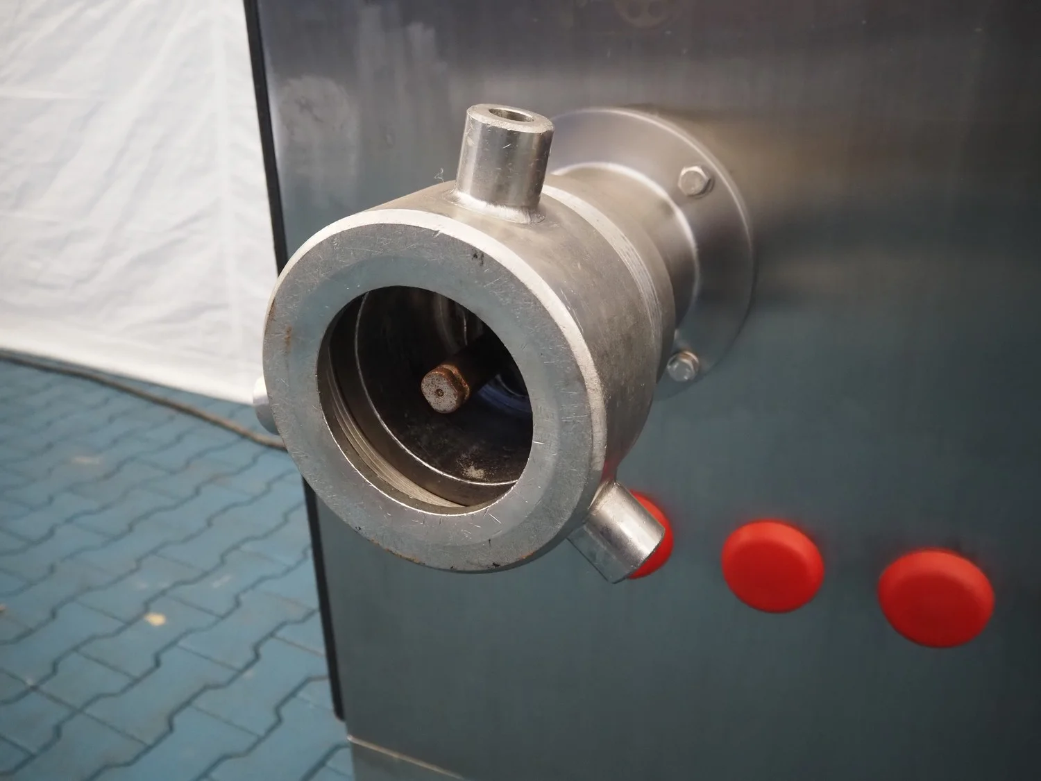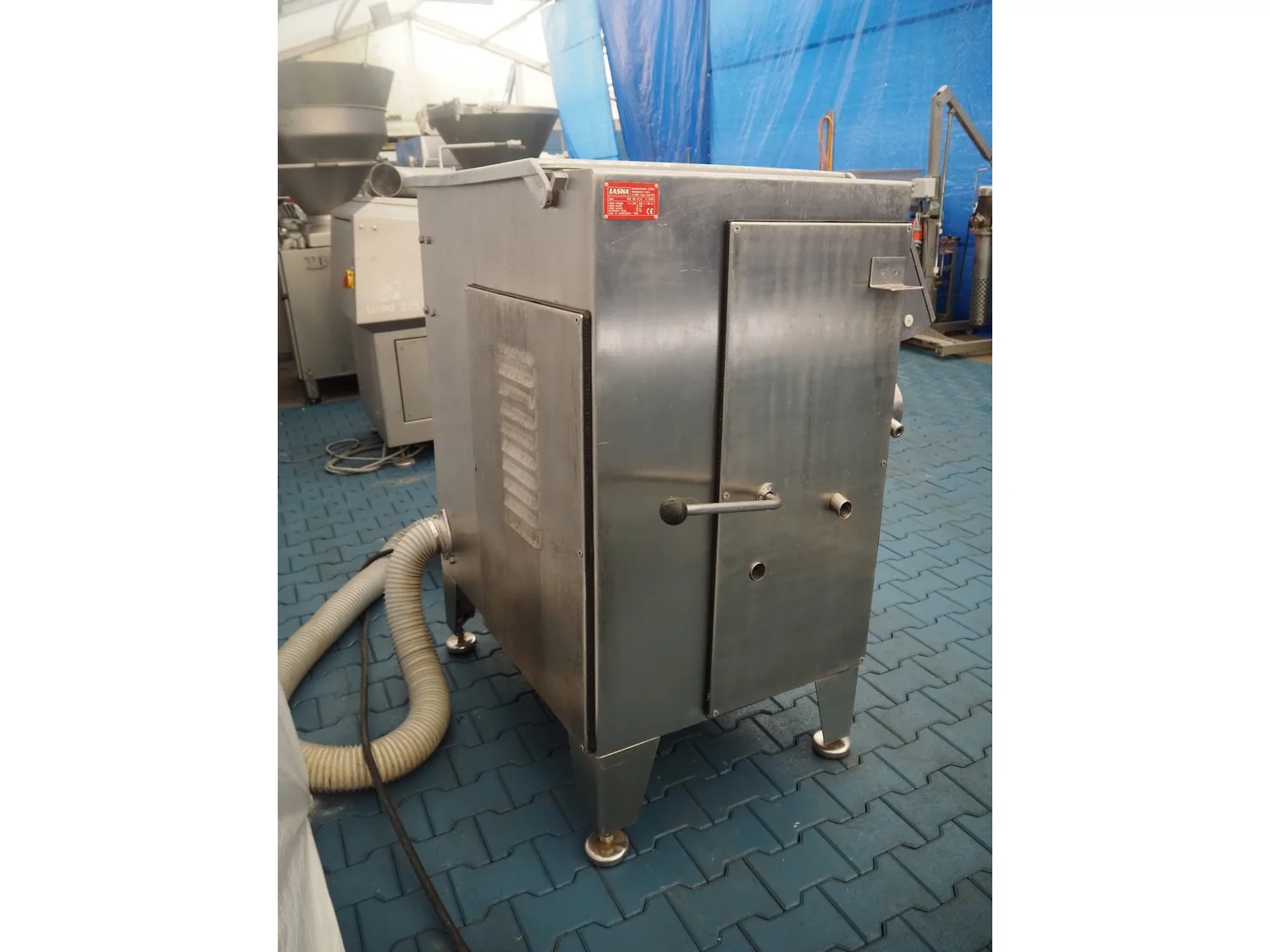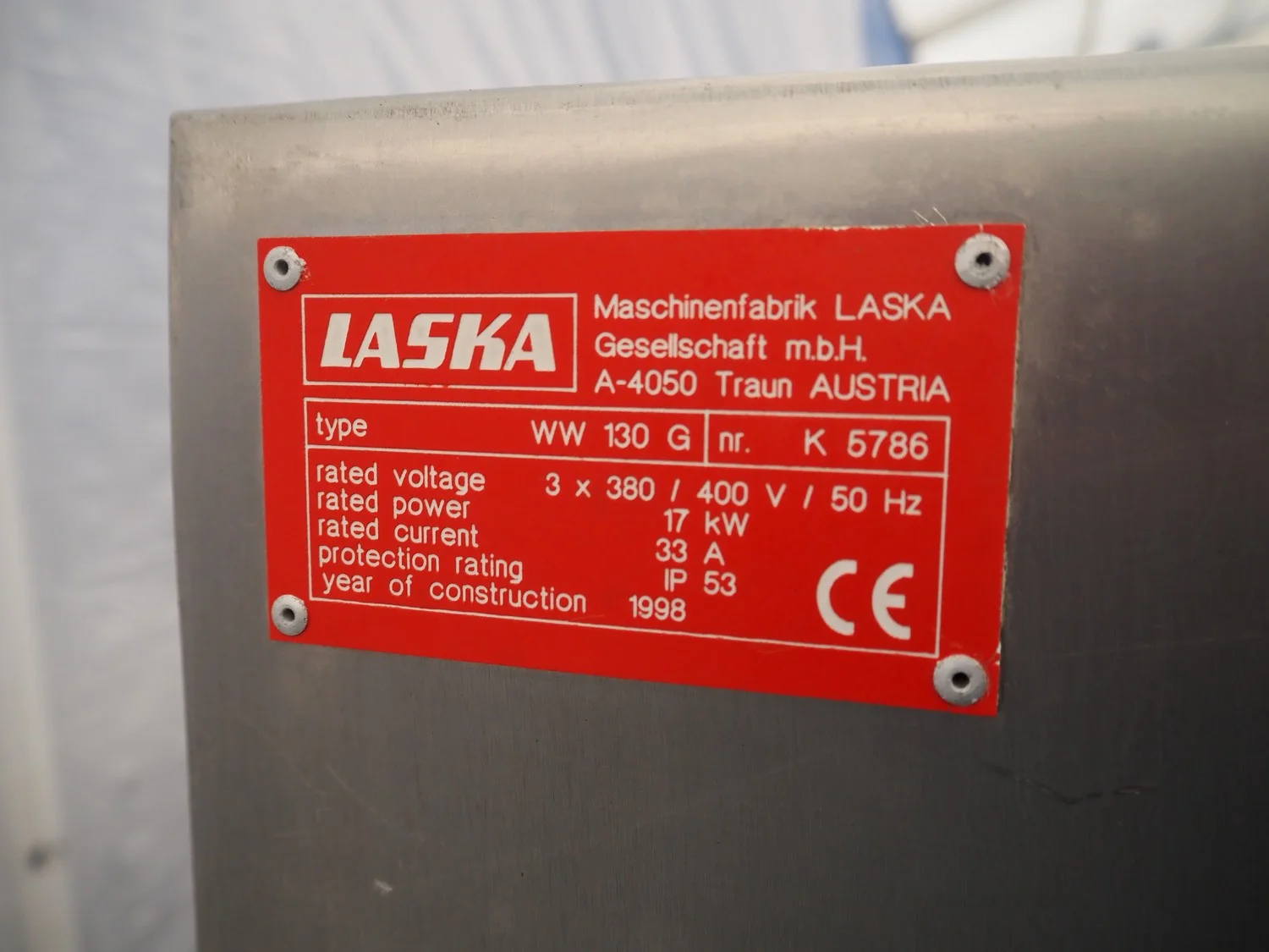 Laska frozen-block grinder, type: WW 130 G, machine number: K 5786, year of construction: 1998, 380/400 V, 3 Ph, 50 Hz, 33 A, 17 kW, plate diameter: 130 mm, total dimensions: 1100 mm x 1250 mm x 1680 mm.