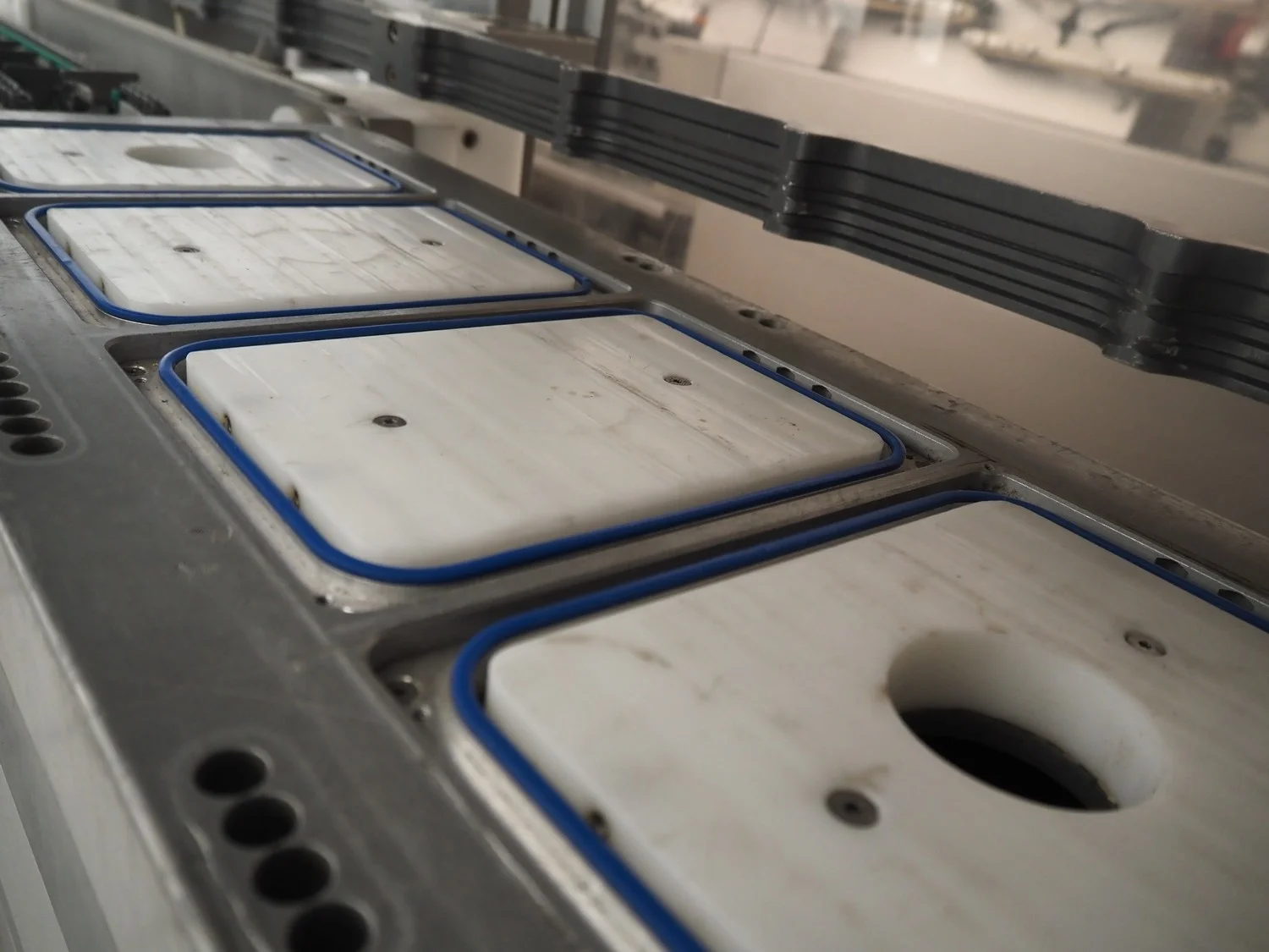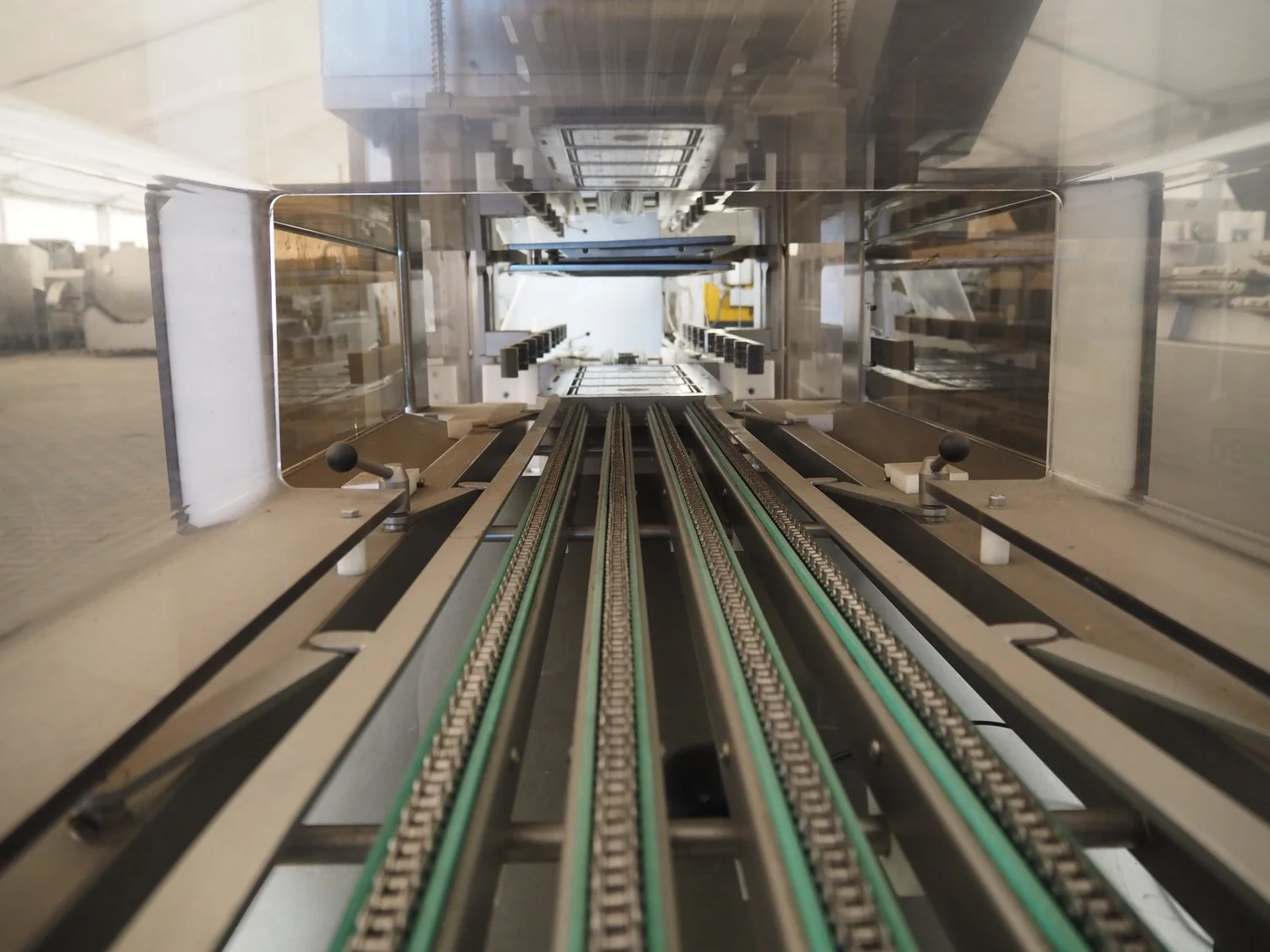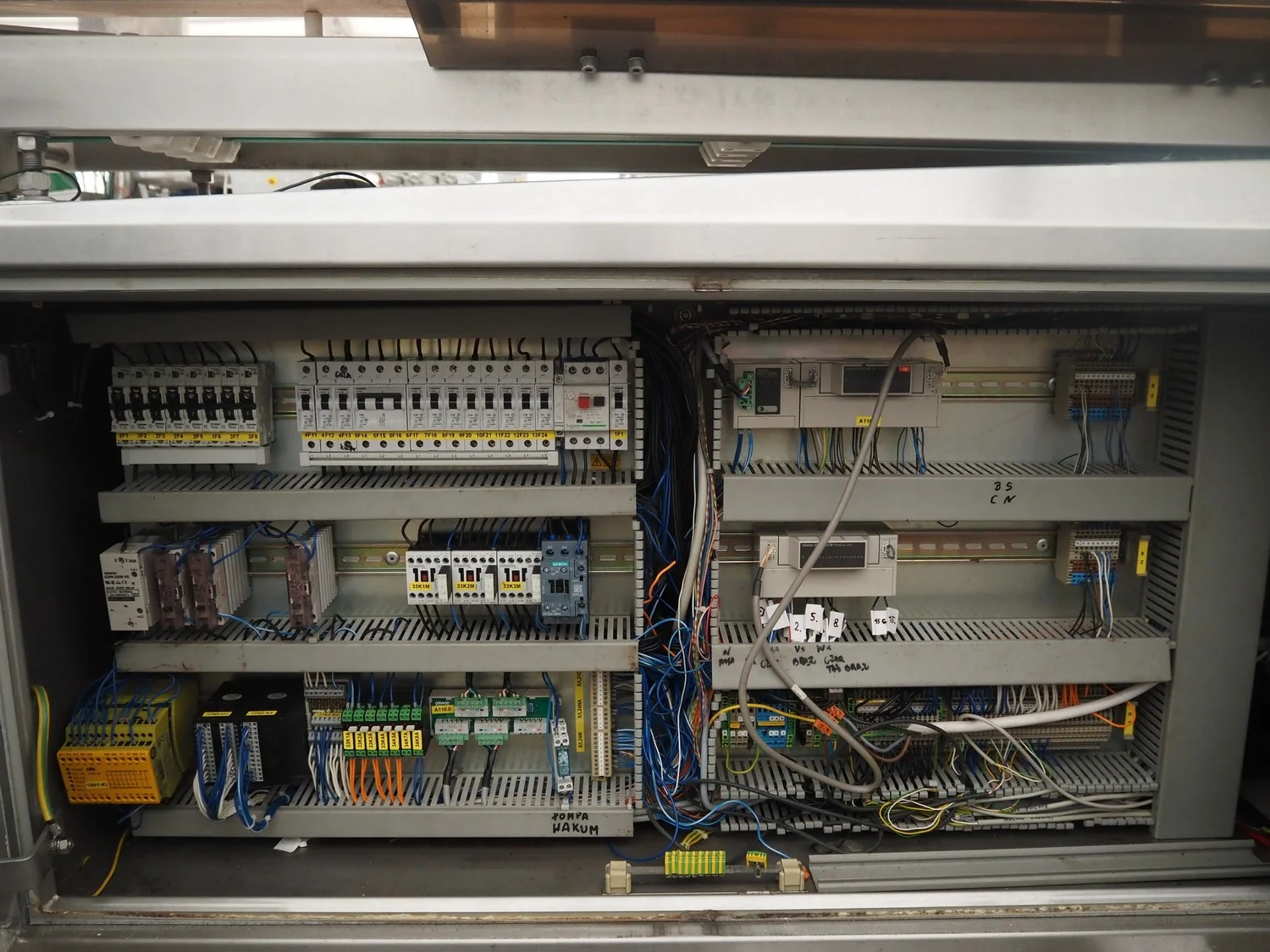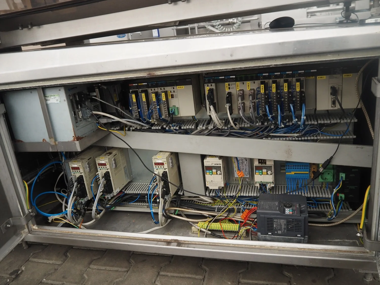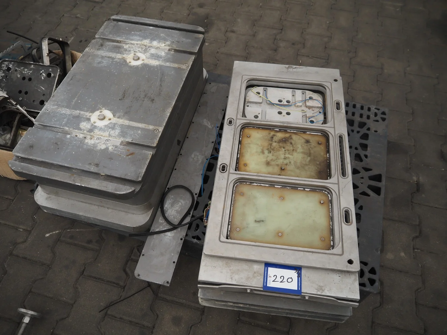 Sealpac traysealer, model: Sealpac 800, serial number: TVG 01 1031 01, year of construction: 2004, 3x400/230 V, 3 Ph, 10 kW, weight: 2000 kg, infeed- and outfeed wire belt, belt width: (2x) 220 mm, dye dimensions: (4x) 220 mm x 160 mm, total dimensions: 8500 mm x 900 mm x 2000 mm. Including pallet with parts and Busch vacuum pump, type: 250-132, serial number: 49167, dimensions dye: (3x) 288 mm x 220 mm.
