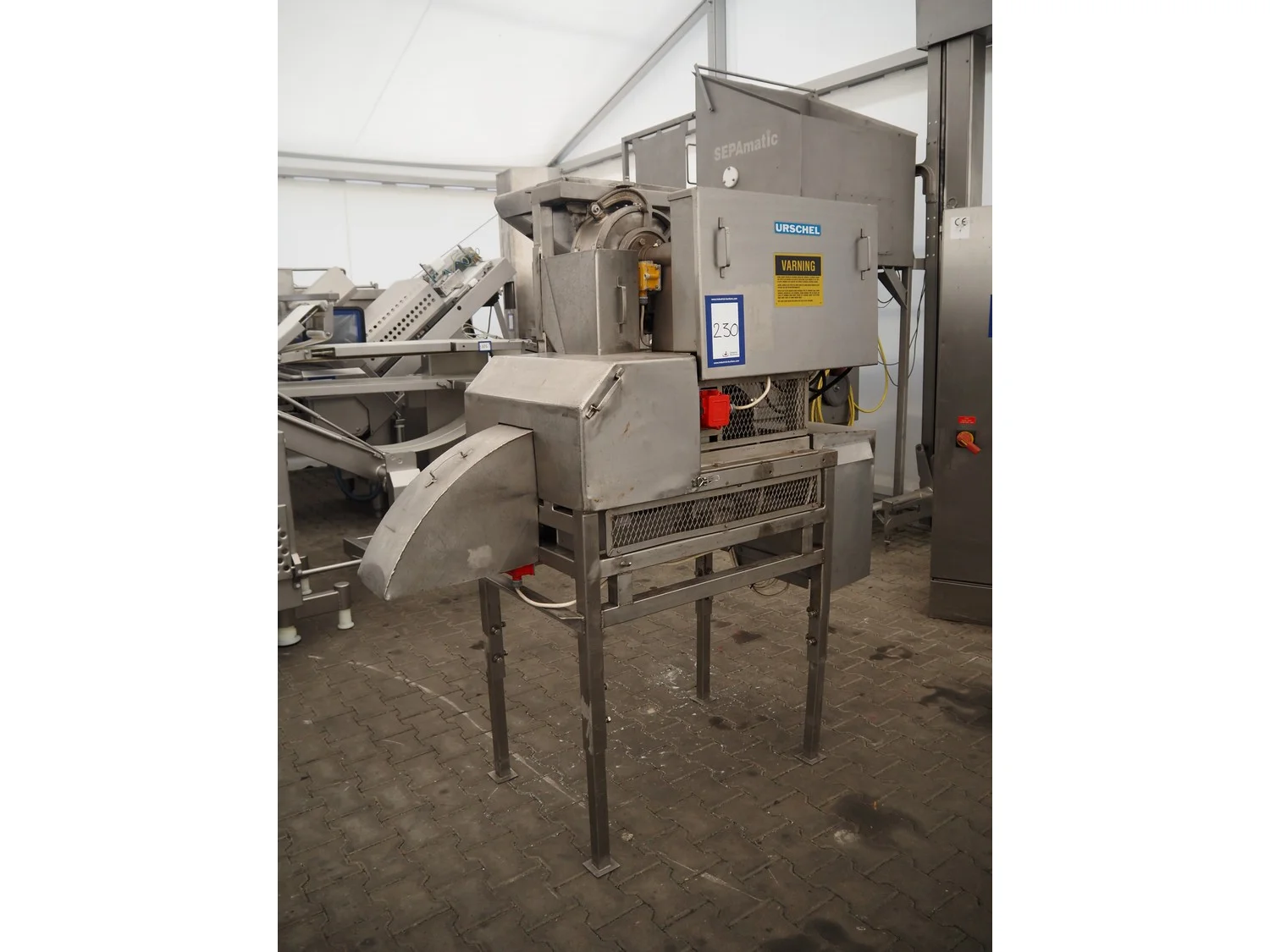 Urschel Laboratories Inc. dicer/strip cutter, working width: 170 mm, distance between knifes: 57 mm, dimensions: 1500 mm x 1200 mm x 2200 mm.