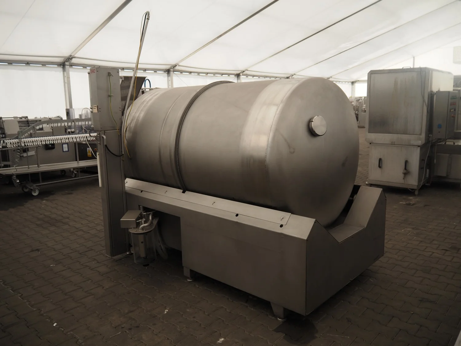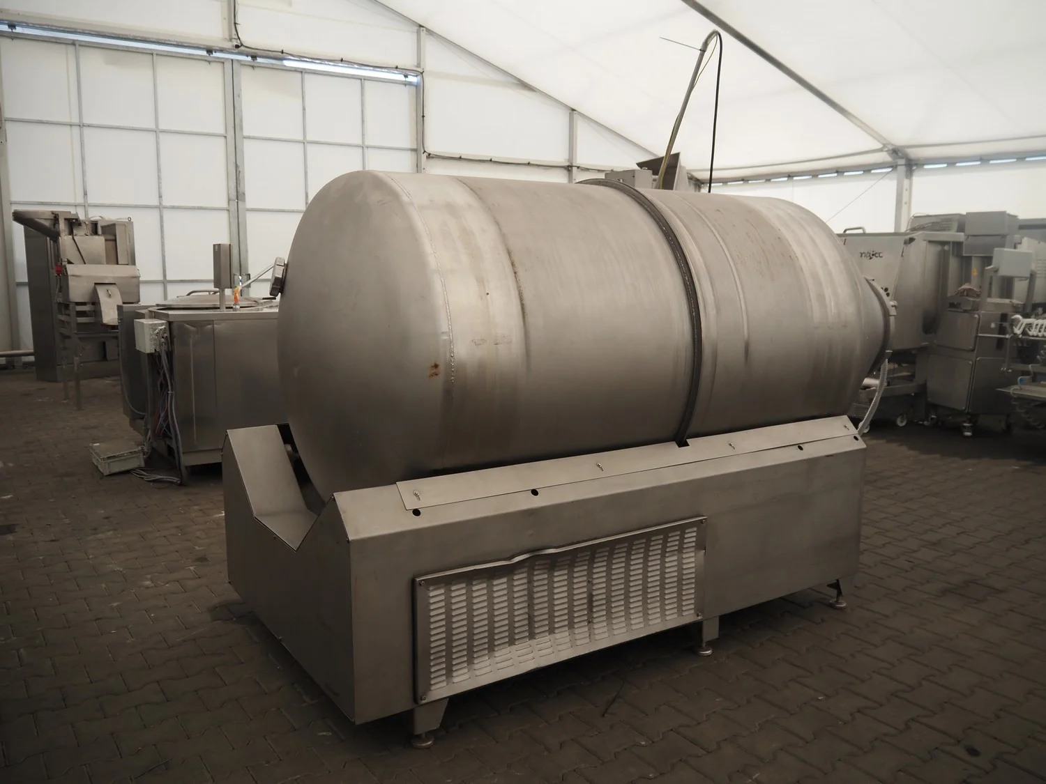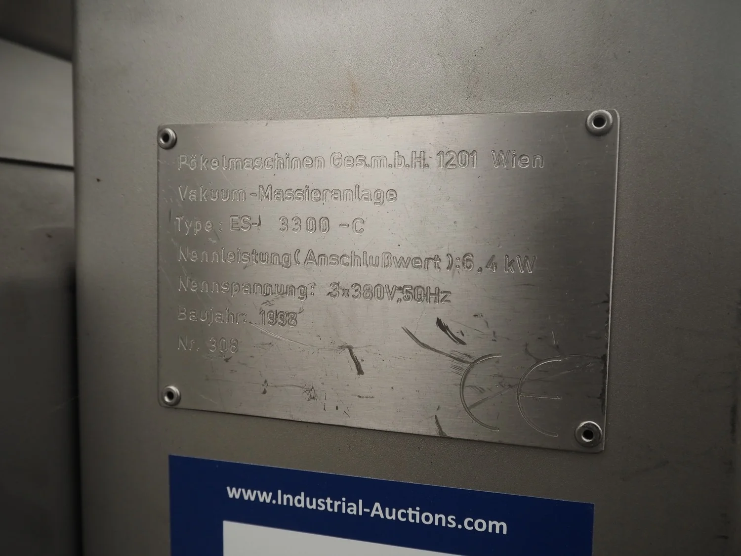 Inject Star / Pökelmaschinen Ges.m.b.H. vacuum tumbler, type: ES-3300-C, number: 308, year of construction: 1998, 380 V, 3 Ph, 50 Hz, 6.4 kW, dimensions: 3200 mm x 1800 mm x 2700 mm.