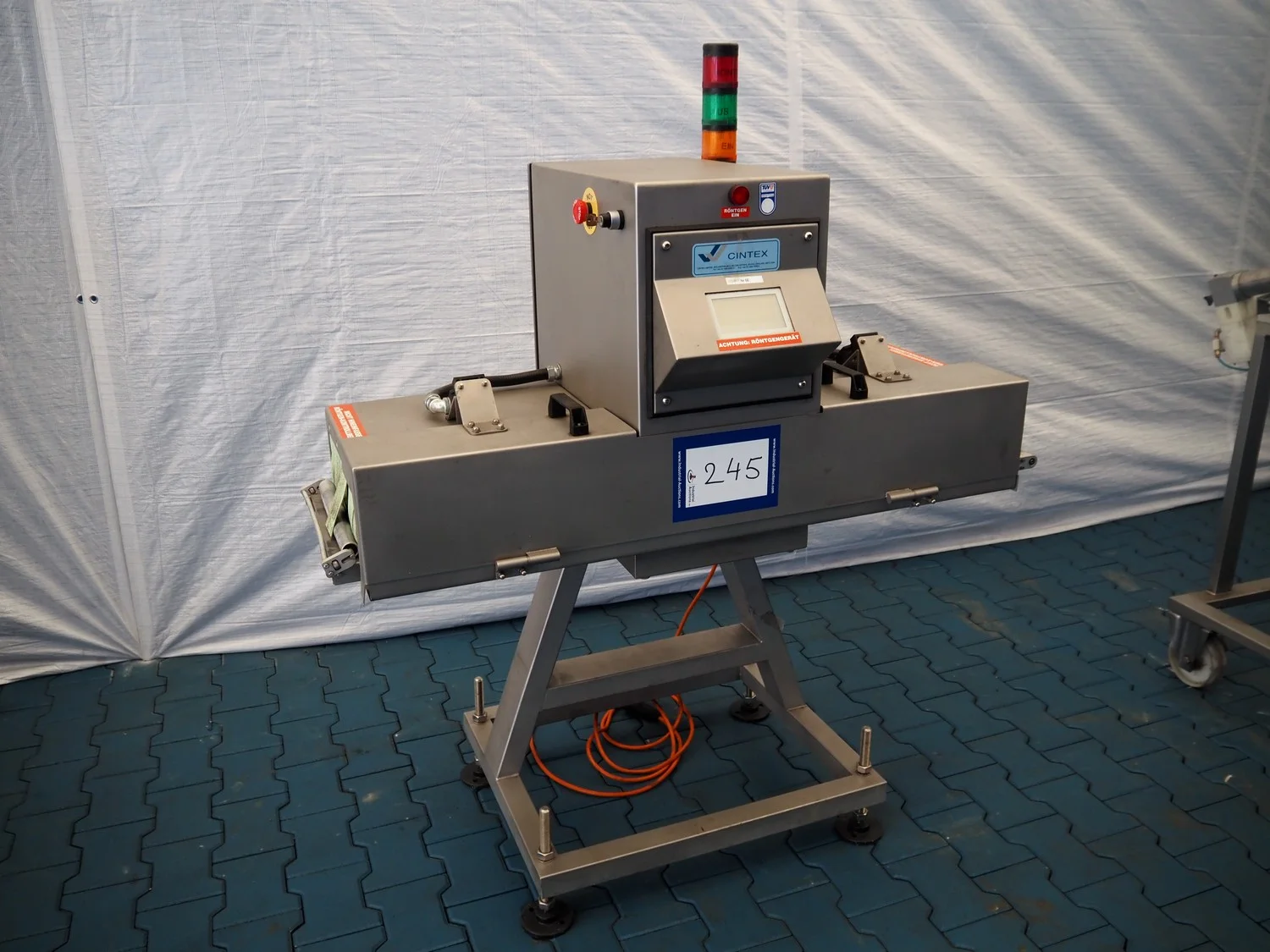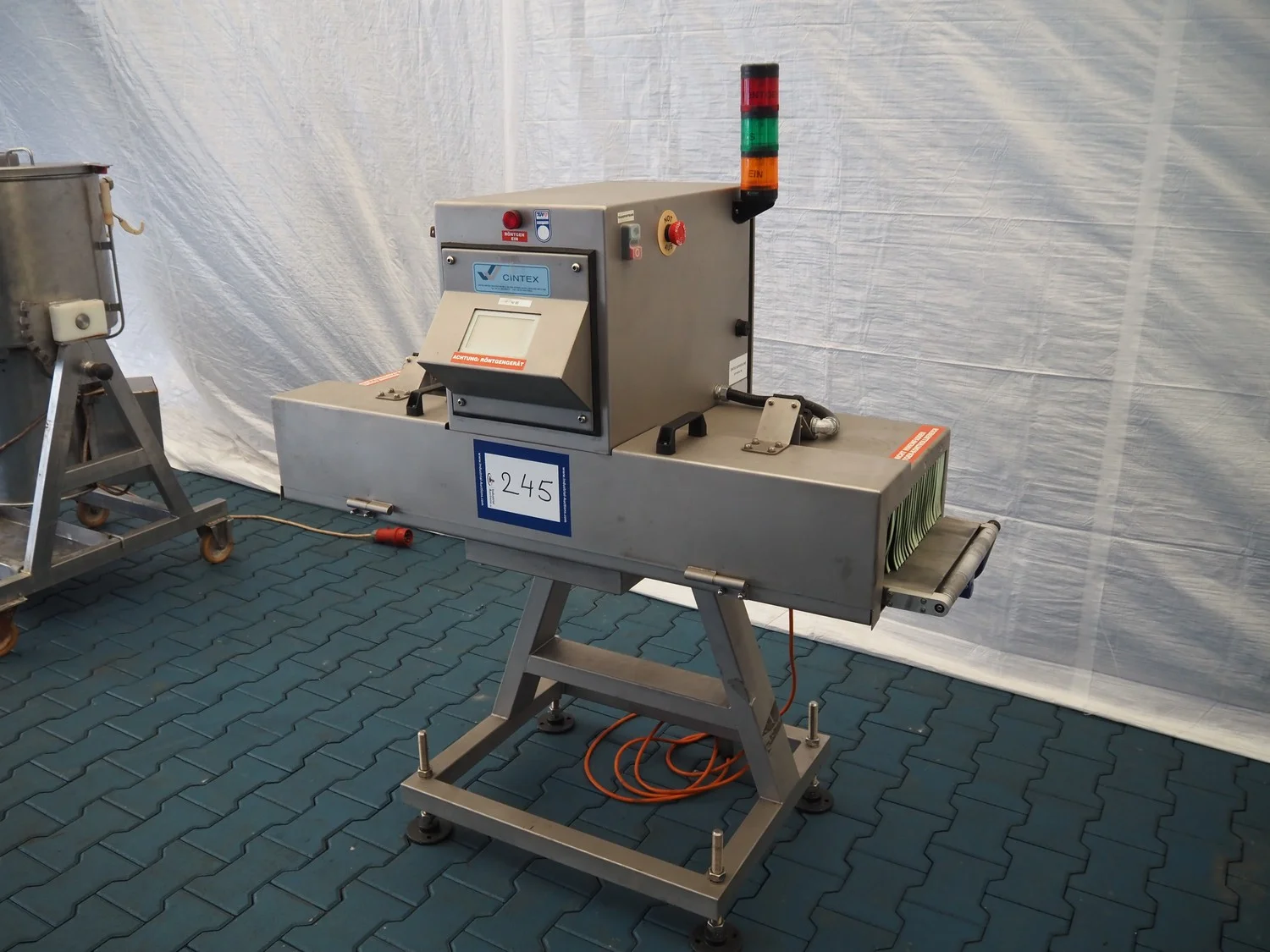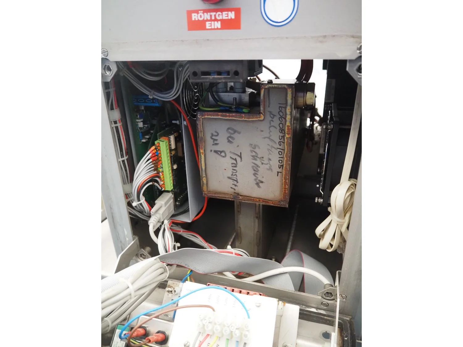 Cintex x-ray scanner, clearance: 300 mm x 110 mm, total dimensions: 1350 mm x 700 mm x 1560 mm. Incomplete, missing belt.