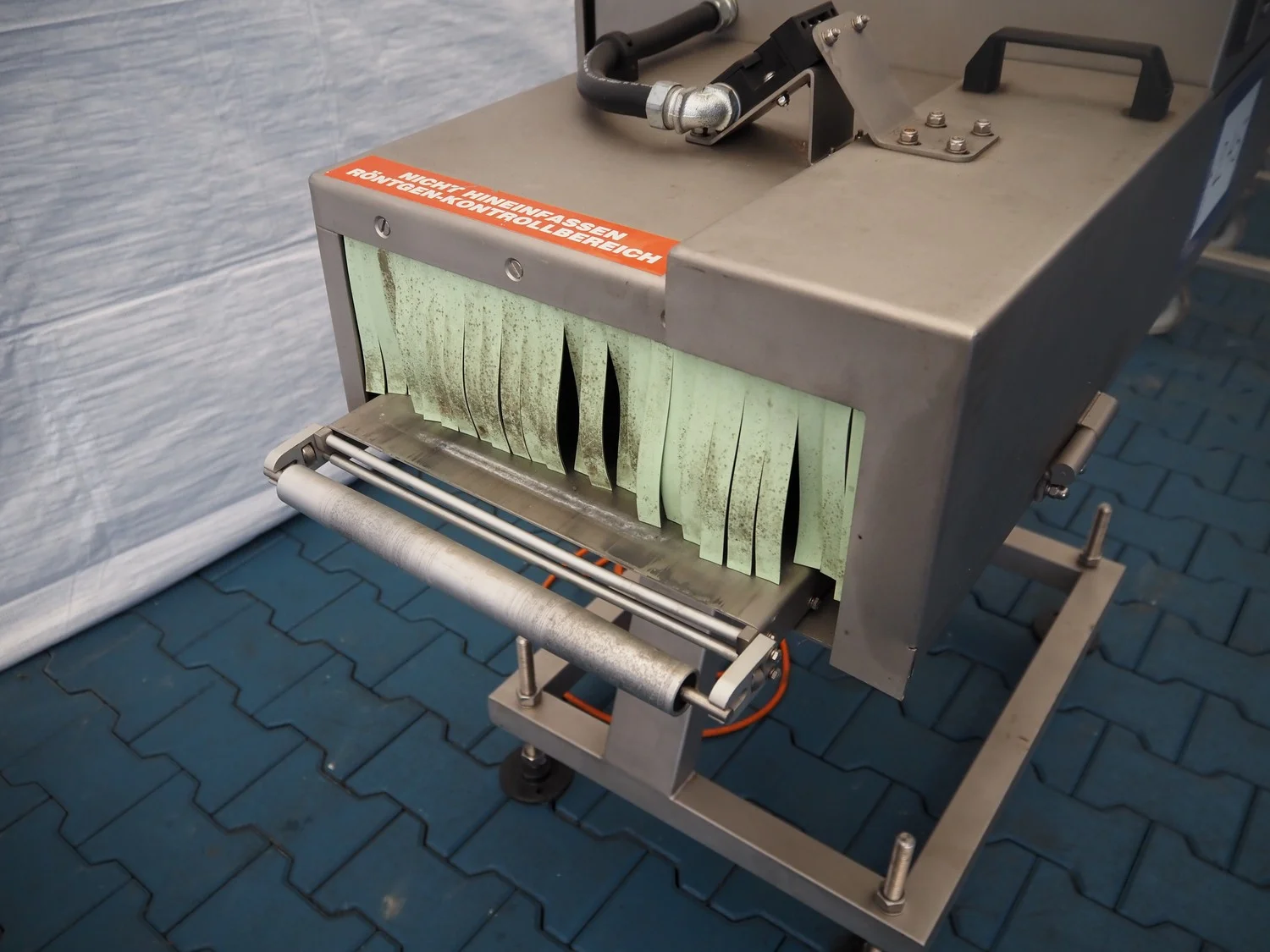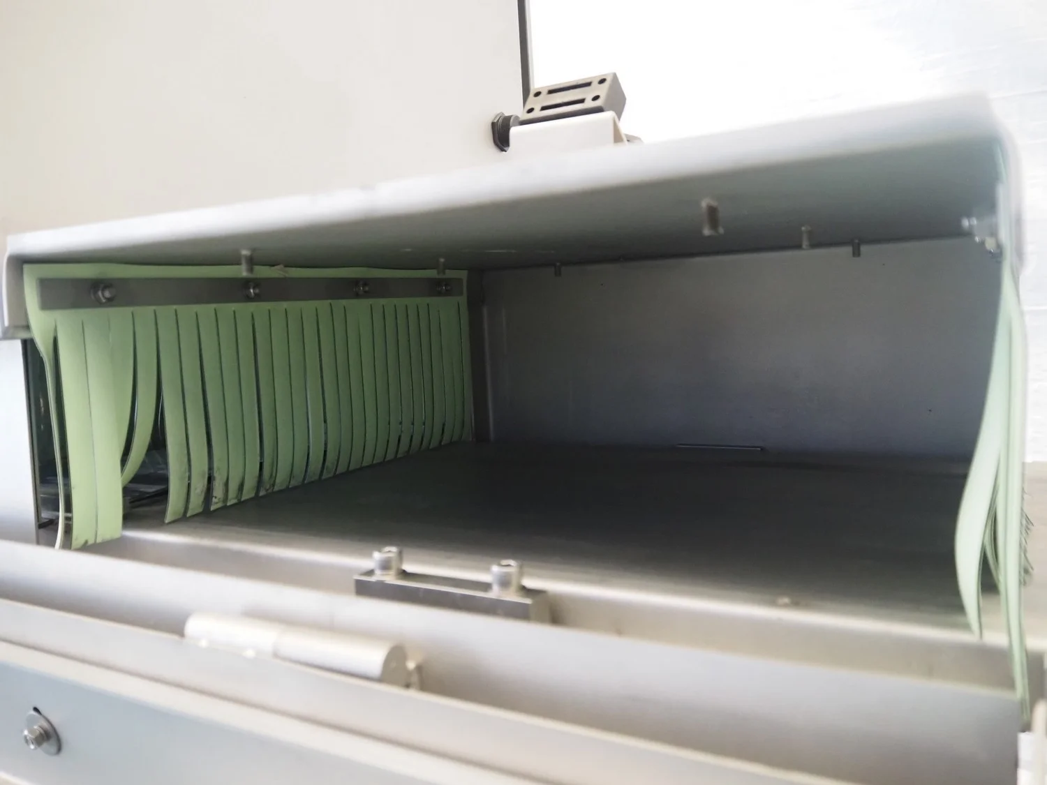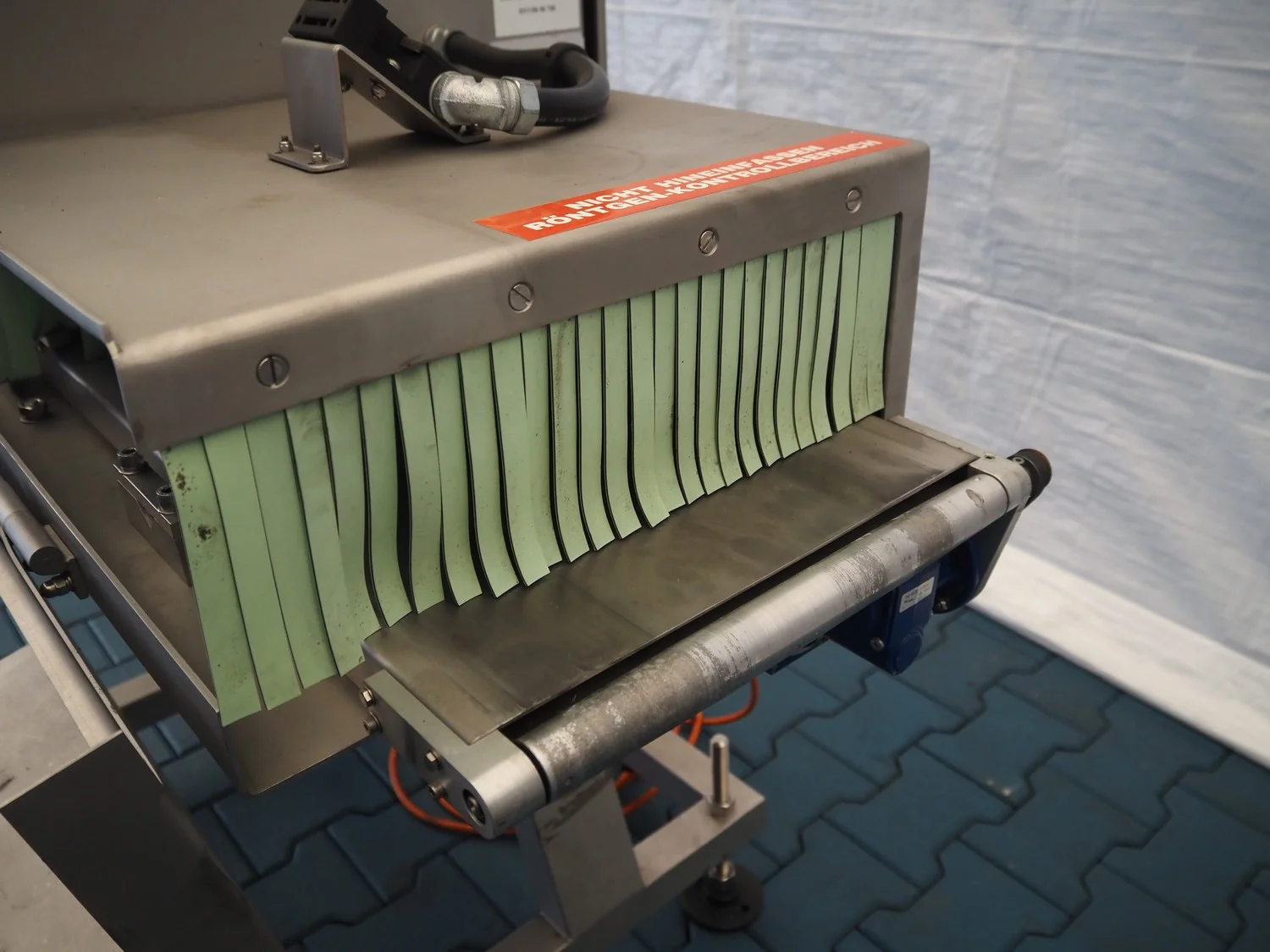 Cintex x-ray scanner, clearance: 300 mm x 110 mm, total dimensions: 1350 mm x 700 mm x 1560 mm. Incomplete, missing belt.