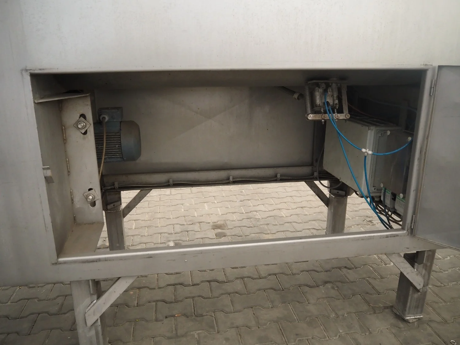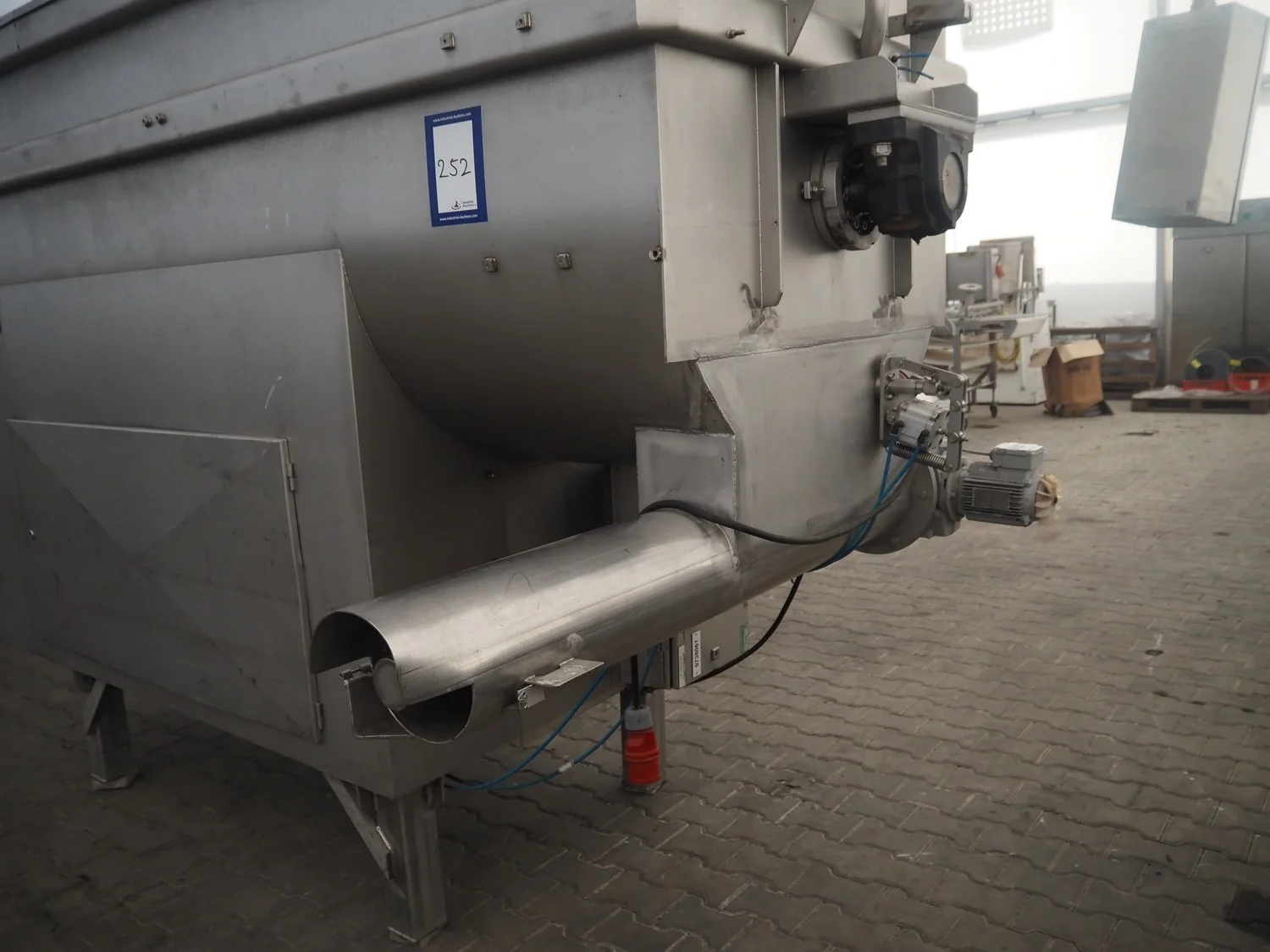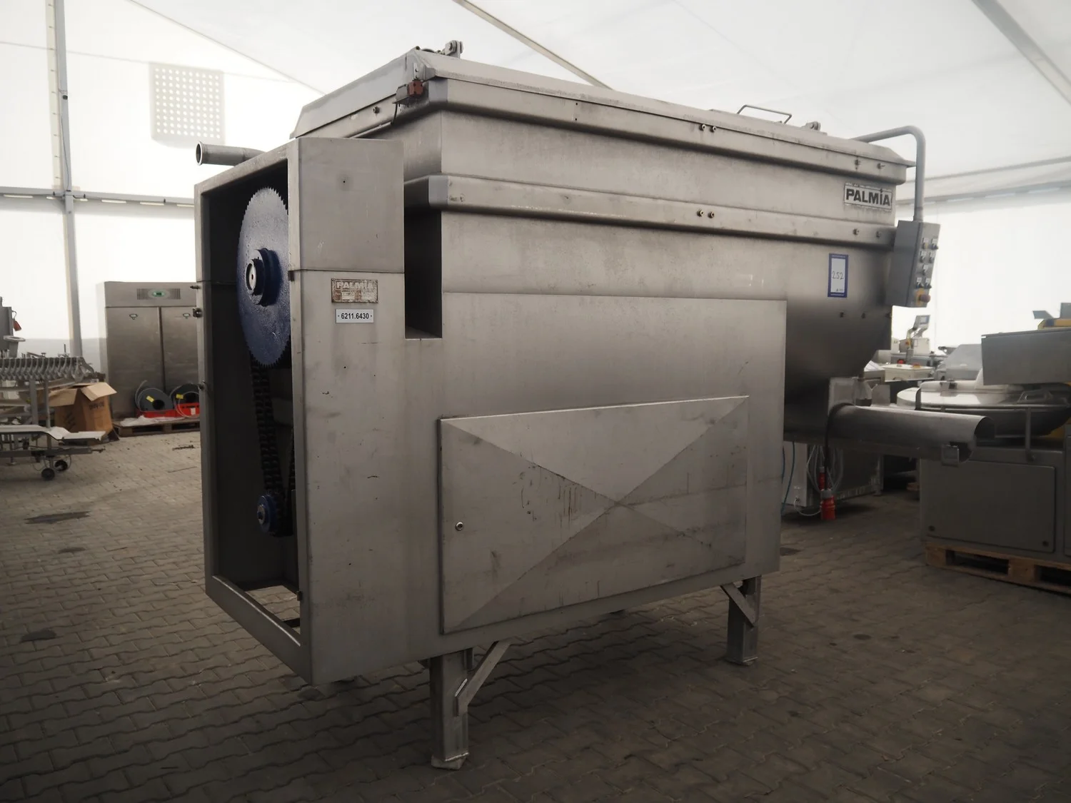 Palmia ribbon mixer with cooling function, type: BE 3000.7, number: 4684, inside dimensions: 2000 mm x 850 mm x 1000 mm, capacity: 3000 liter, total dimensions: 3300 mm x 1000 mm x 1730 mm.
