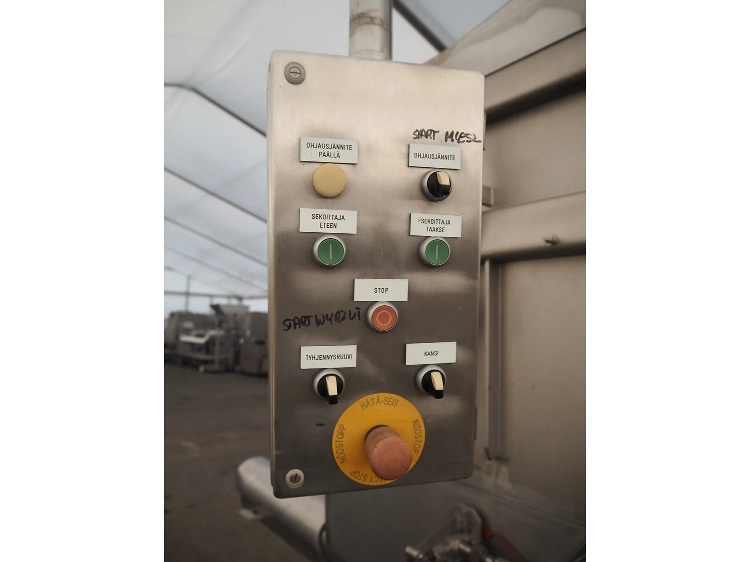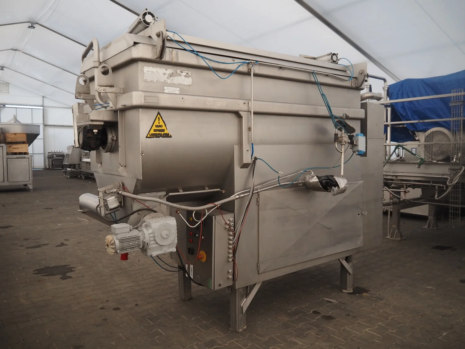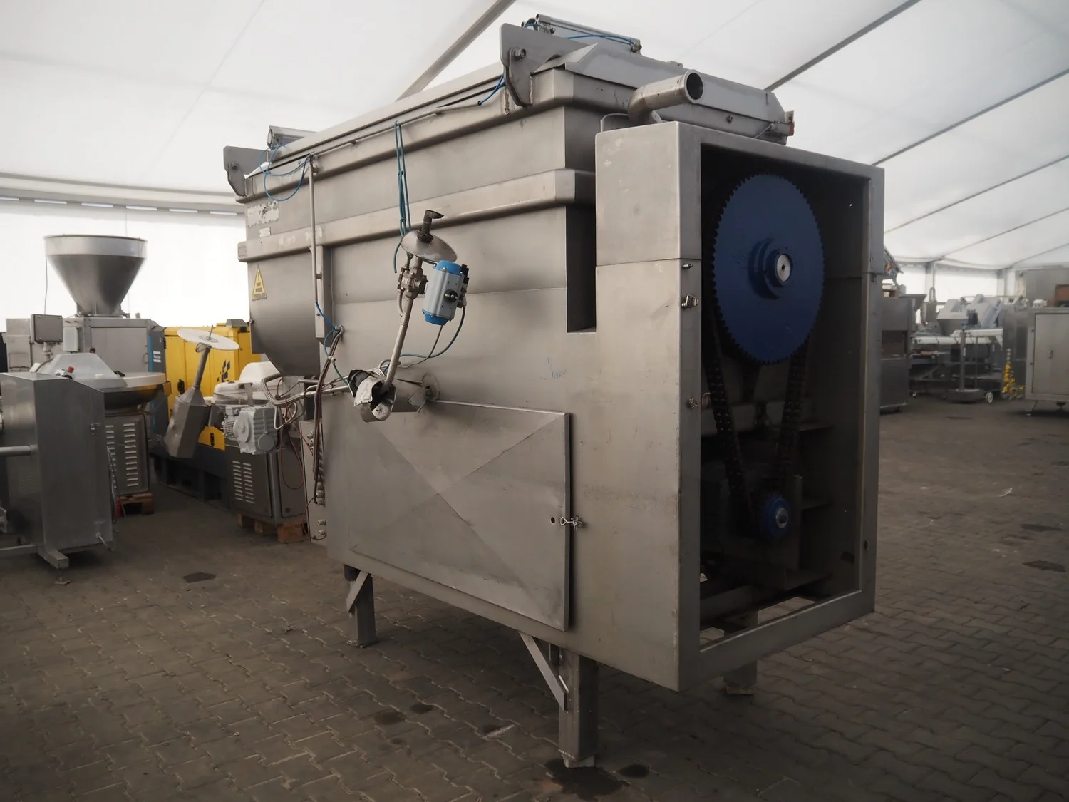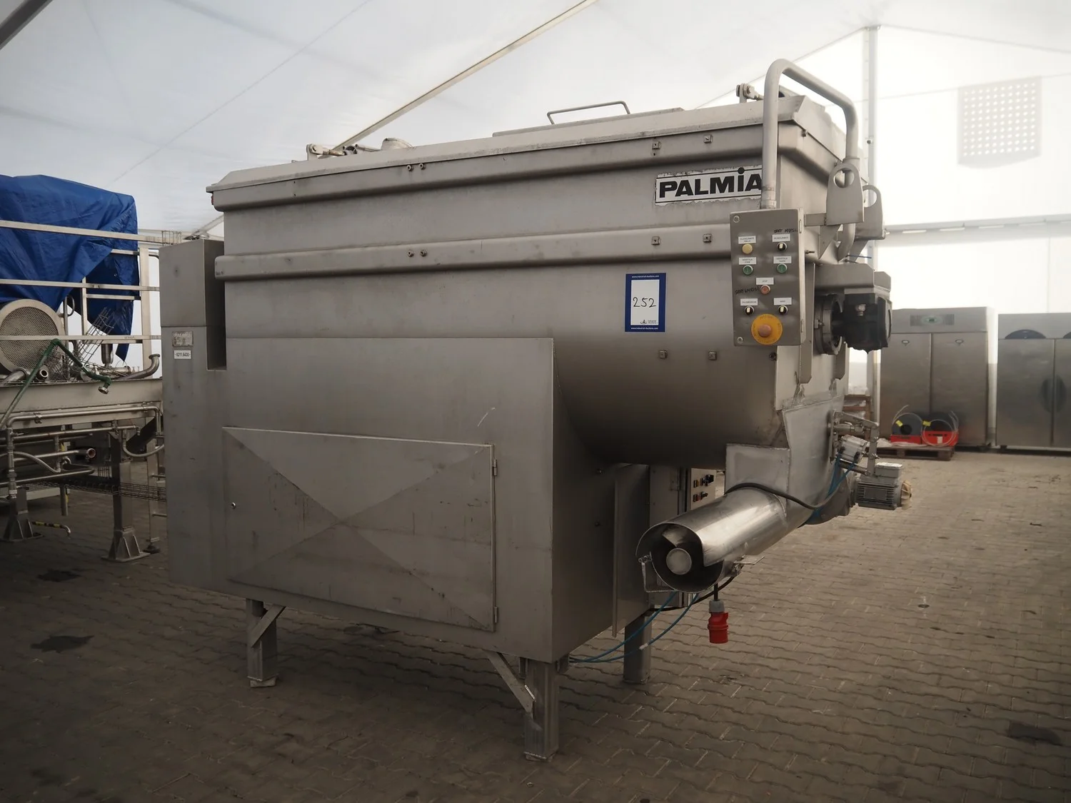 Palmia ribbon mixer with cooling function, type: BE 3000.7, number: 4684, inside dimensions: 2000 mm x 850 mm x 1000 mm, capacity: 3000 liter, total dimensions: 3300 mm x 1000 mm x 1730 mm.