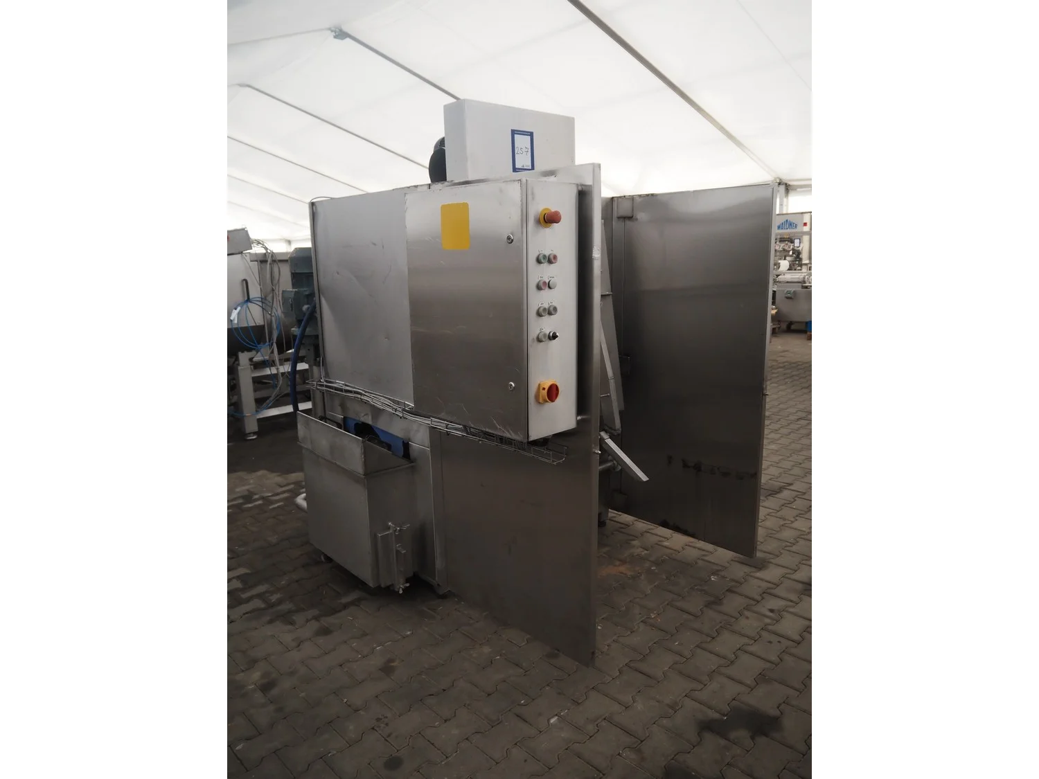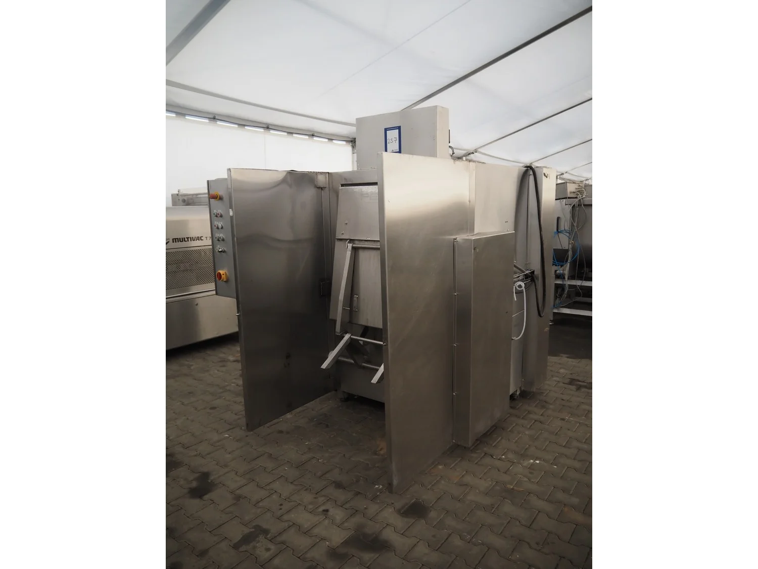 MTV Förder washing machine for 200 liter meat bins, type: PSB29.1MRD, serial number: 0238123829, year of construction: 2002, dimensions: 2900 mm x 1700 mm x 2400 mm.