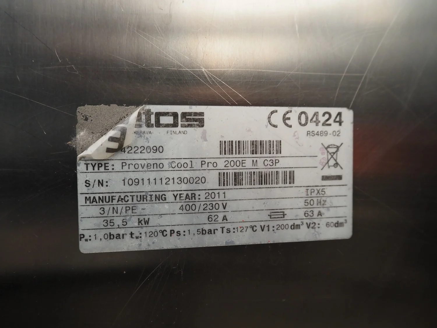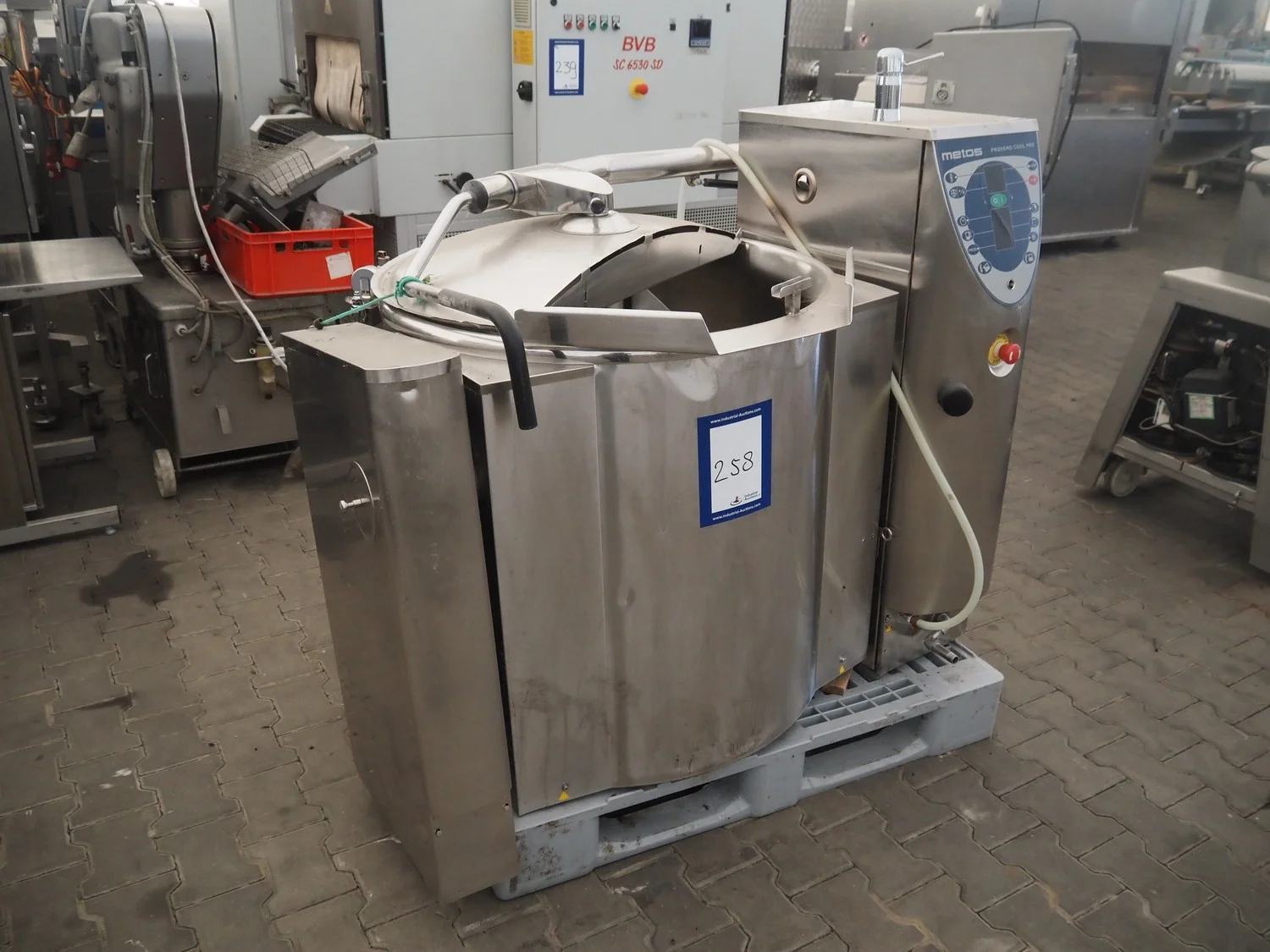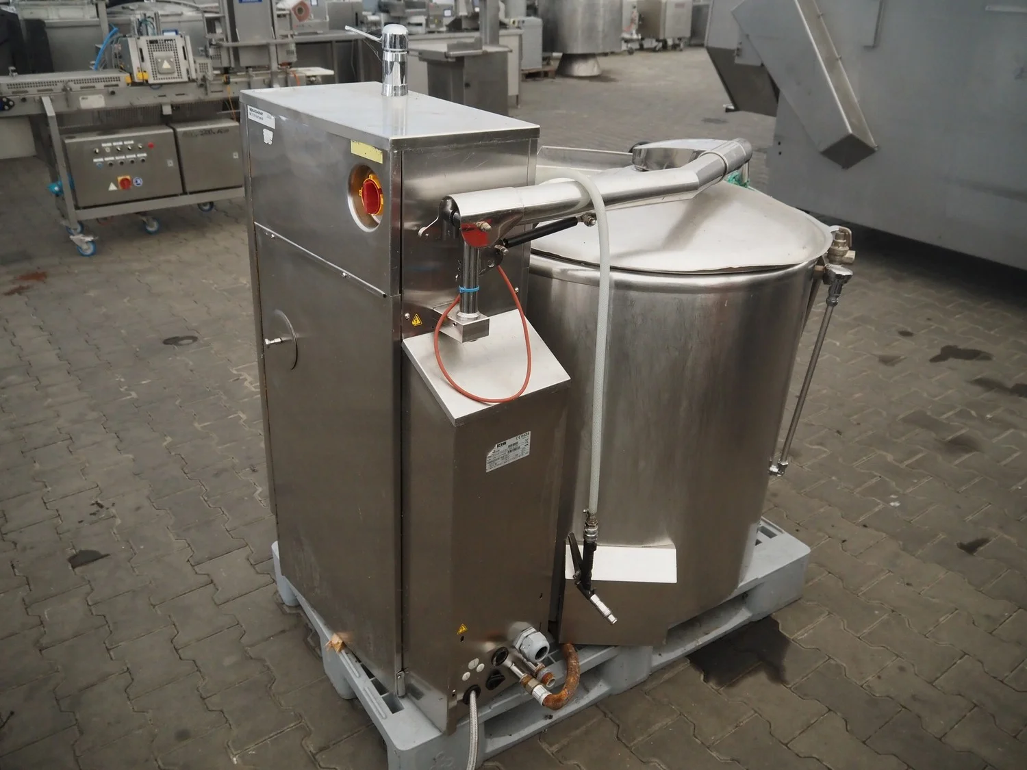 Metos tiltable cooking vessel with agitator, type: Proveno Cool Pro 200E M C3P, serial number: 10911112130020, year of construction: 2011, 400/230 V, 3 Ph, 50 Hz, 62/64 A, 35.5 kW, inside dimensions: Ø 800 mm x 500 mm, total dimensions: 1400 mm x 1000 mm x 1300. Technical condition unknown.