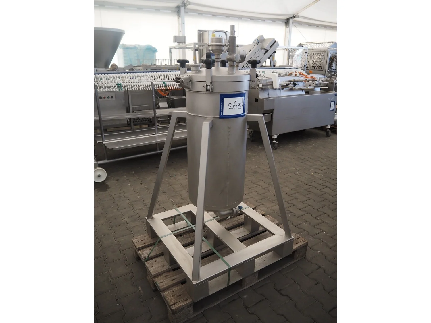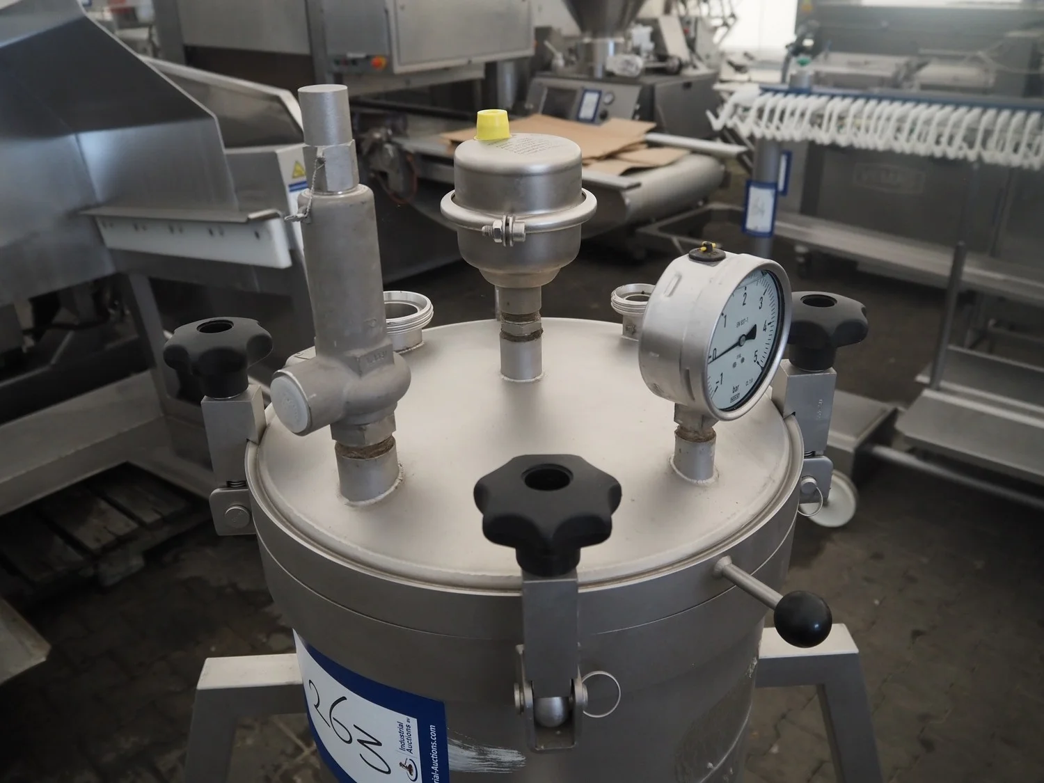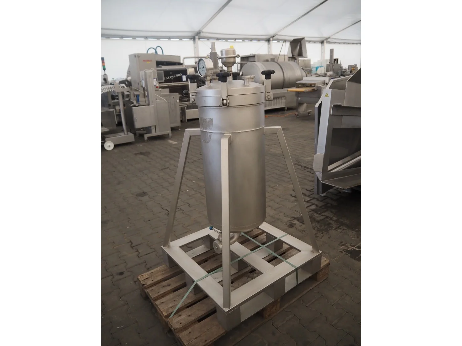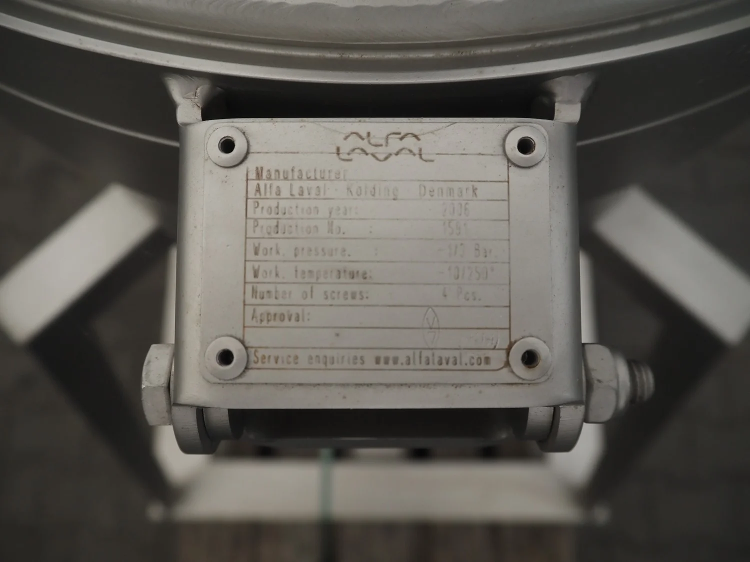 Alfa Laval Kolding pressure vessel, production number: 1591, year of construction: 2006, work temperature: -10/250 °C, work pressure: -1/3 bar, dimensions: 850 mm x 850 mm x 1590 mm.