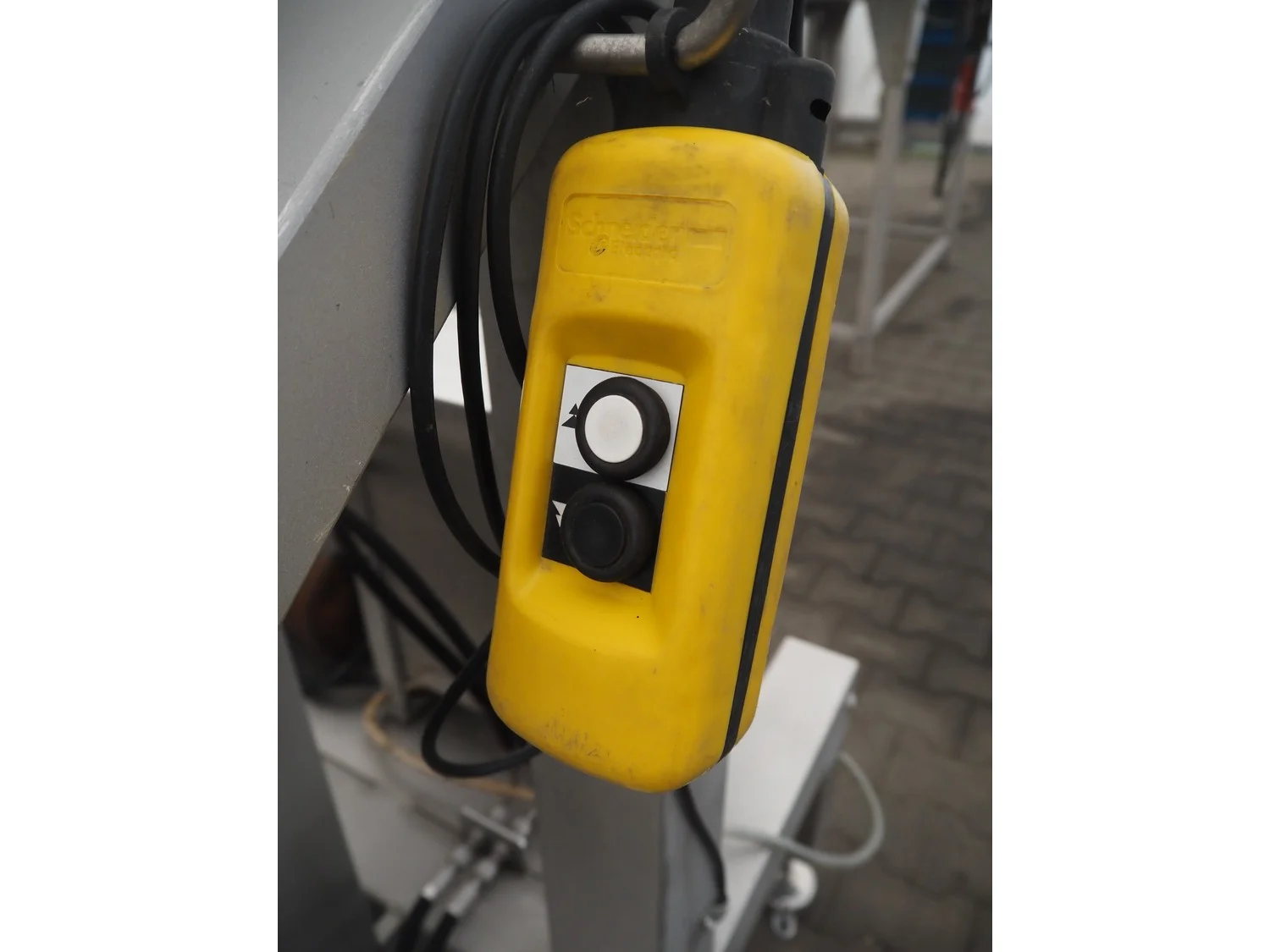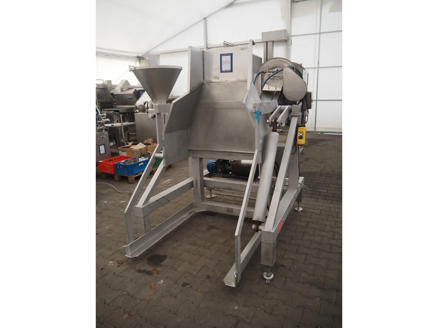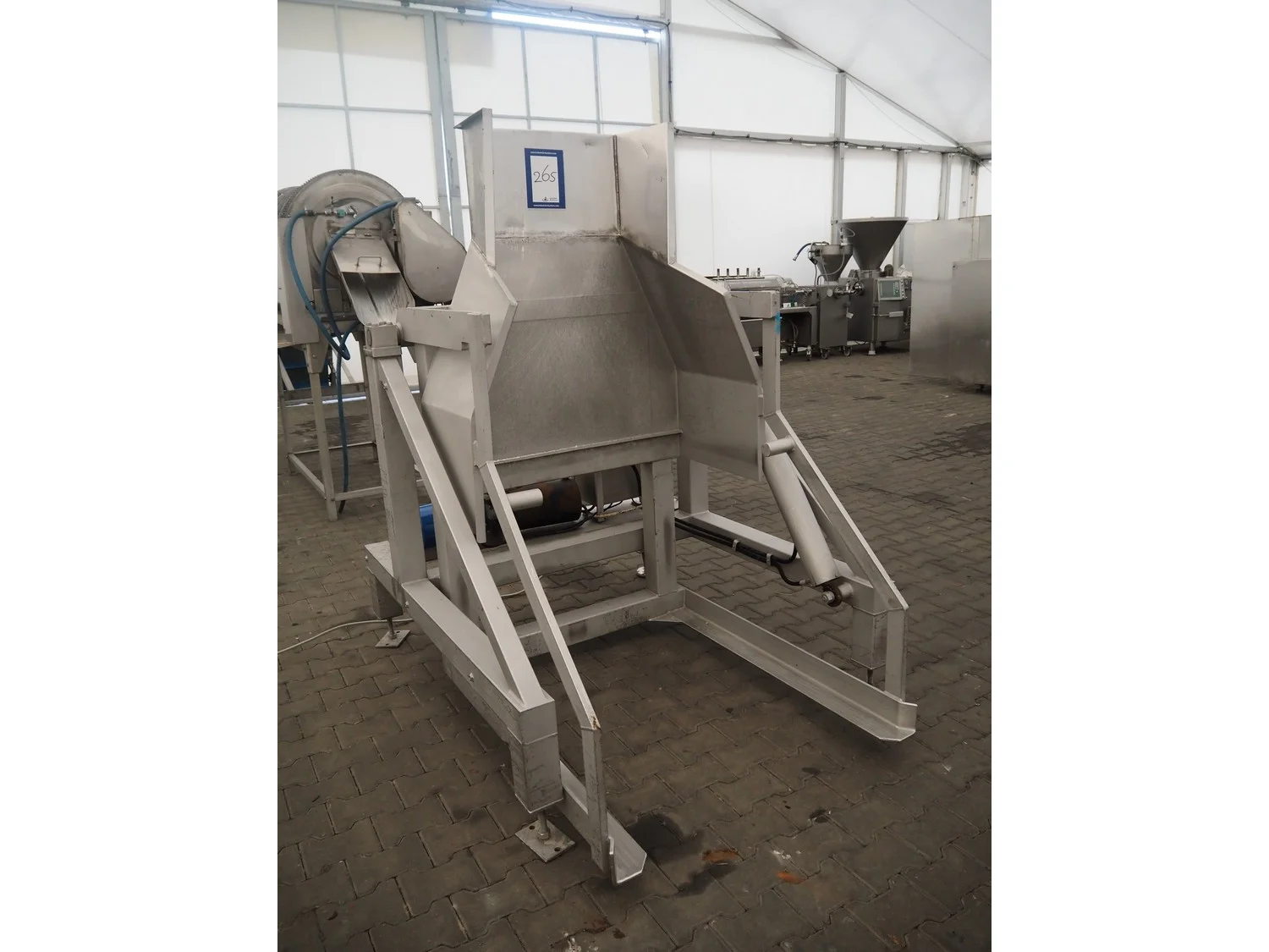 Tilting device for pallet boxes, clearance: 1200 mm x 1020 mm x 800 mm, tilting height: 1350 mm, total dimensions: 1950 mm x 1400 mm x 2000 mm.