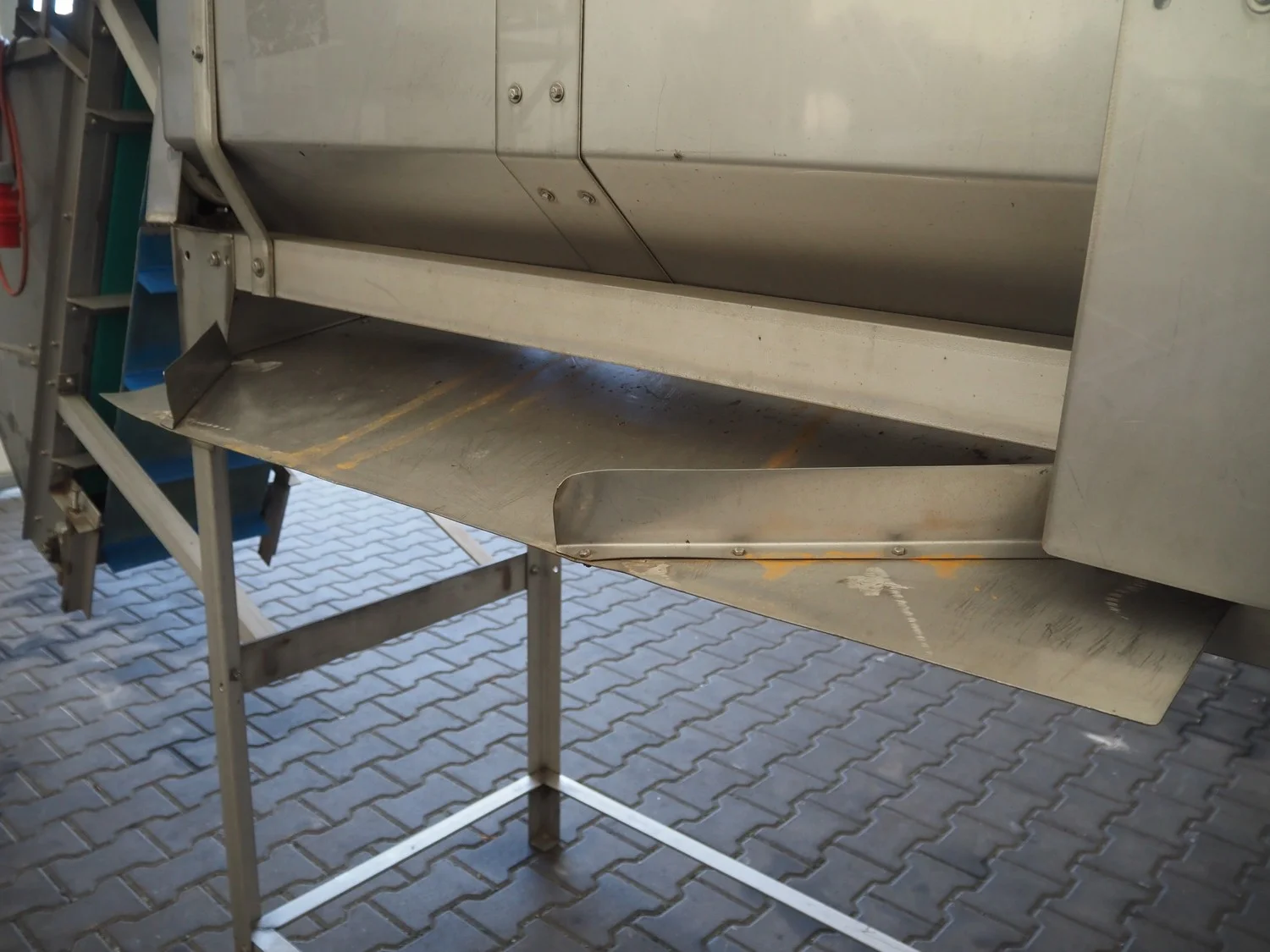 S/s washing drum with elevating belt, belt width: 370 mm, divider height: 60 mm, distance between dividers: 200 mm, diameter drum: 800 mm, total dimensions: 3700 mm x 1250 mm x 2230 mm.