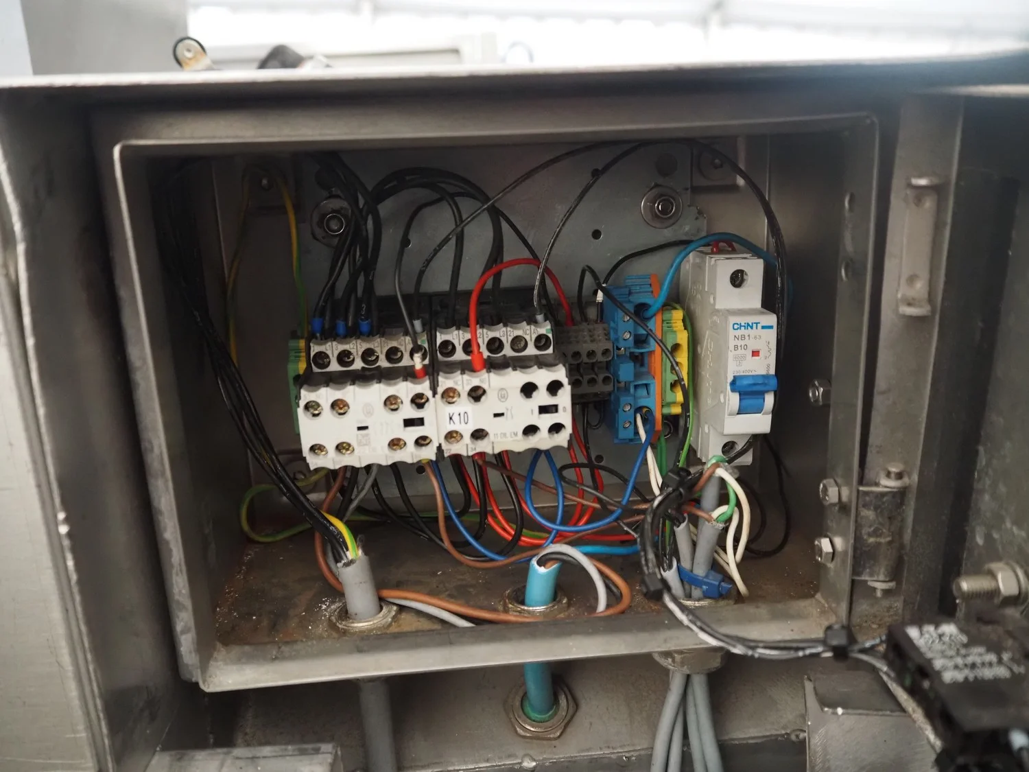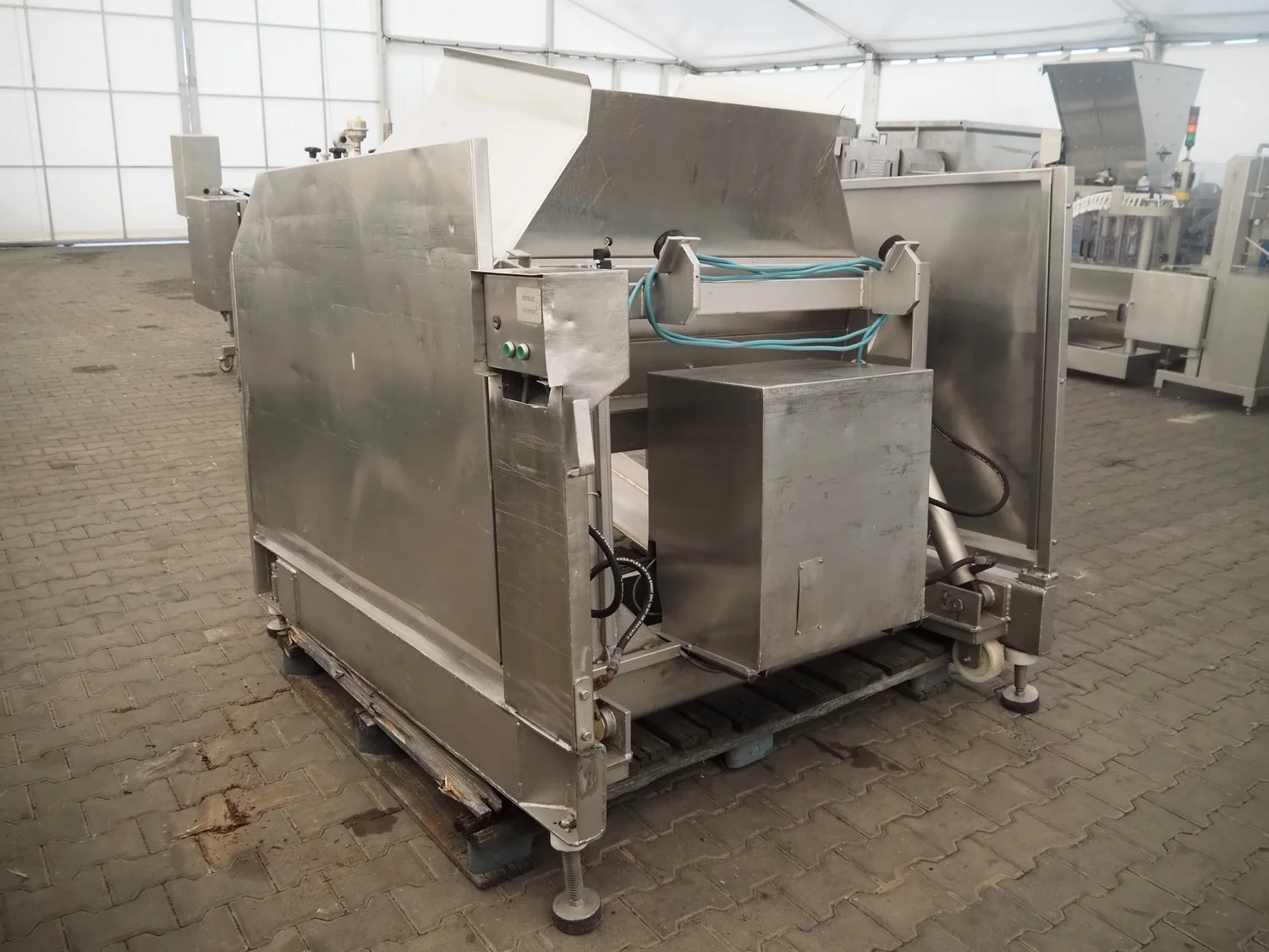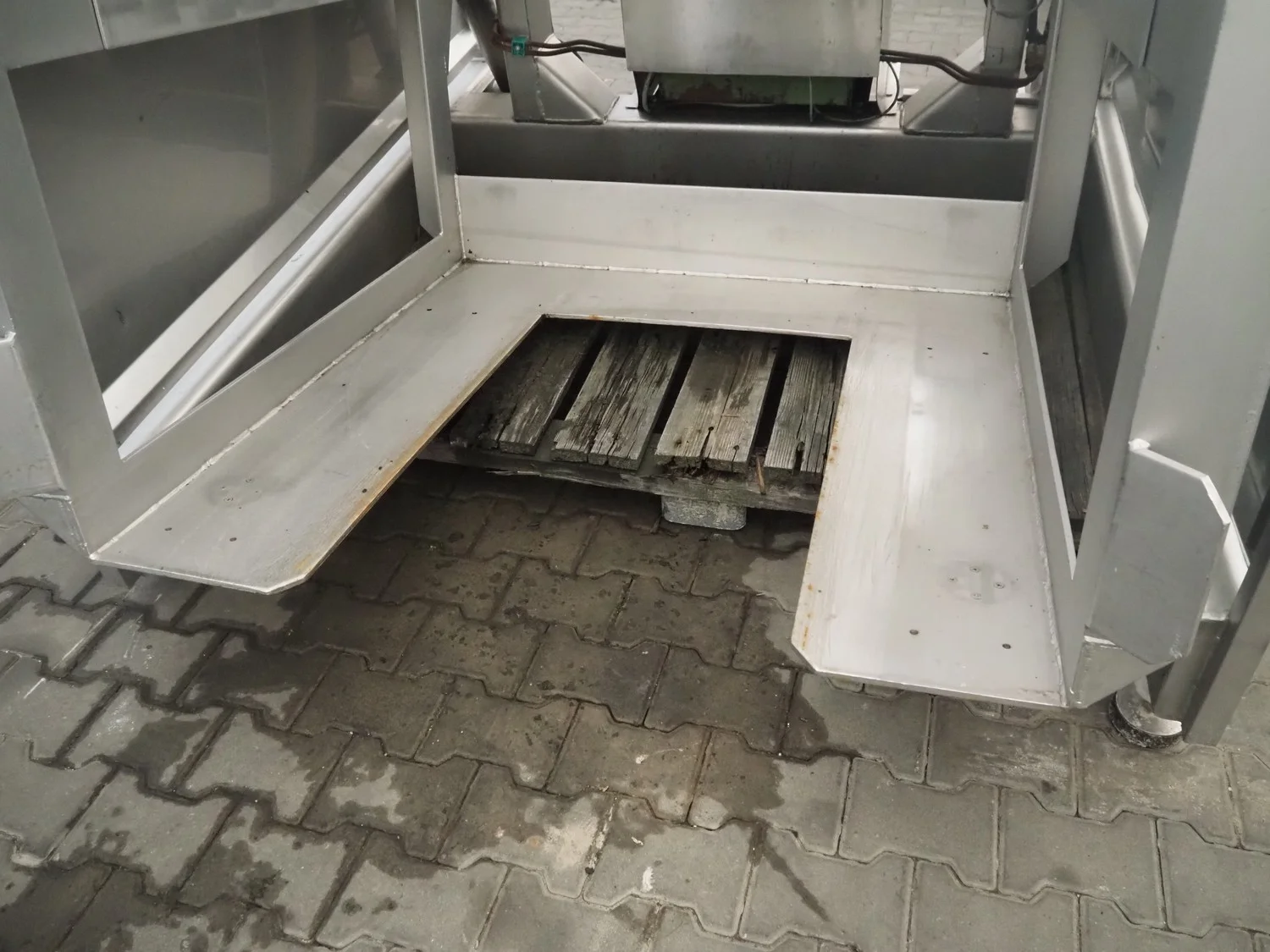 S/s tilting device for pallet boxes, clearance: 1240 mm x 1200 mm x 800 mm, total dimensions: 2000 mm x 1700 mm x 1530 mm.