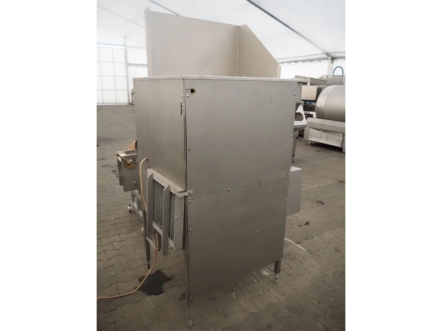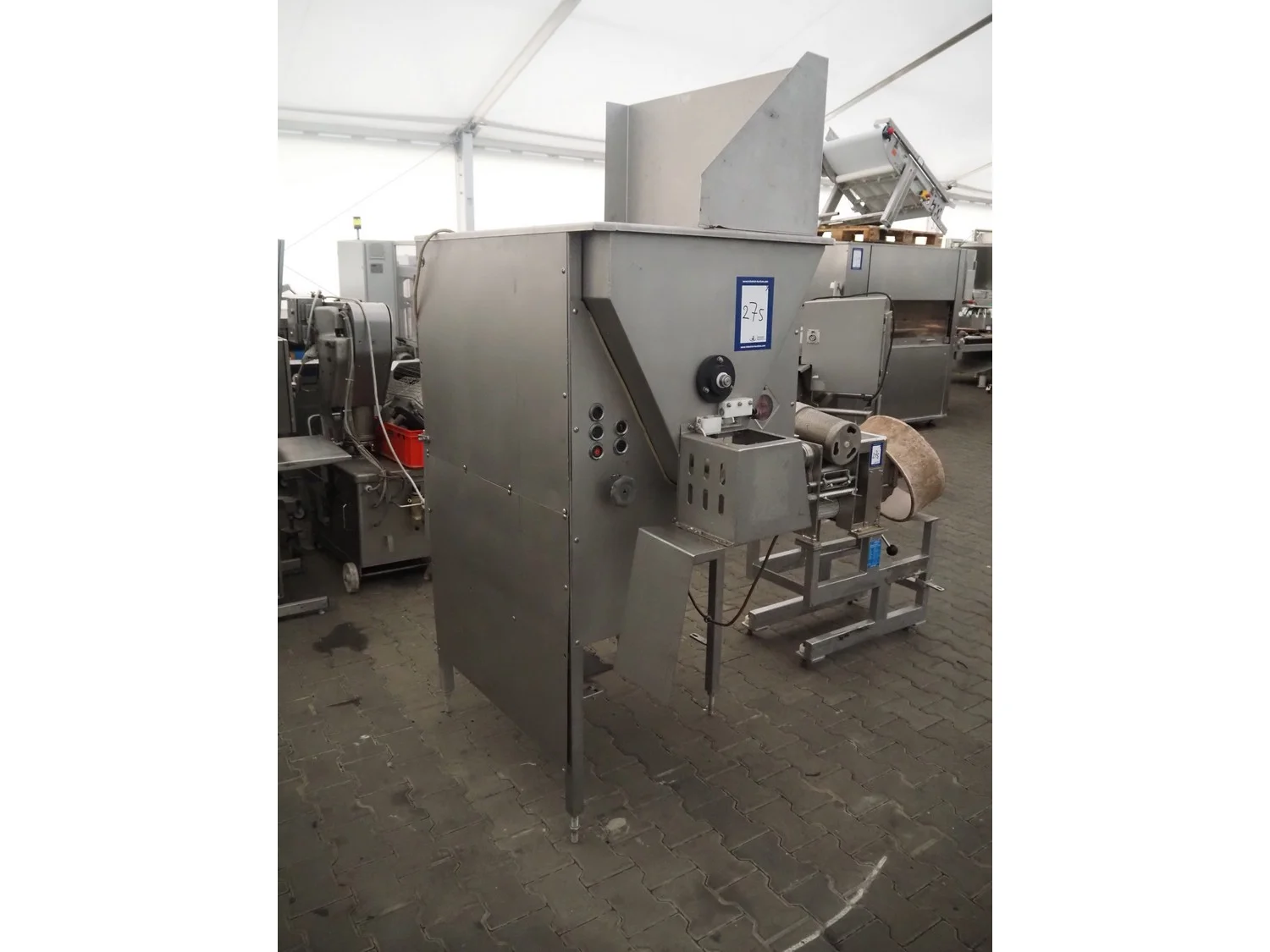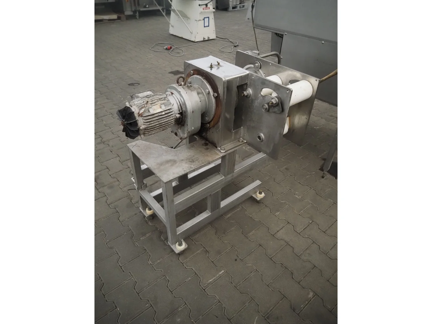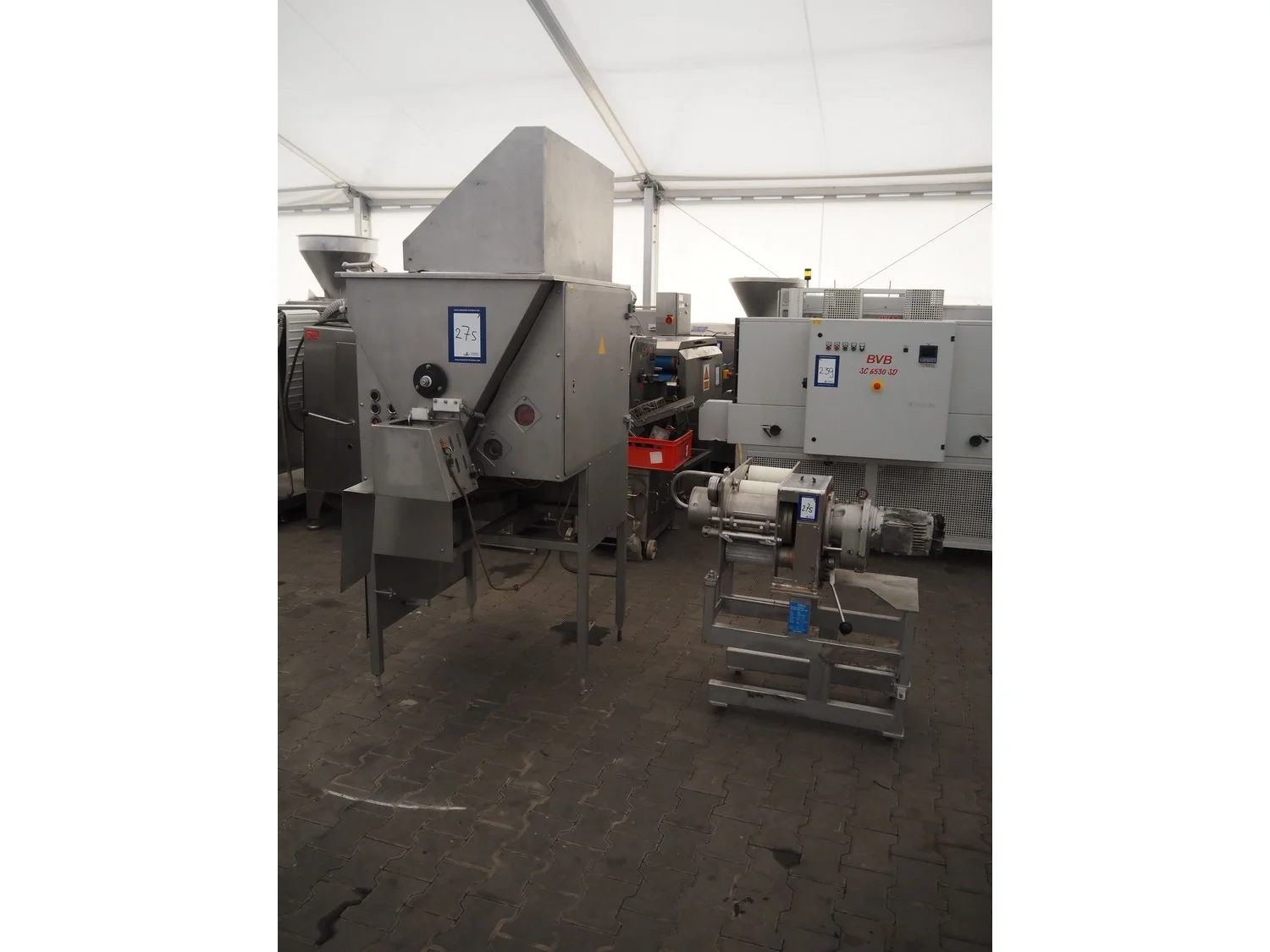 Baader mobile separator, type: 696, machine number: 12 5653 0696, year of construction: 1978, 380 V, 3 Ph, 50 Hz, 3.7 A, perforations drum: 1 mm and 3 mm, total dimensions: 1100 mm x 650 mm x 1040 mm. Including Baader infeed bunker, dimensions infeed bunker: 1350 mm x 900 mm x 2220 mm.