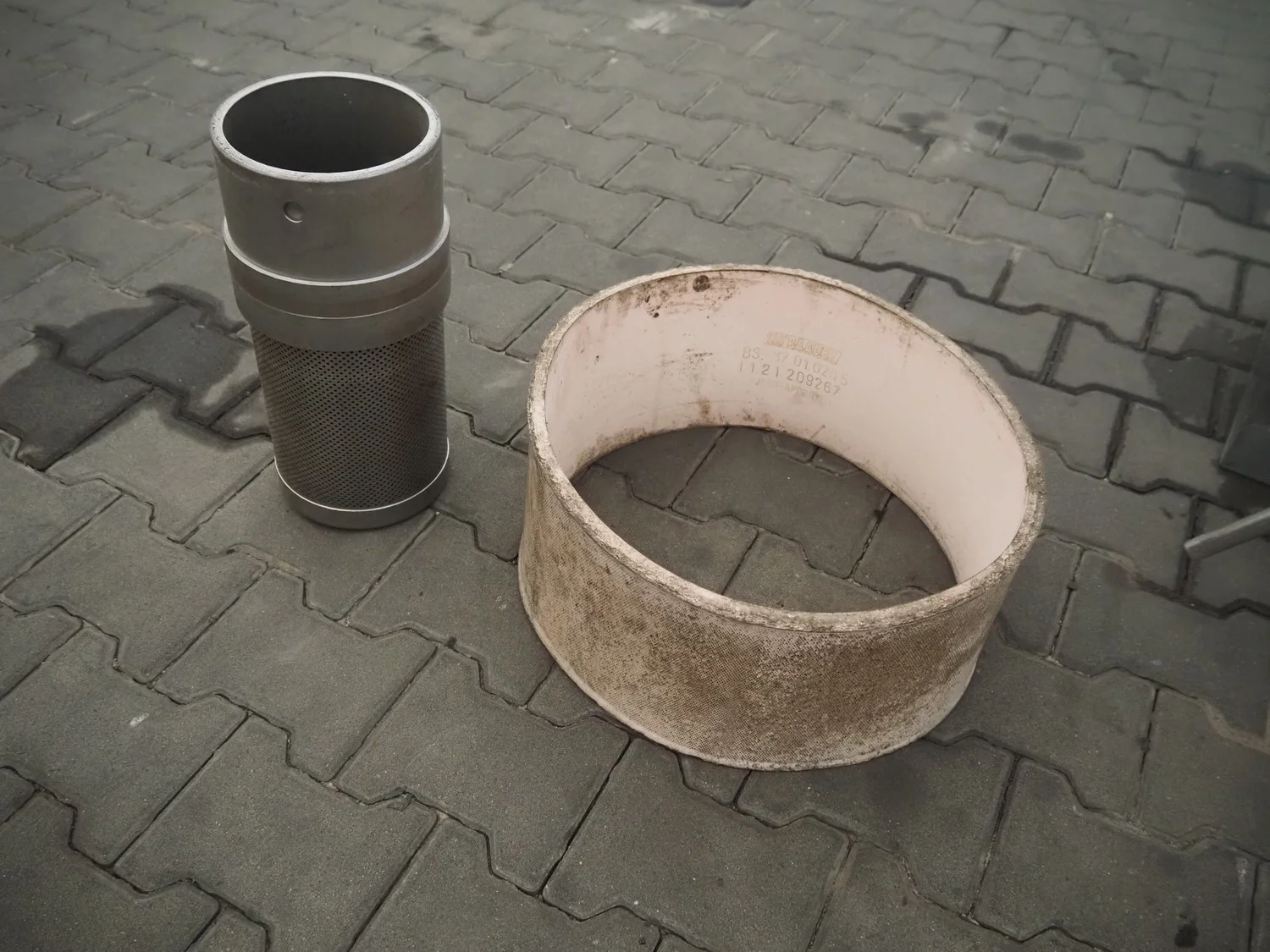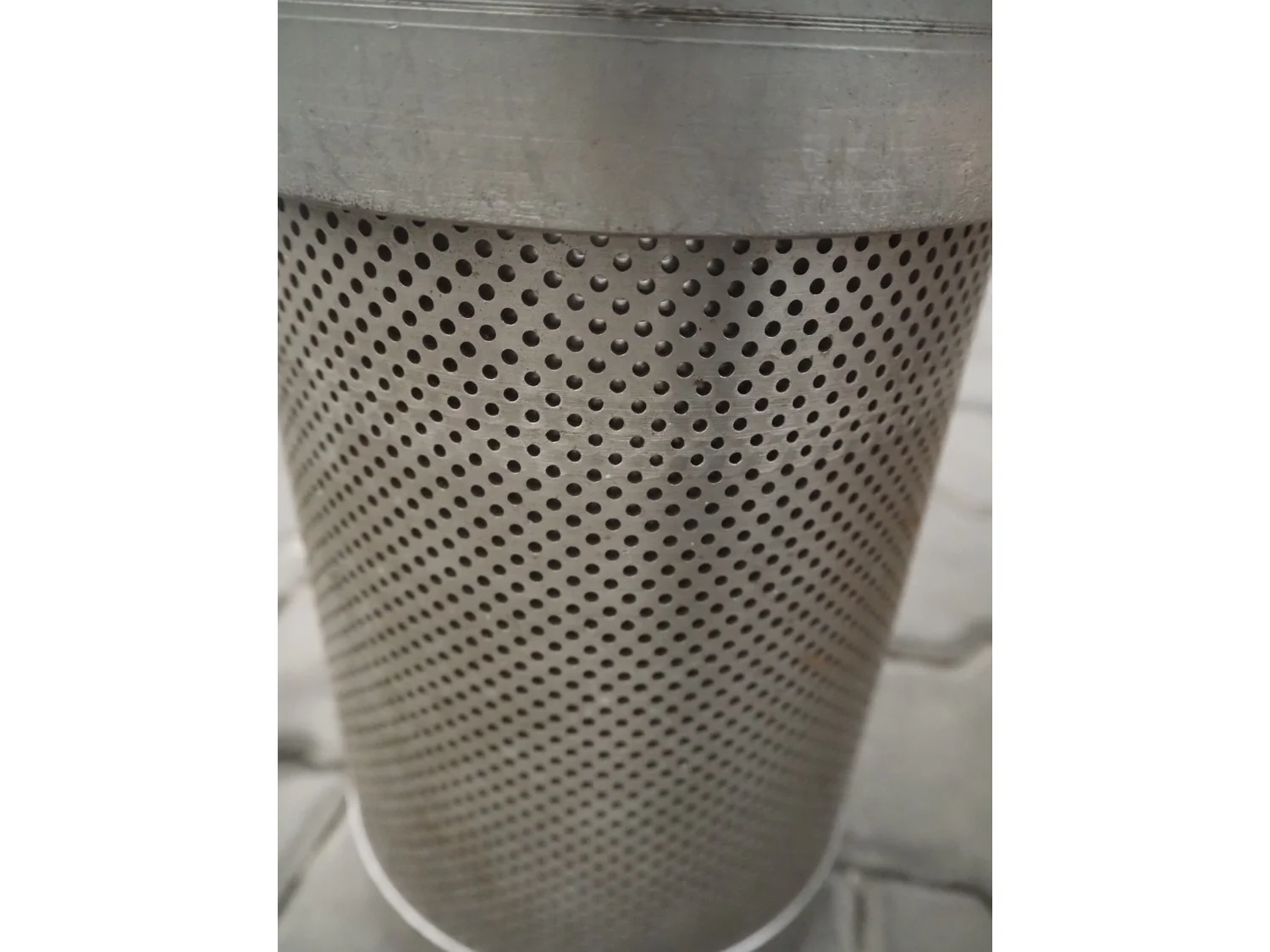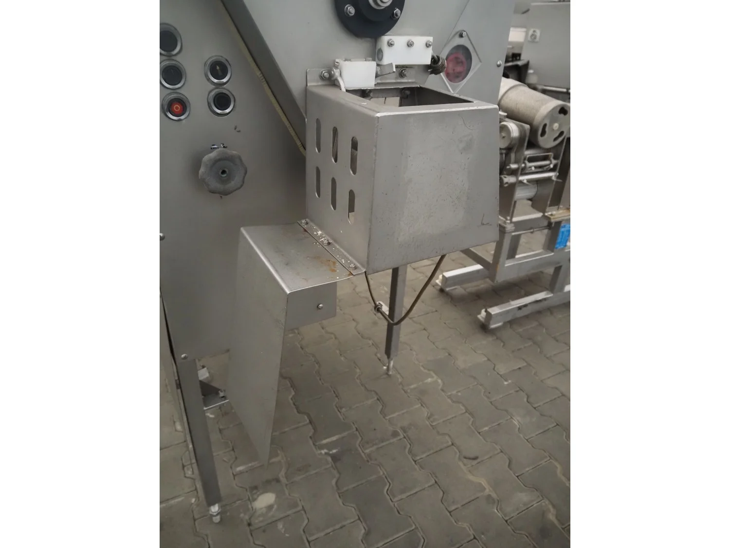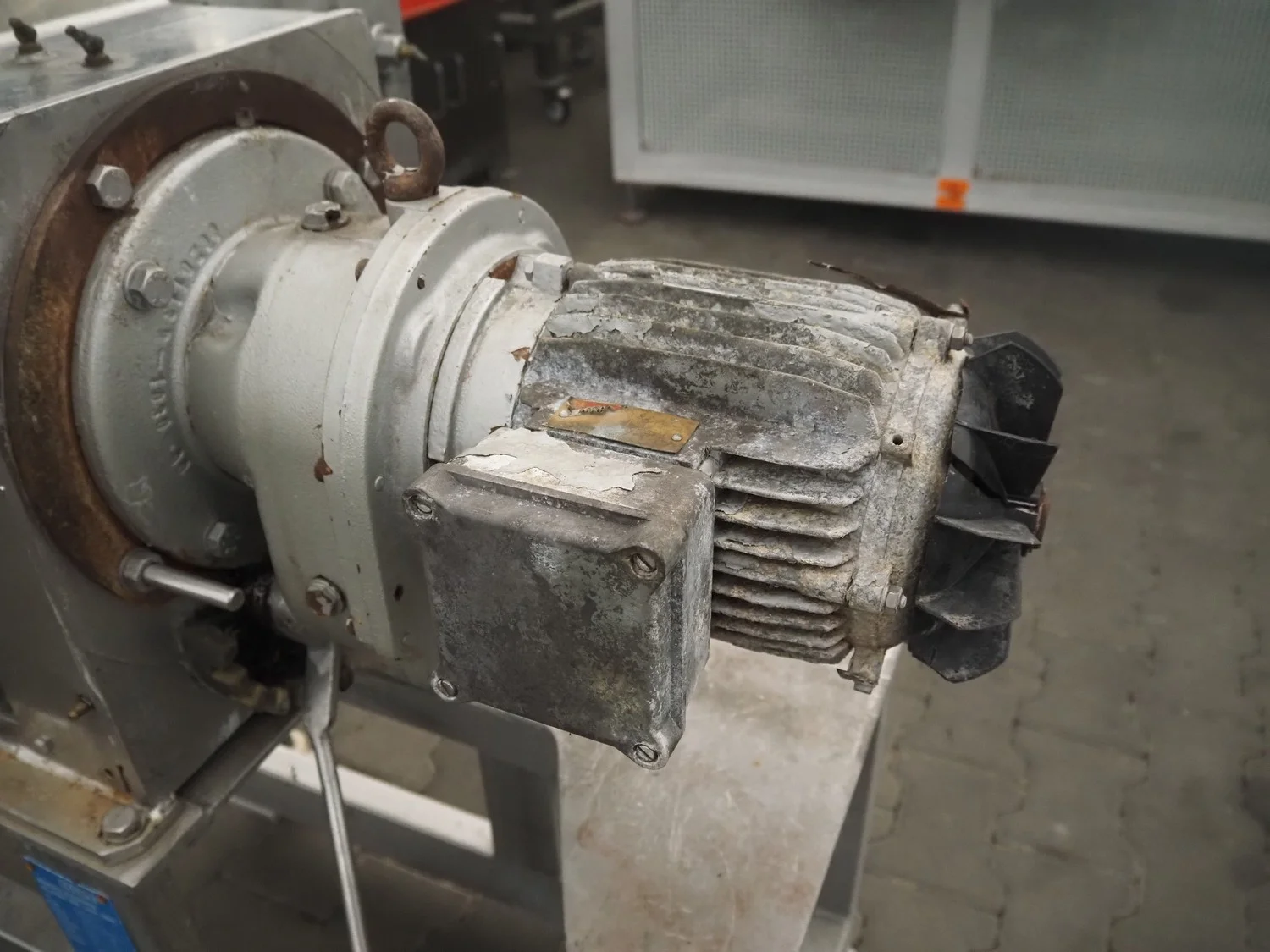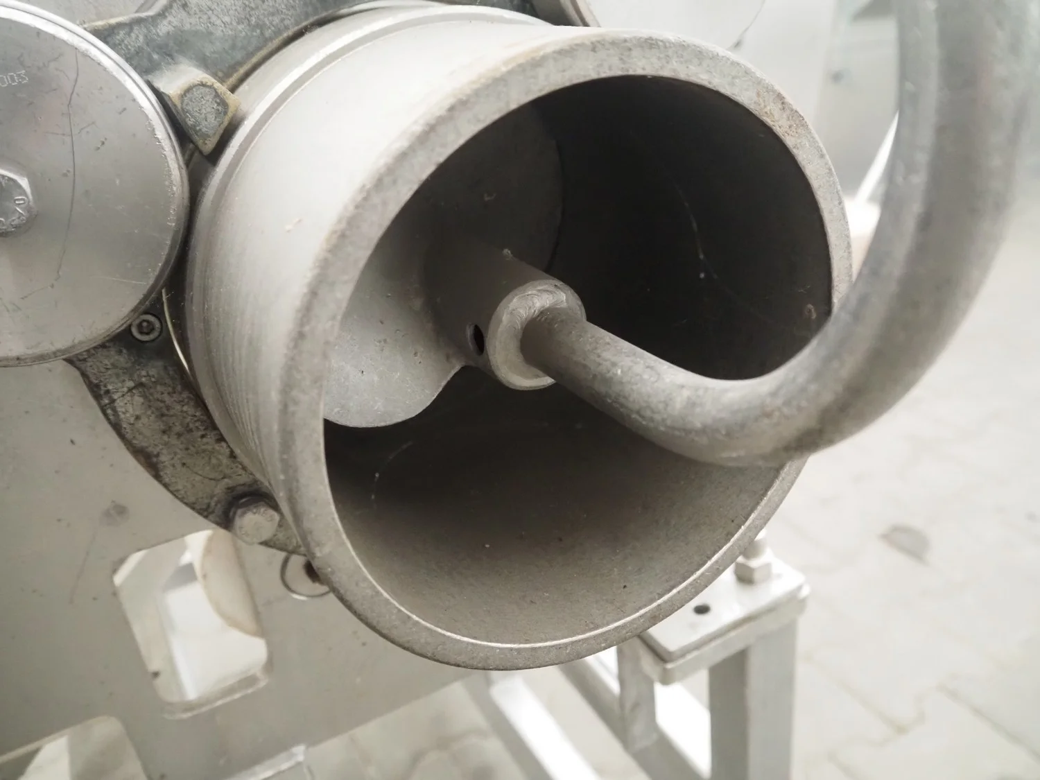 Baader mobile separator, type: 696, machine number: 12 5653 0696, year of construction: 1978, 380 V, 3 Ph, 50 Hz, 3.7 A, perforations drum: 1 mm and 3 mm, total dimensions: 1100 mm x 650 mm x 1040 mm. Including Baader infeed bunker, dimensions infeed bunker: 1350 mm x 900 mm x 2220 mm.
