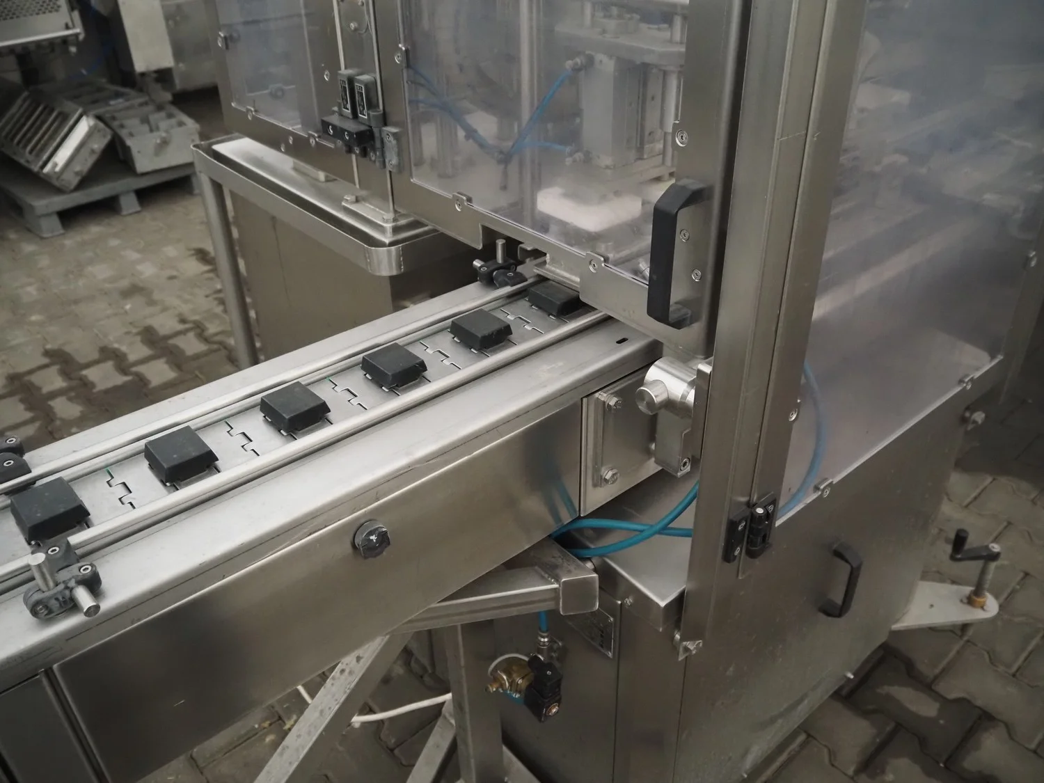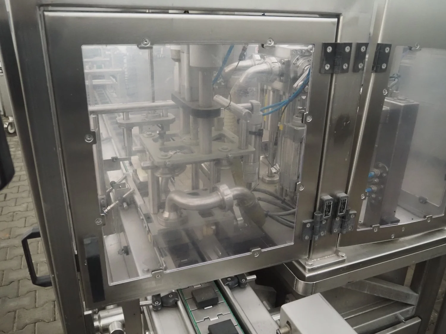 Food Dosing Packing Machines SP. Z.O.O. cup filling and sealing machine, type: DOZOWNIK 2G, number: 439, year of construction: 2014, 400 V, 3 Ph, 2.5 kW, 6-8 bar, weight: 1150 kg, dimensions: 4200 mm x 1300 mm x 1800 mm.