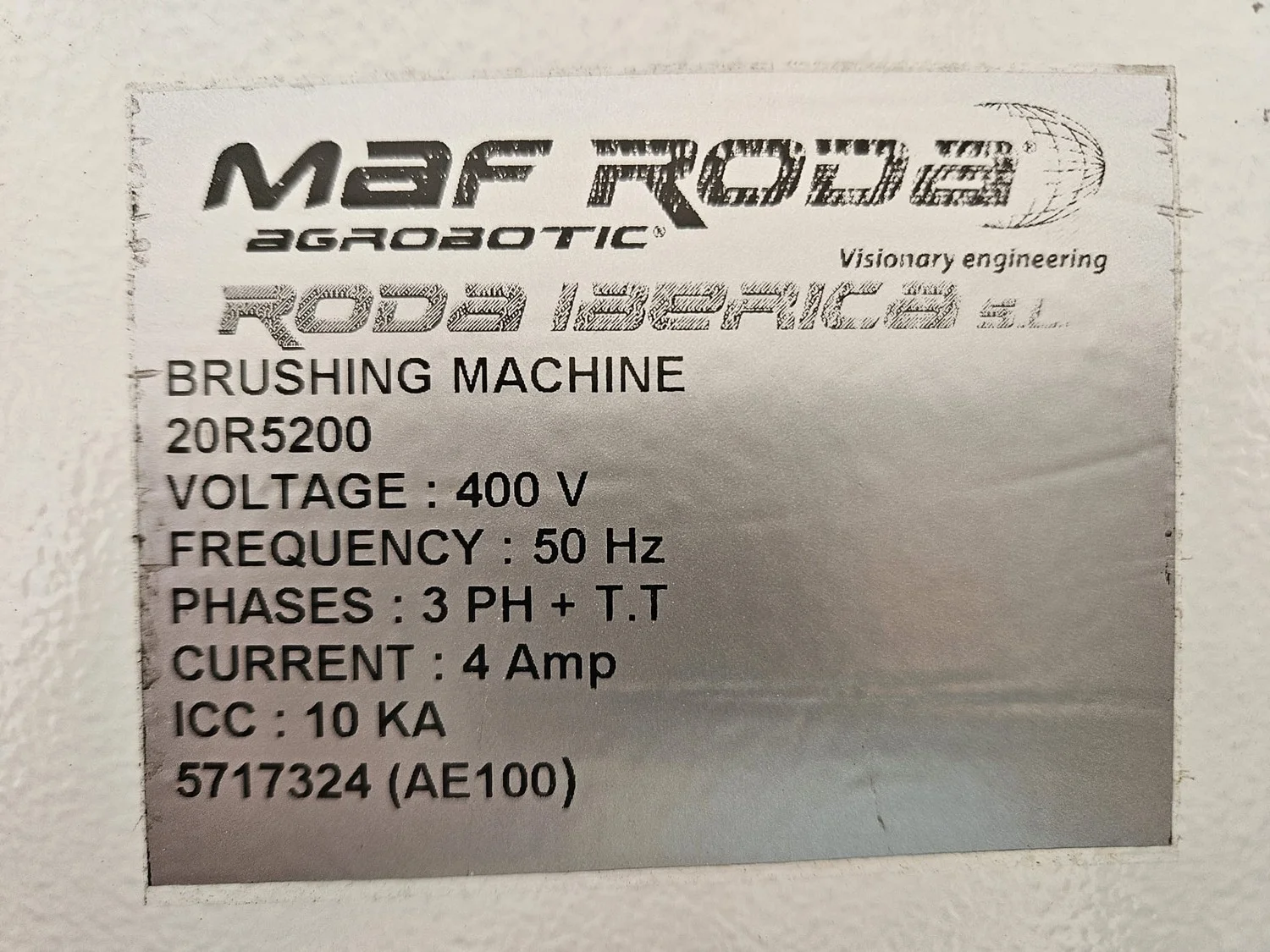 Maf Roda Agrobotic s/s brush bed with 18 brushed, type: CEP. 18B1500-TDDI, serial number: 20R5200/2, year of construction: 19-02-2021, brush width: 1500 mm, total dimensions: 2500 mm x 1900 mm x 2200 mm.