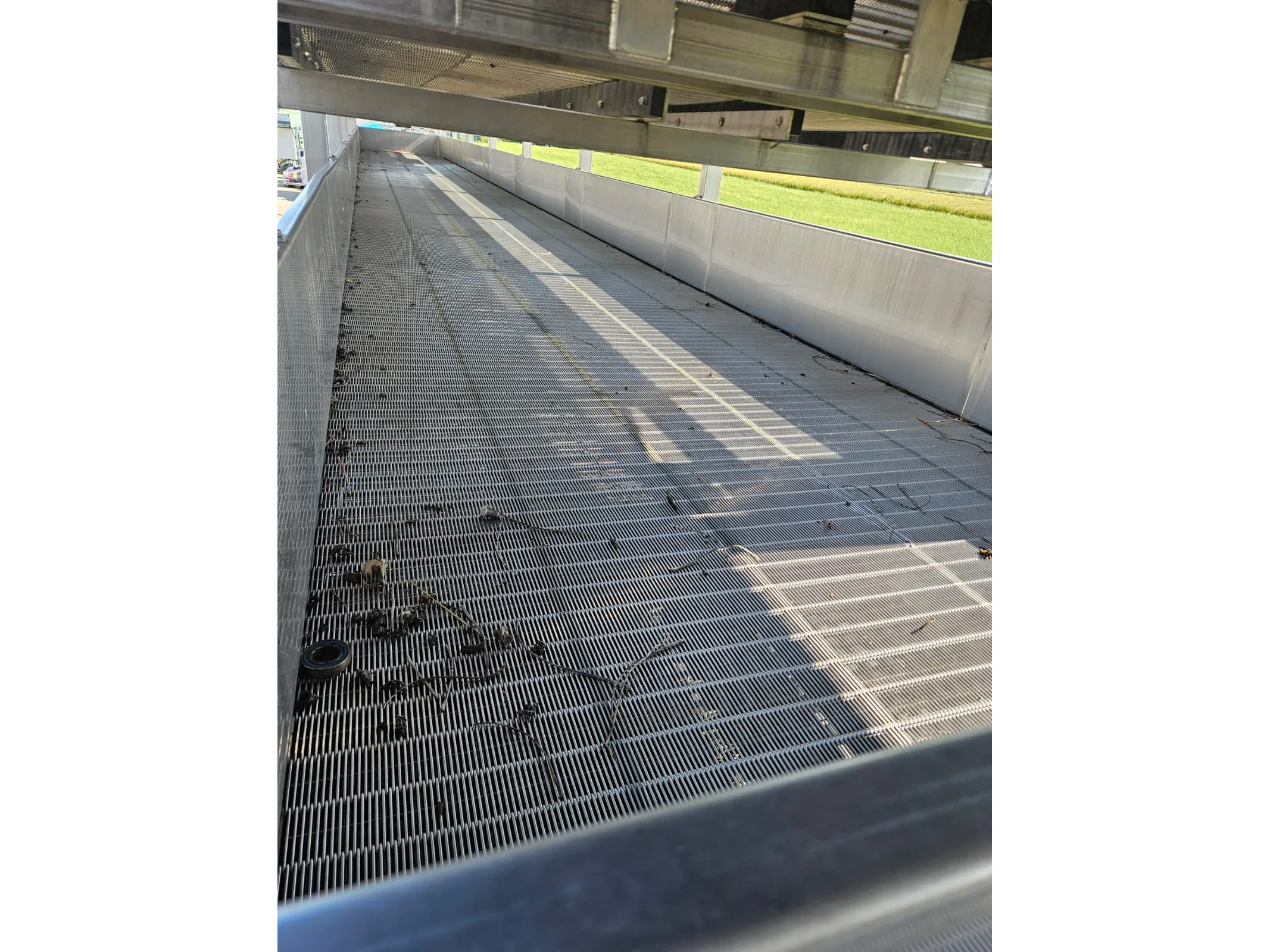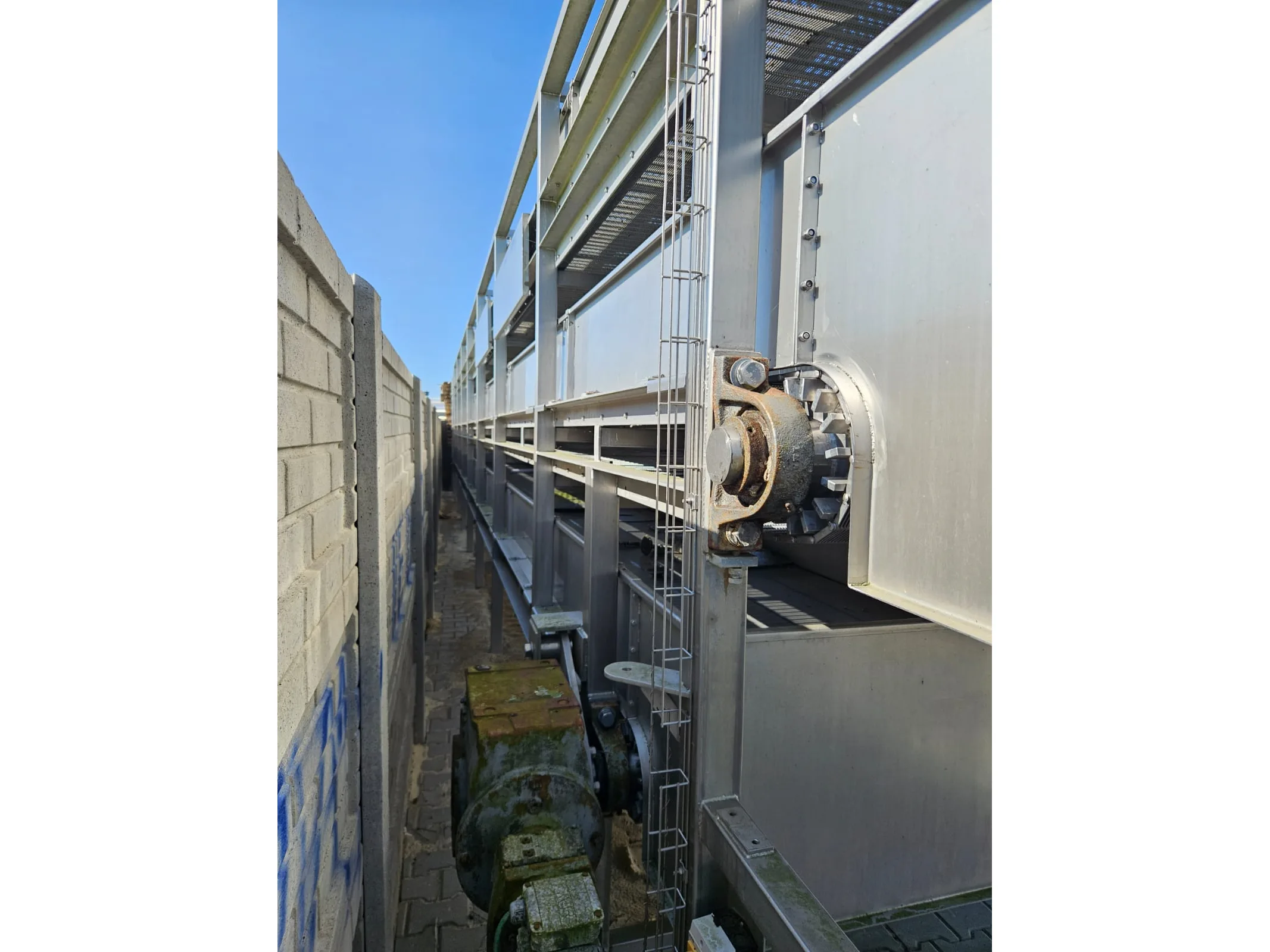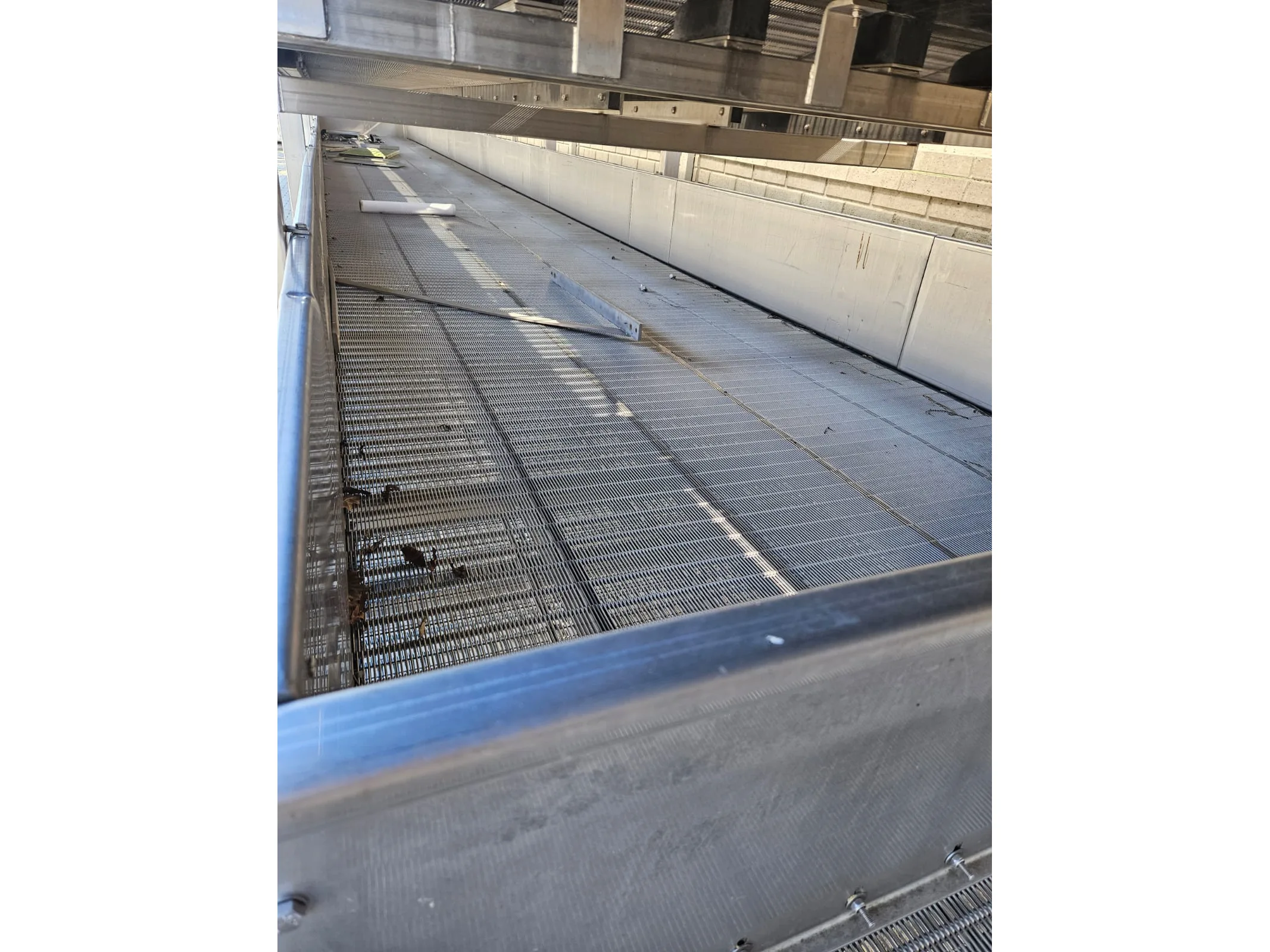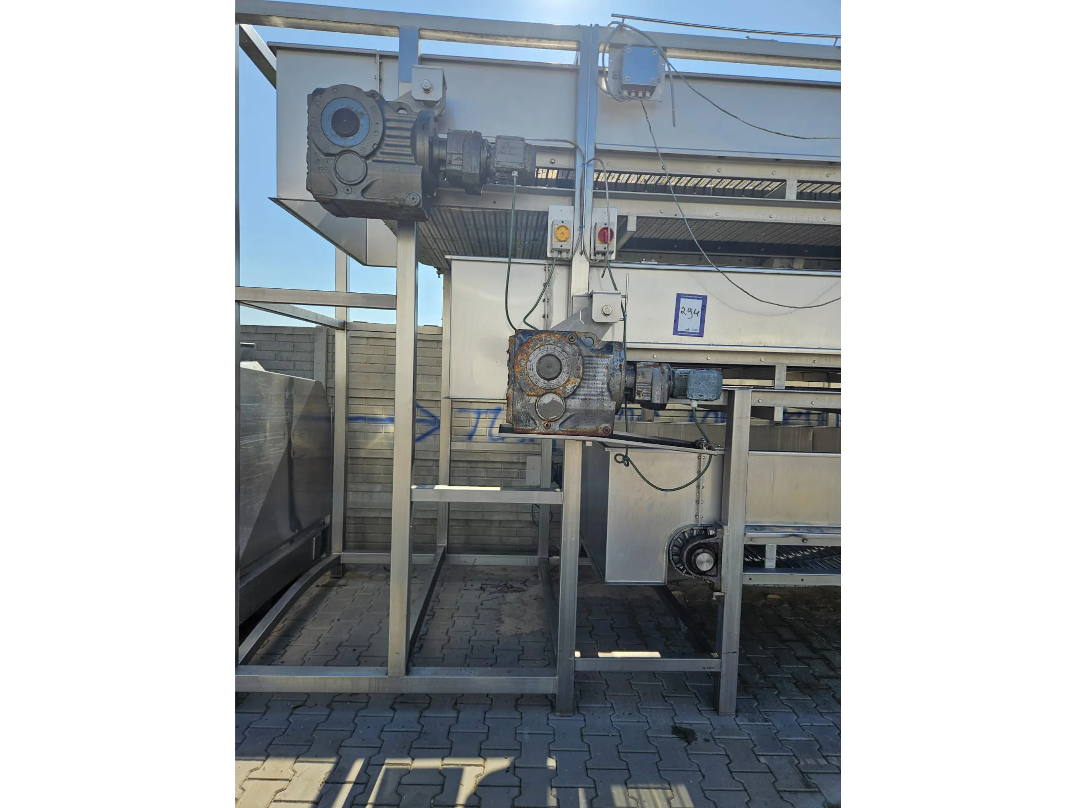 3 level conveyor, s/s mesh belt, belt width: 1500 mm, total dimensions: 16300 mm x 2400 mm x 3100 mm.