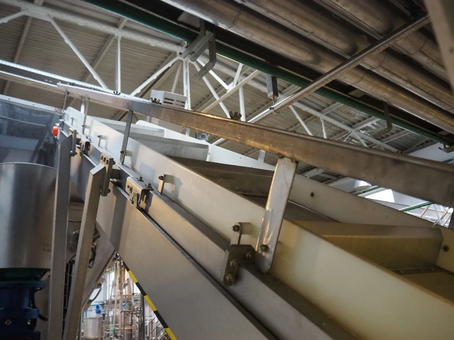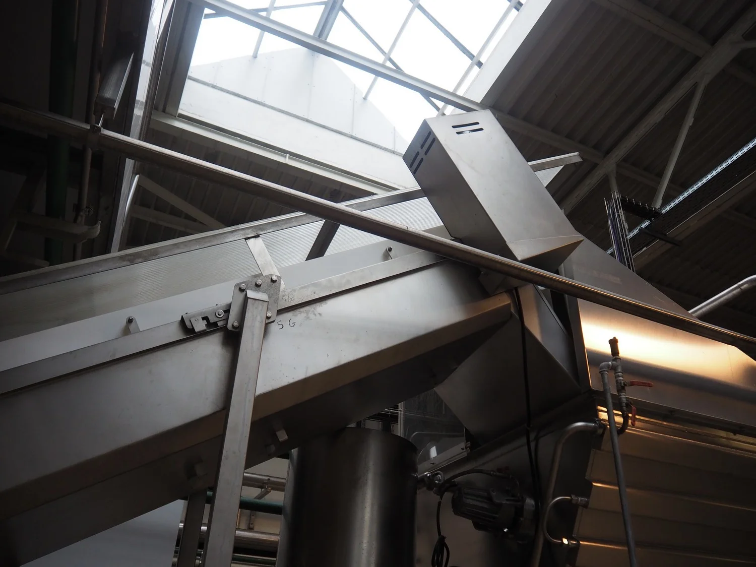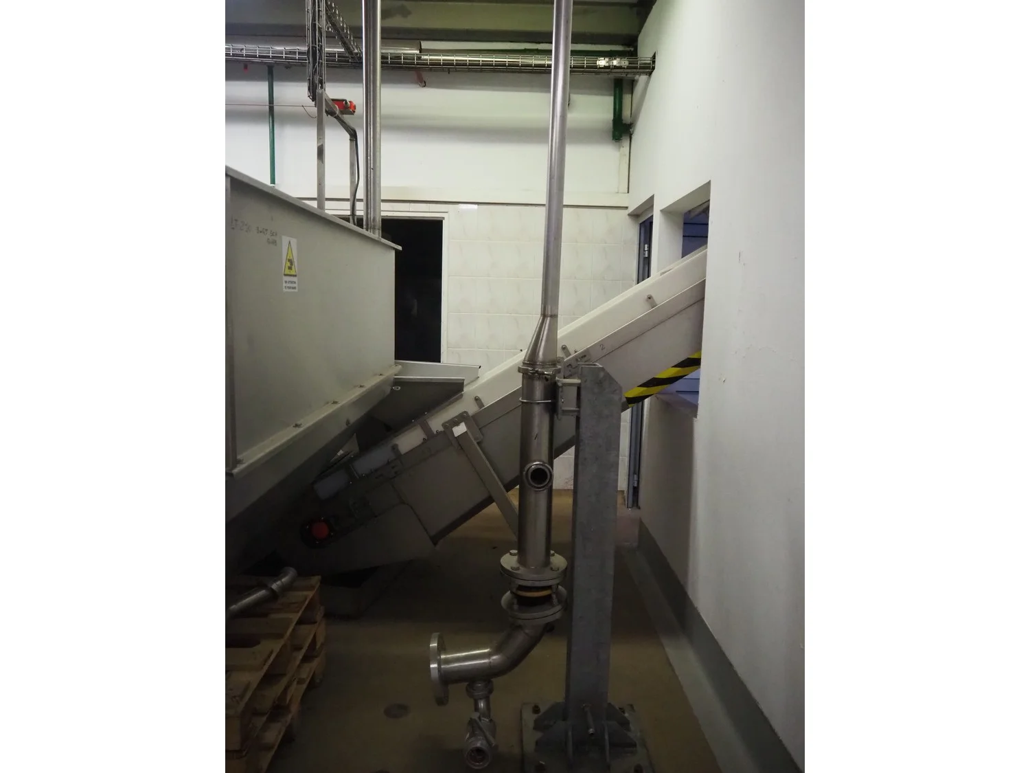 CFT S.p.A. elevating belt, plastic belt with dividers, belt width: 600 mm, divider height: 120 mm, distance between dividers: 700 mm, elevating height: 3100 mm, total dimensions: 5000 mm x 1900 mm x 3900 mm.