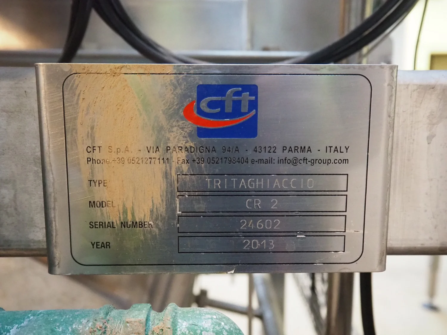 CFT S.p.A. crusher with progressive cavity outfeed pump, type: TRITAGHIACCIO, model: CR 2, serial number: 24602, year of construction: 2013, inside dimensions hopper: 950 mm x 1000 mm x 900 mm, total dimensions: 5800 mm x 2100 mm x 3500 mm.