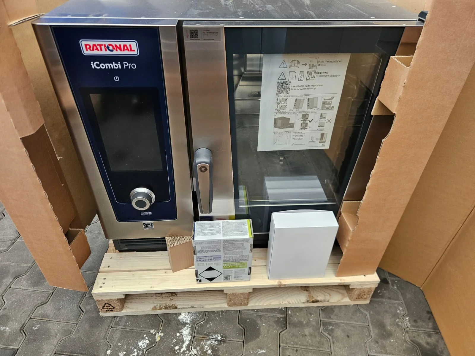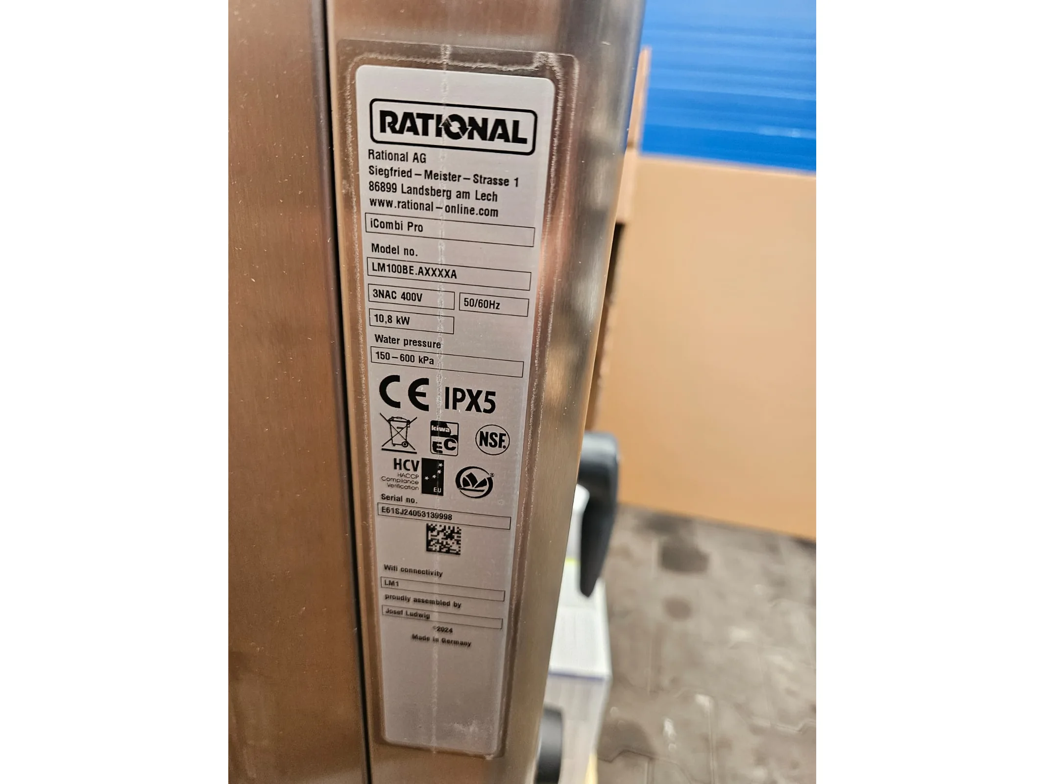 Rational combisteamer, iCombi Pro, model: LM100BE.AXXXXA, serial number: E61SJ24053139998, year of construction: 2024, 400 V, 3 Ph, 50/60 Hz, 10,8 kW, electric heated, dimensions: 900 mm x 900 mm x 900 mm. Never used, still in box.